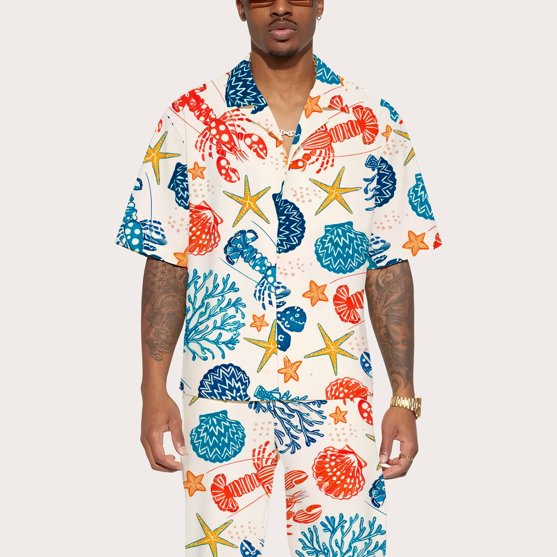 Hawaiian Ocean World Pattern Camp Collar Short-Sleeved Shirt