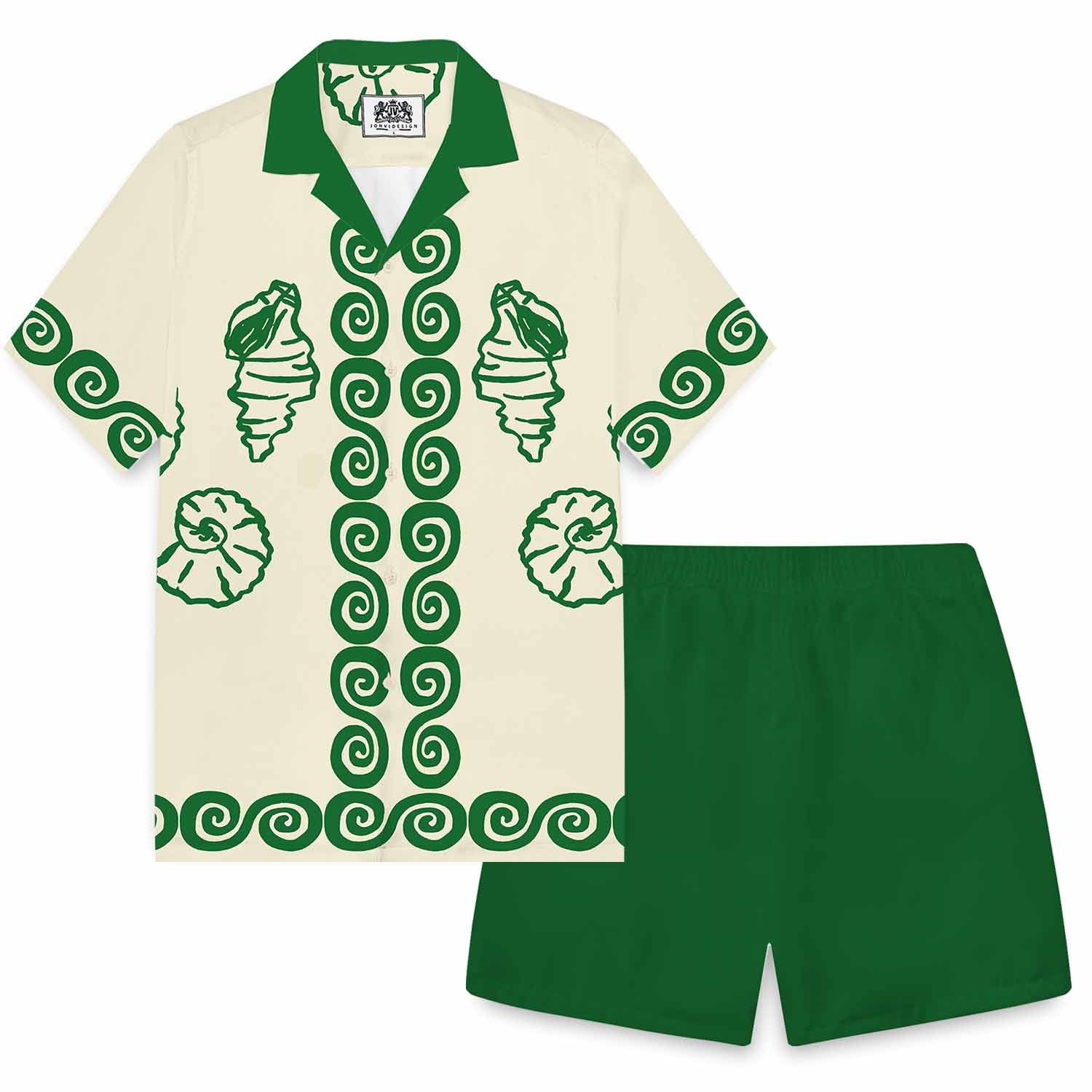 Holiday Style Shell Print Camp Collar Short Sleeve Shirt
