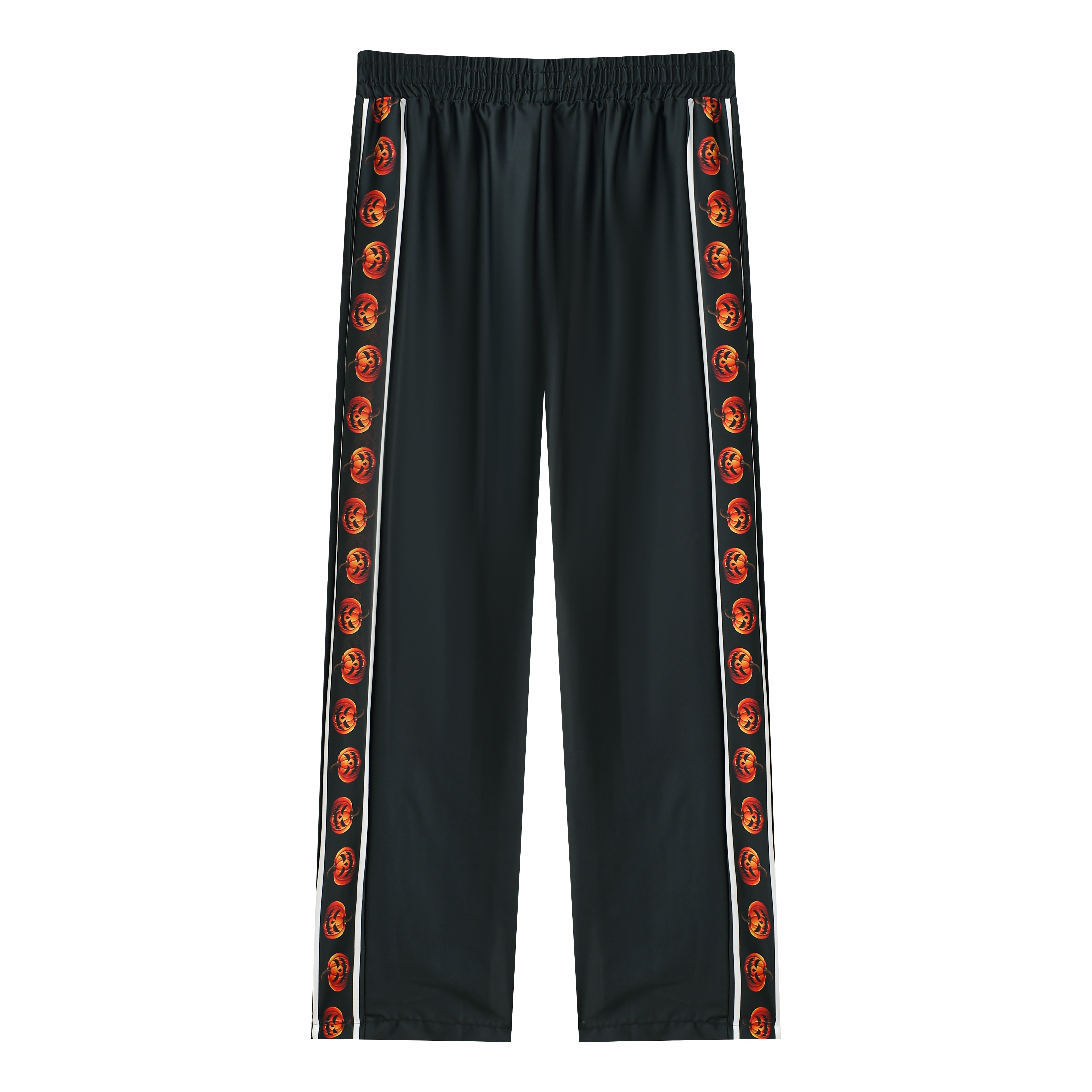 Halloween Pumpkin Print Casual Trousers With Elastic Waistband