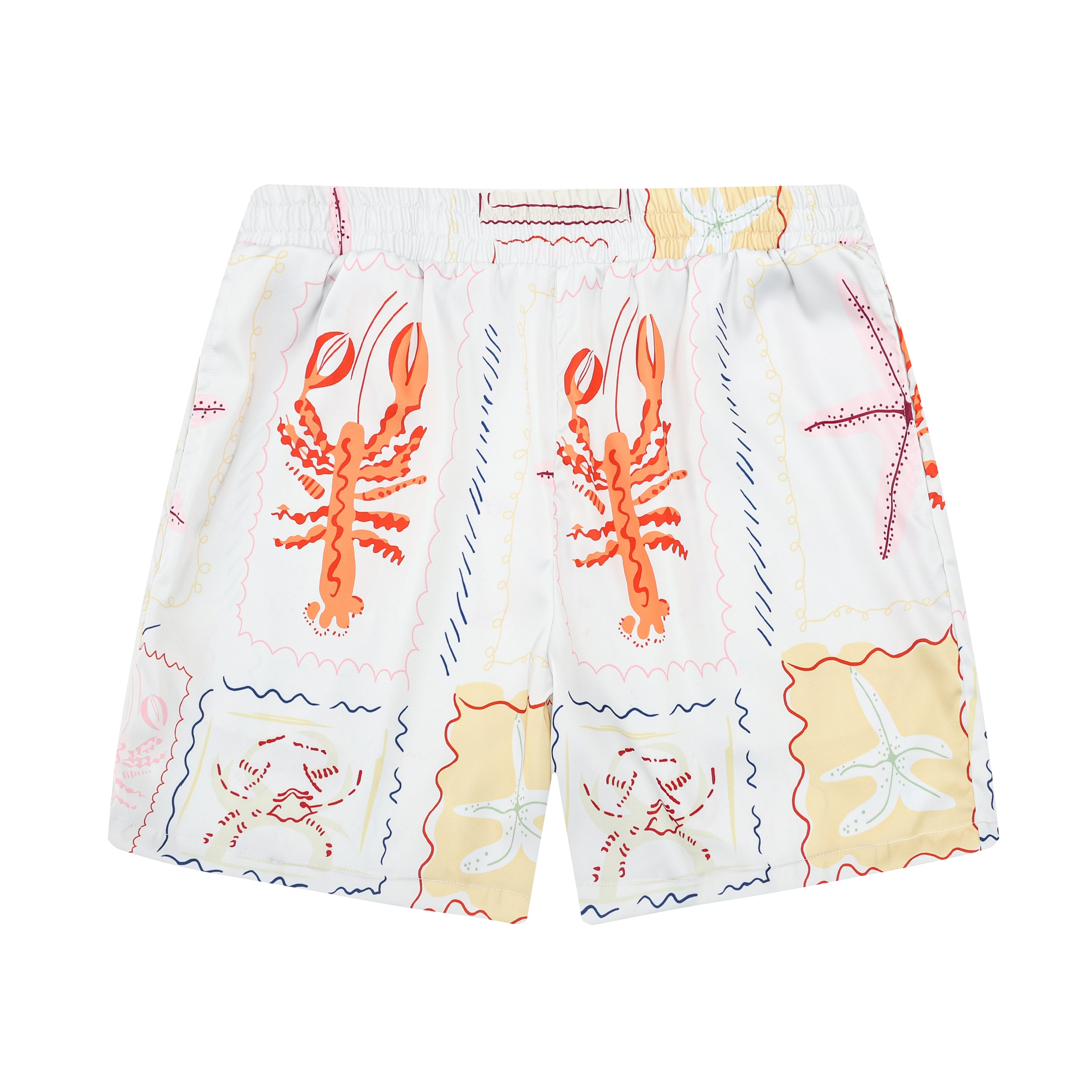 Aloha Style Lobster Pattern Silk Fiber Waistband Shorts