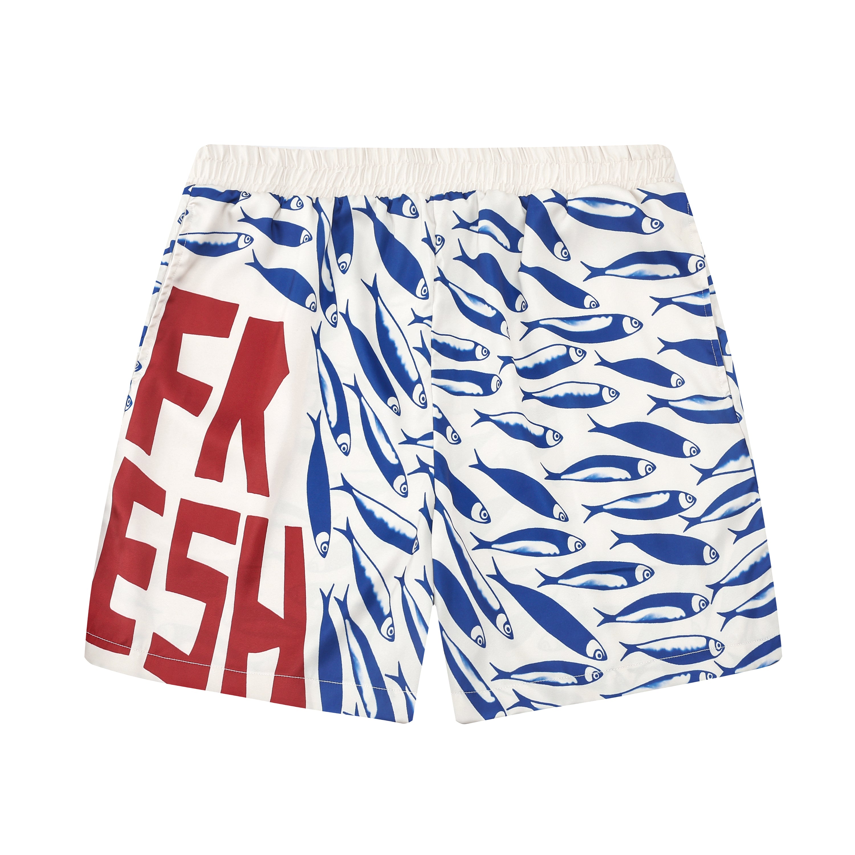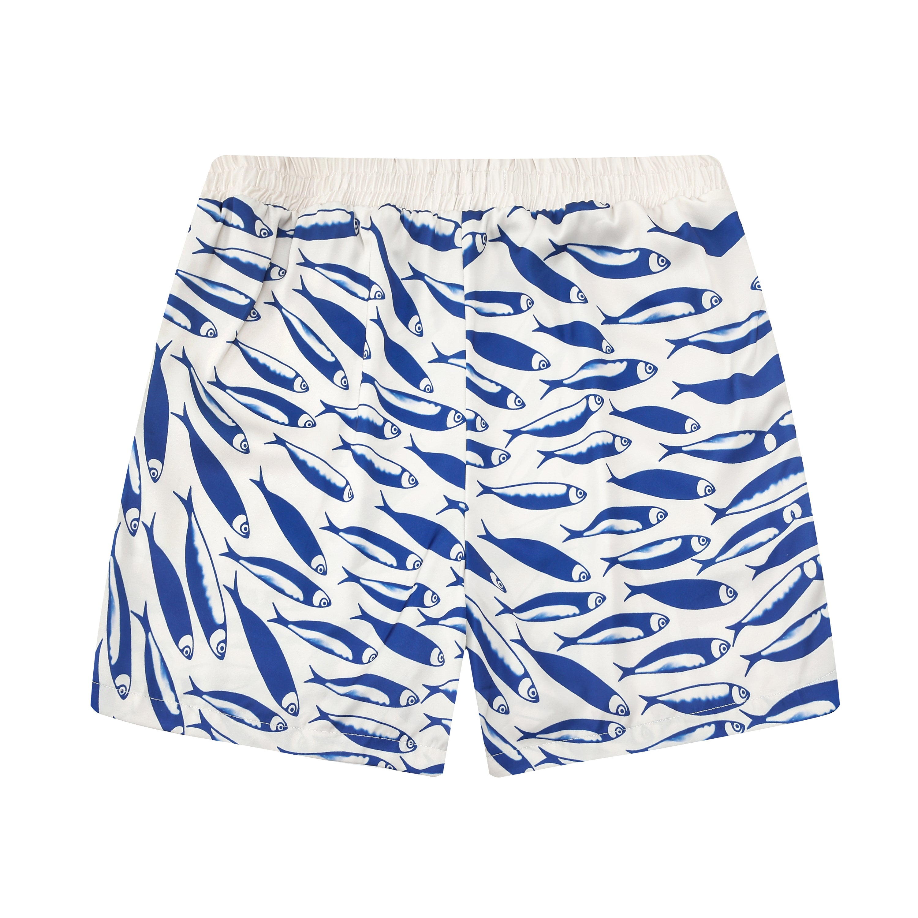 Aloha Style Sardine Pattern Silk Fiber Waistband Shorts