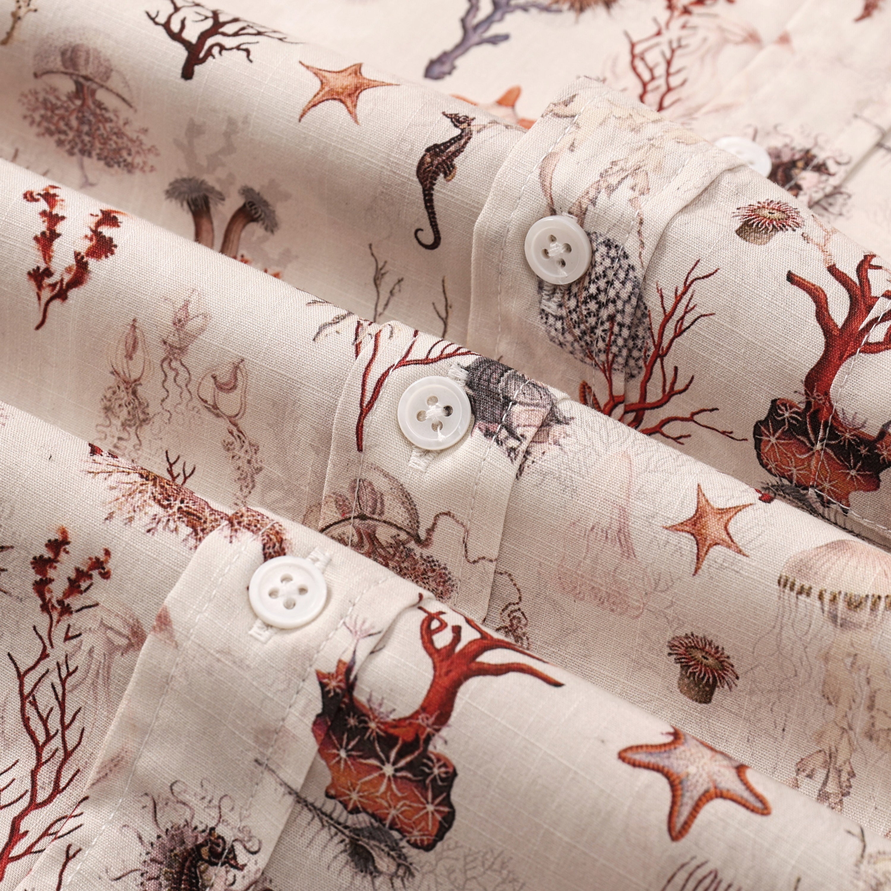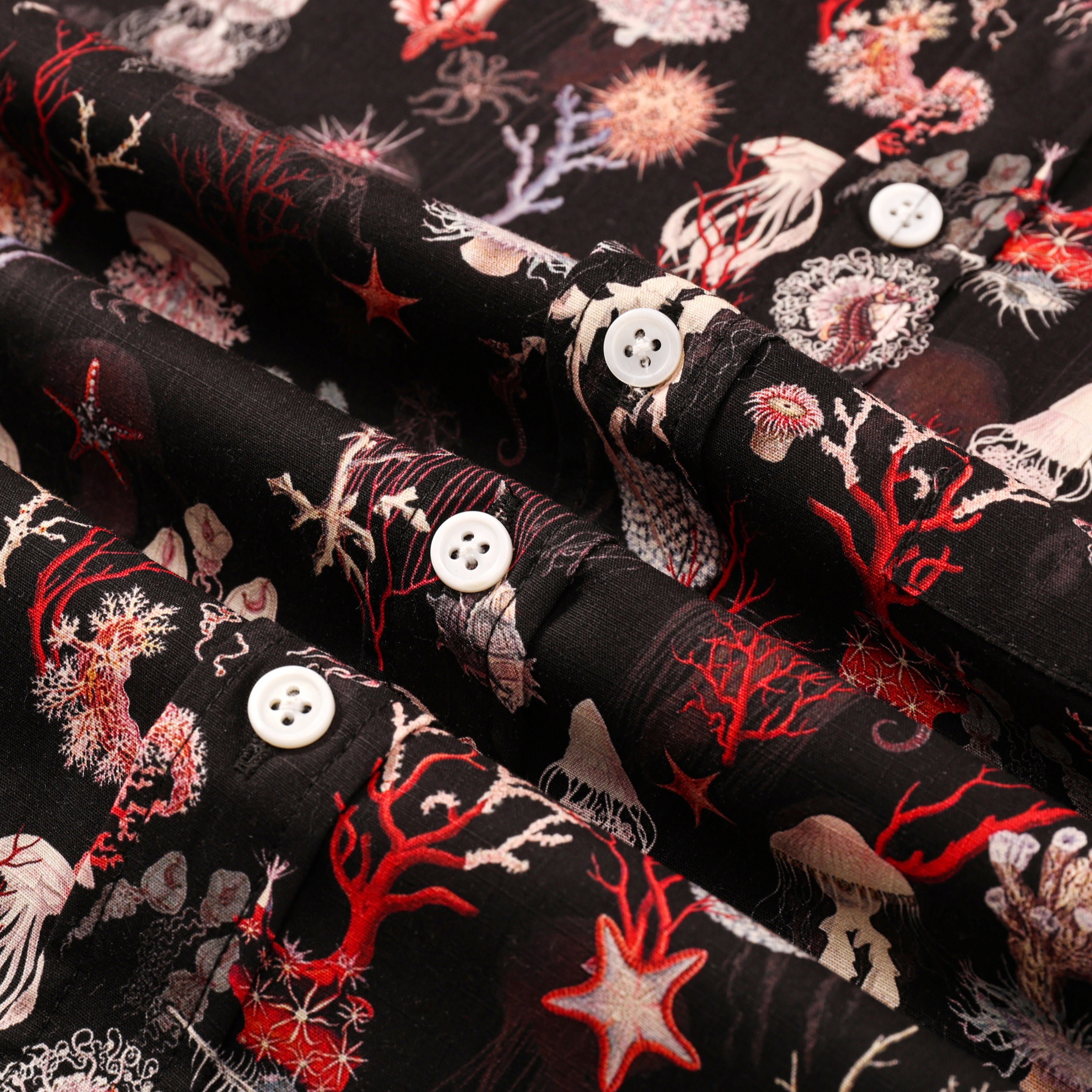 Aloha Underwater Creature Pattern Button Short Sleeve Shirt