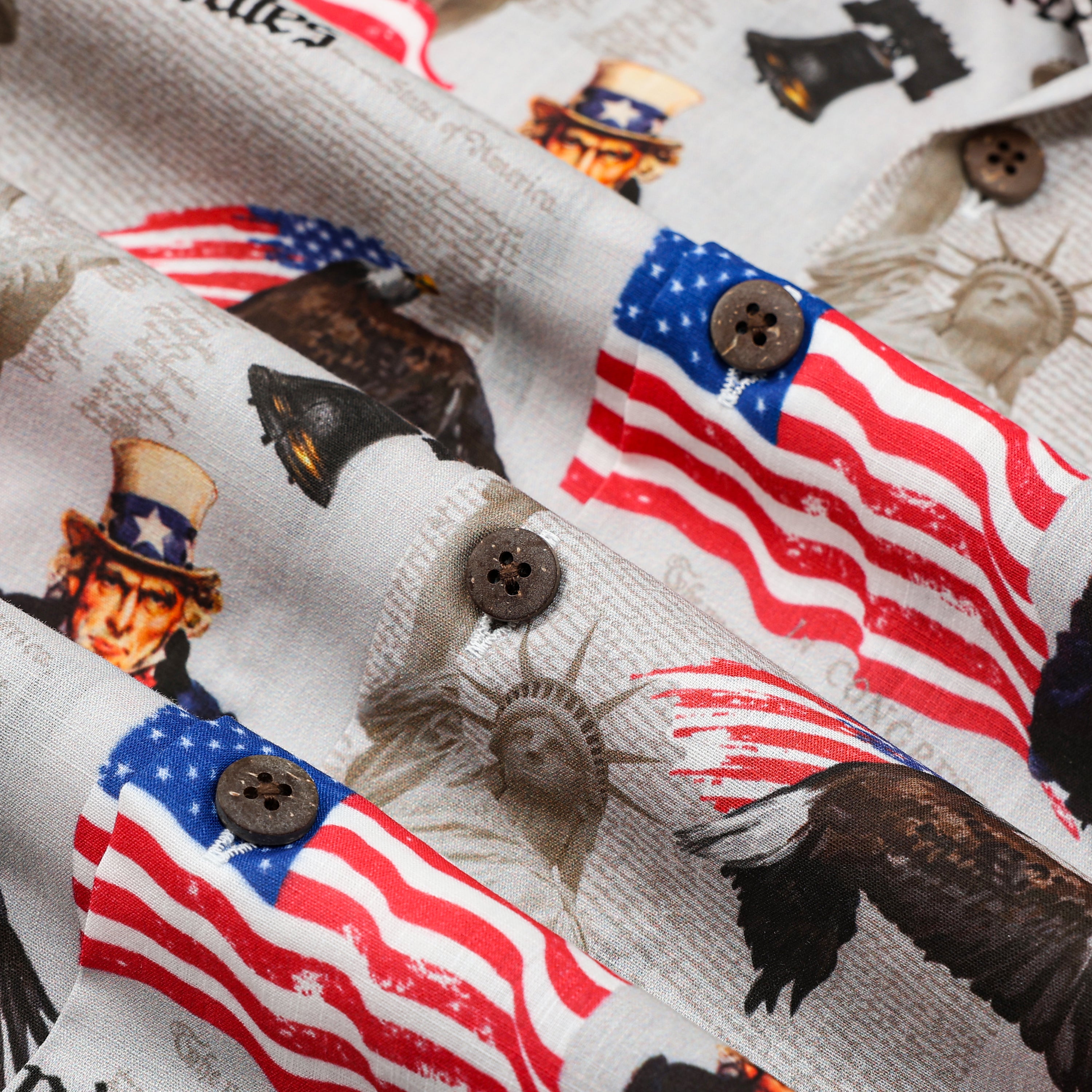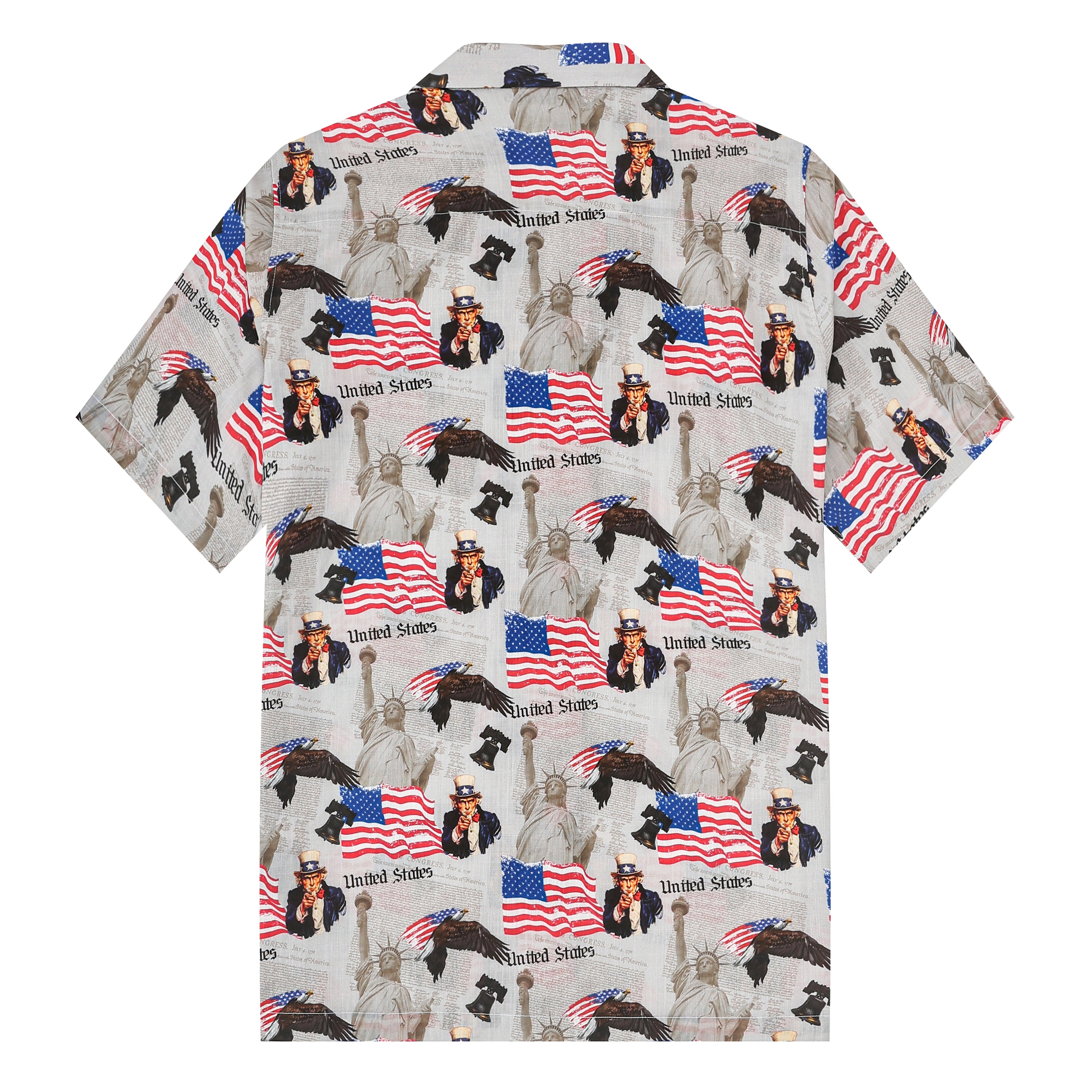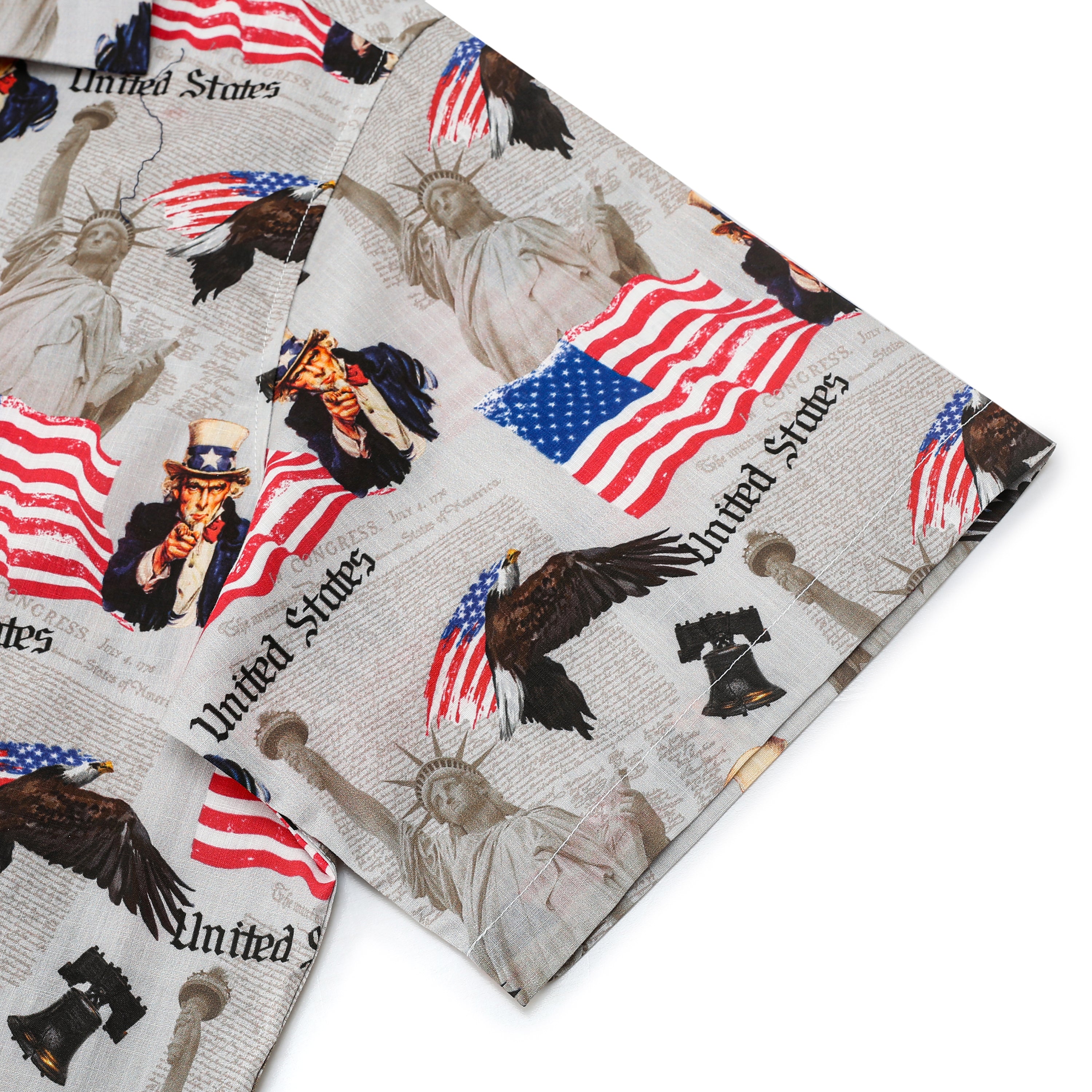 American Eagle Statue of Liberty Pattern Camp Collar Short Sleeve Shirt