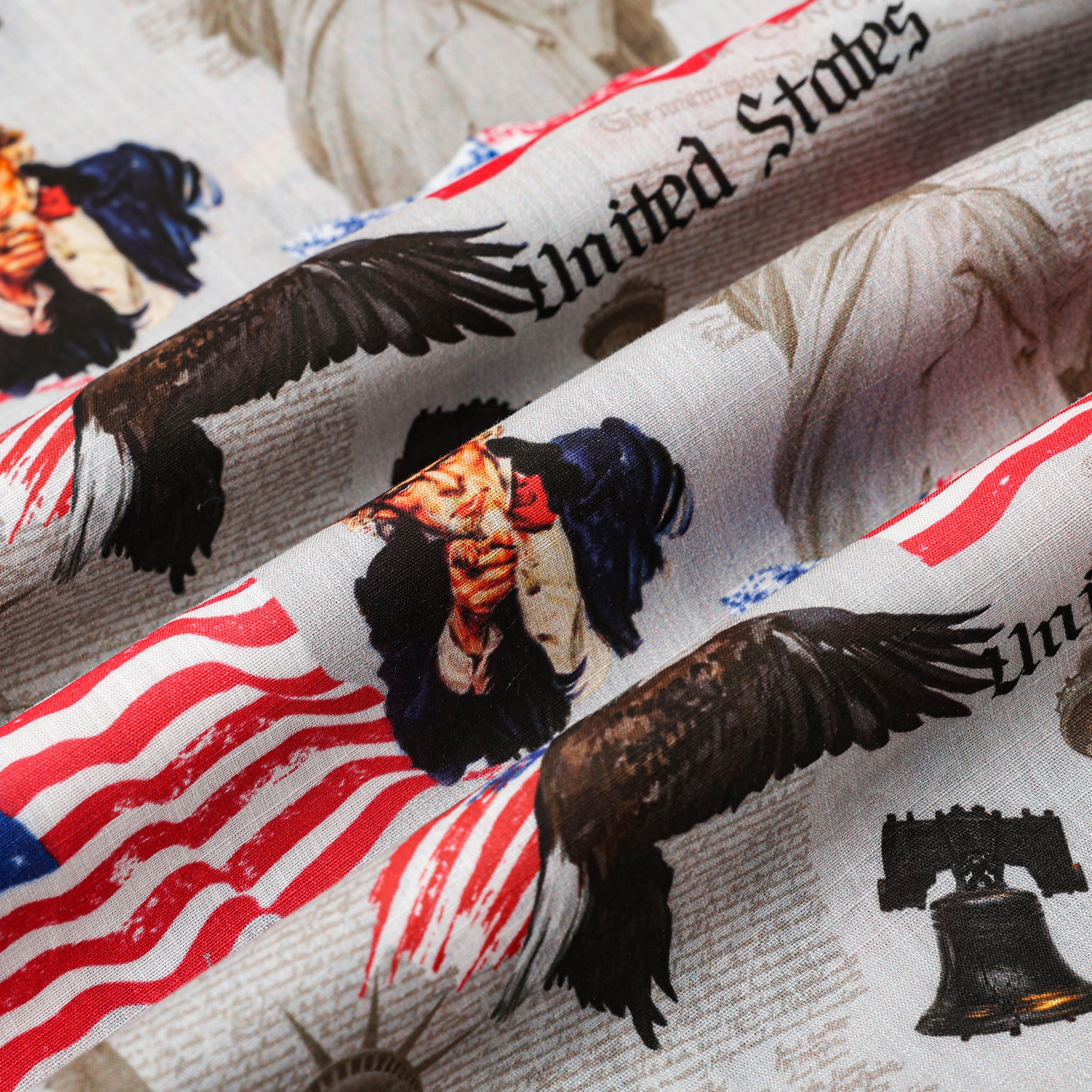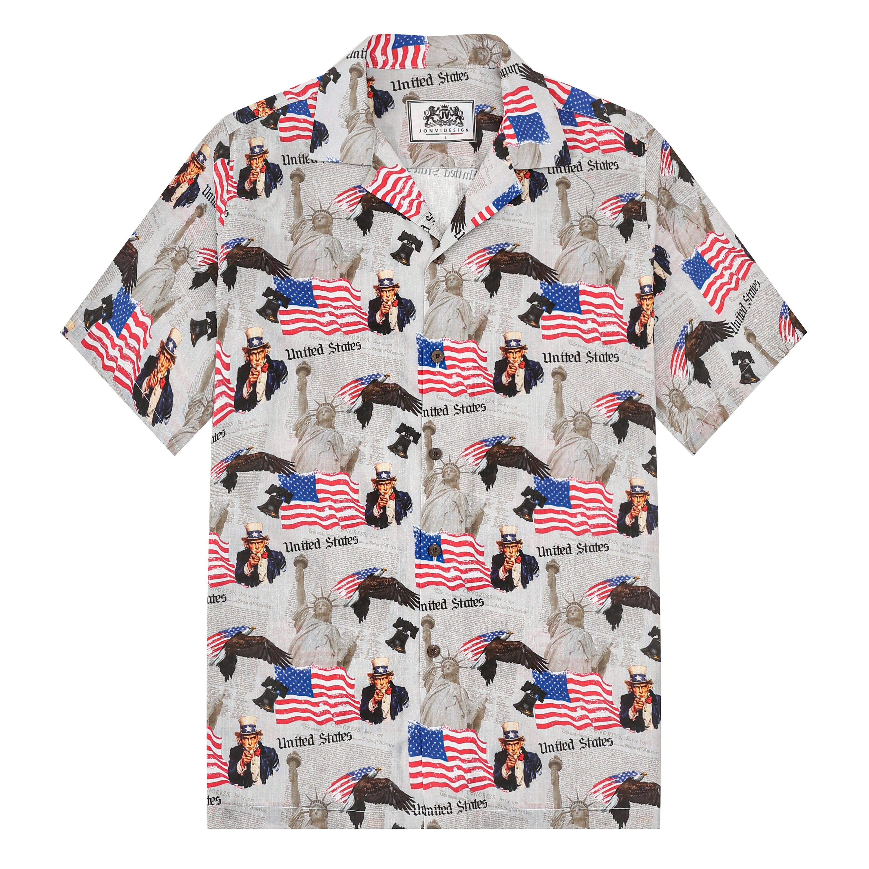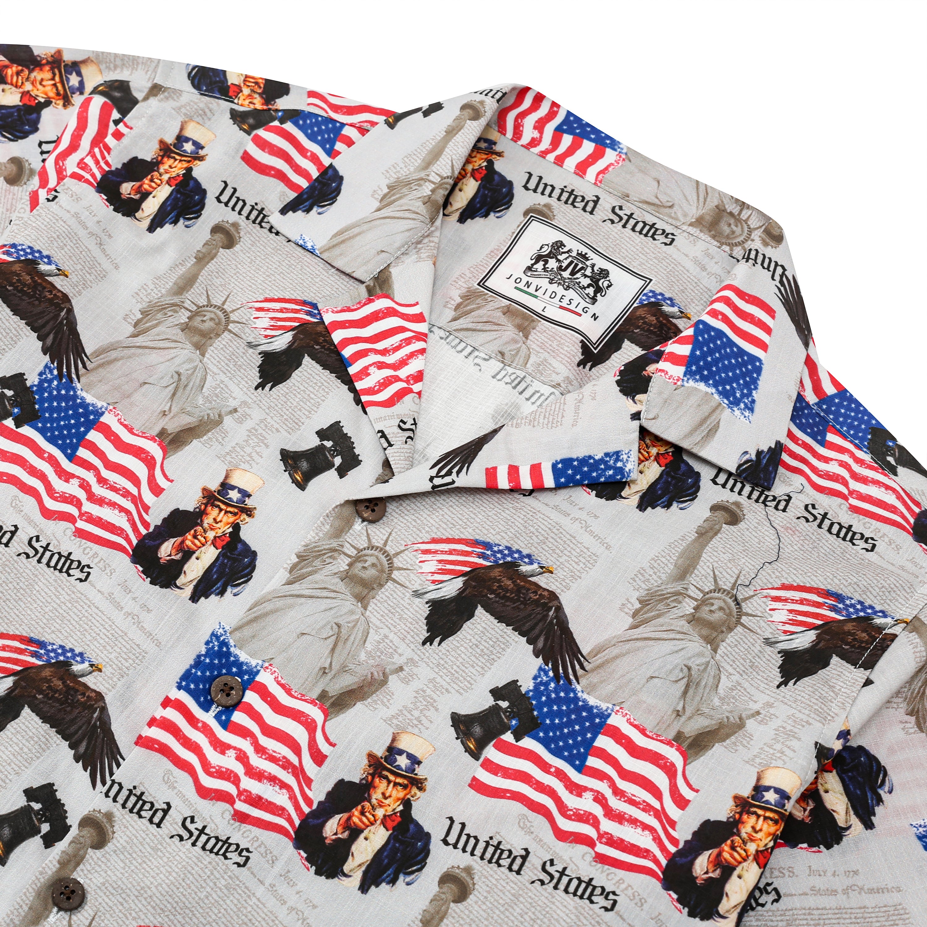 American Eagle Statue of Liberty Pattern Camp Collar Short Sleeve Shirt