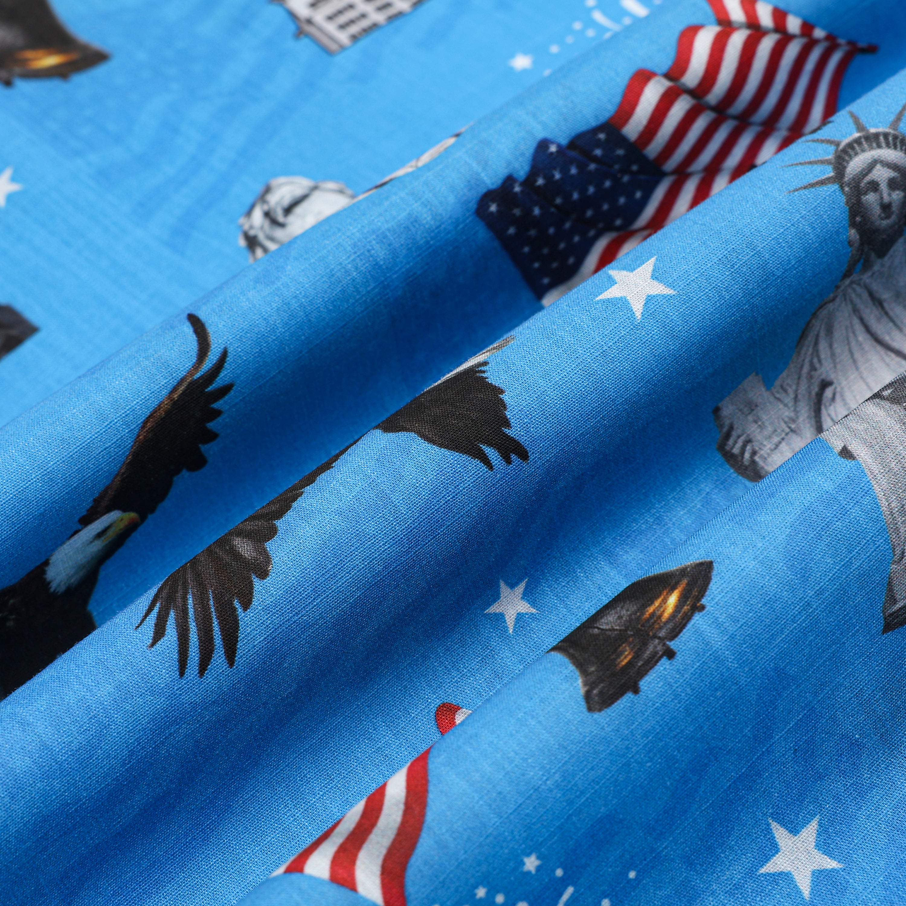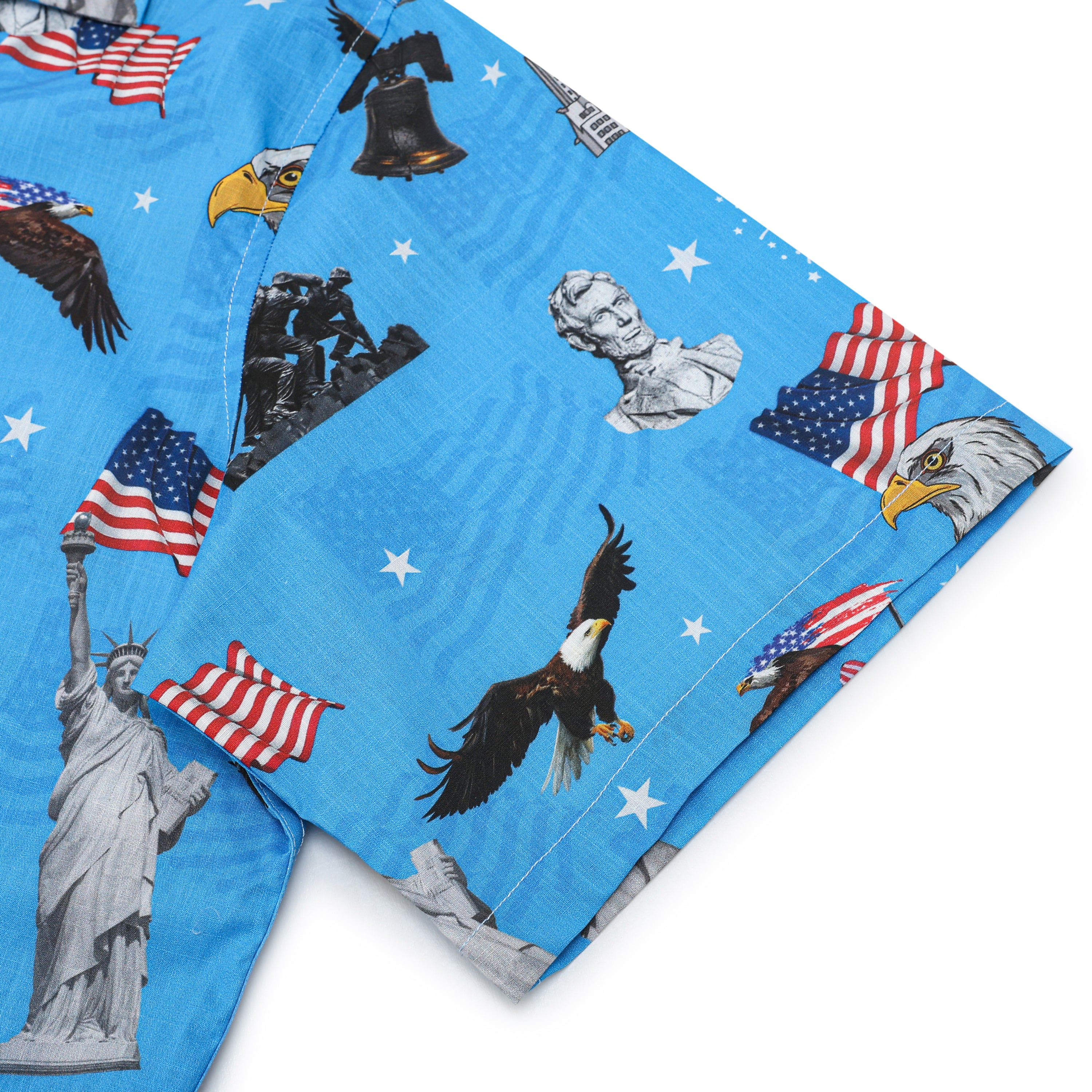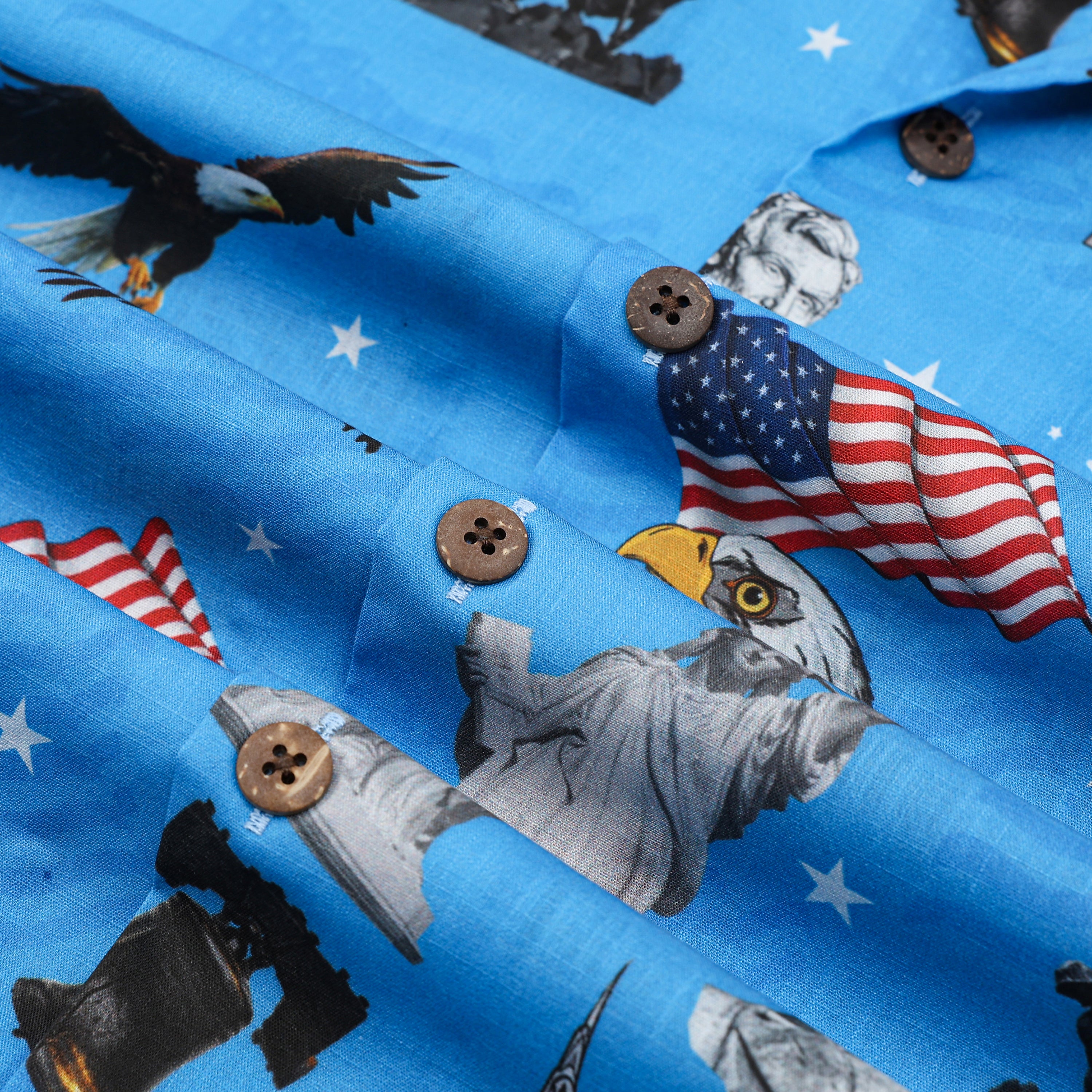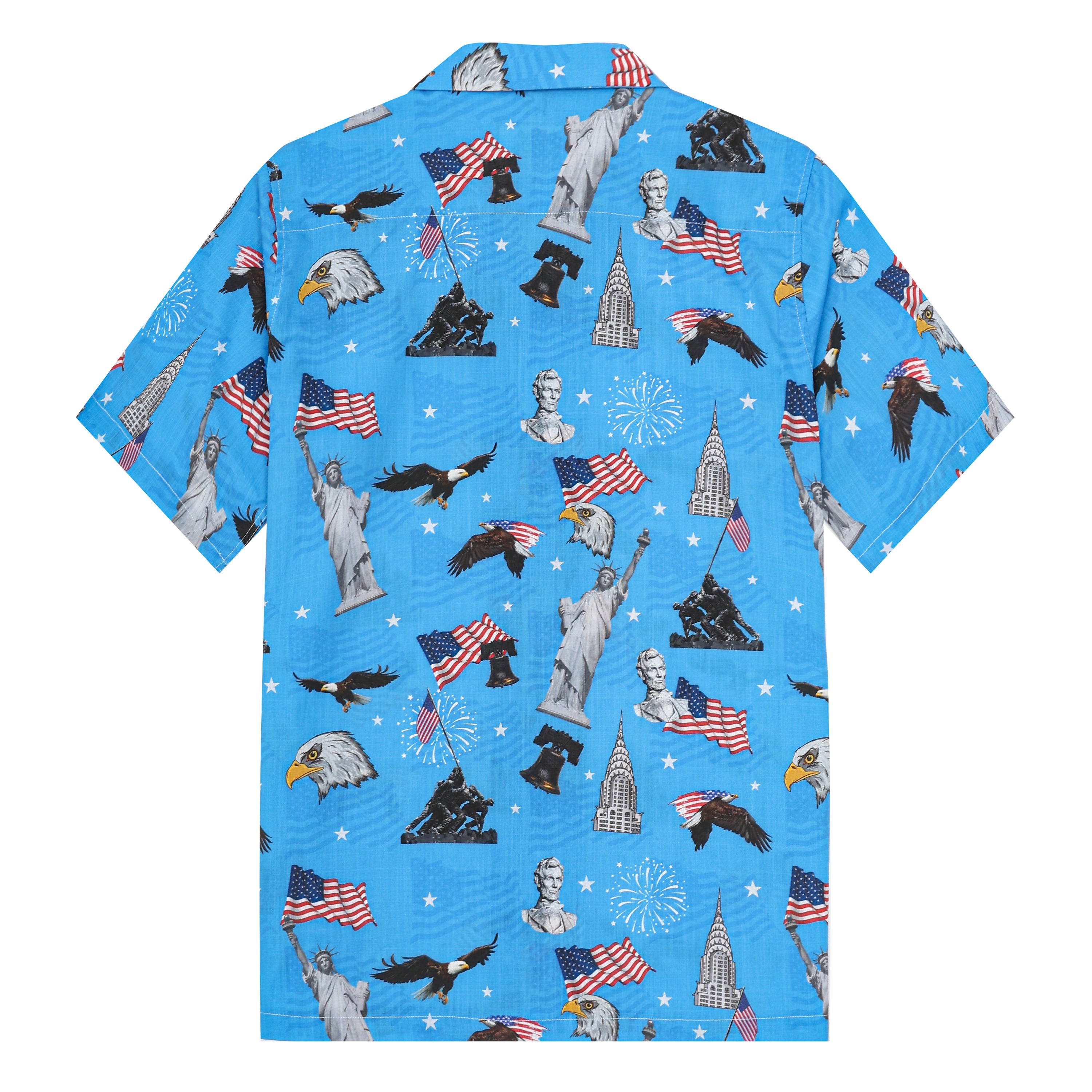 American Eagle Statue of Liberty Pattern Camp Collar Short Sleeve Shirt