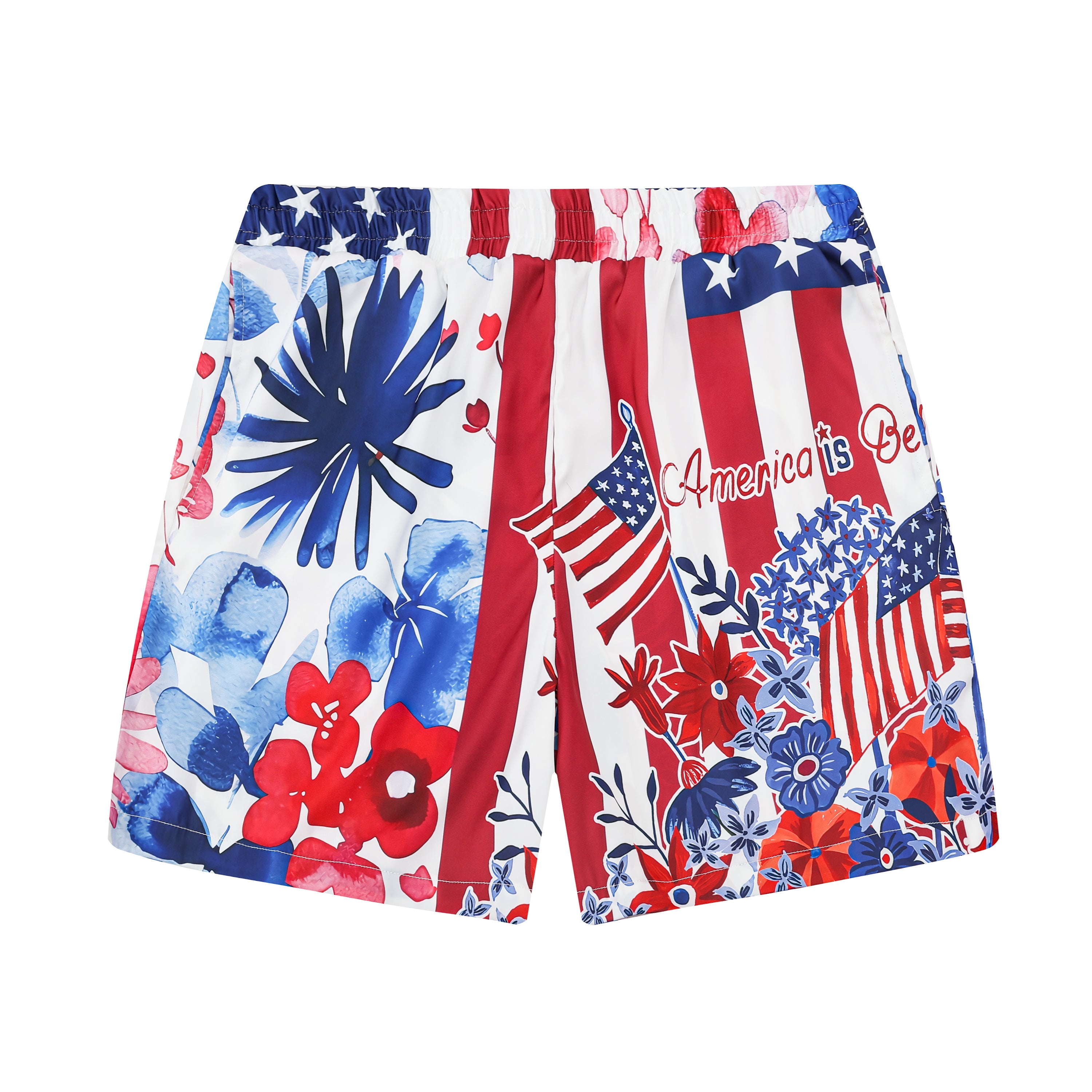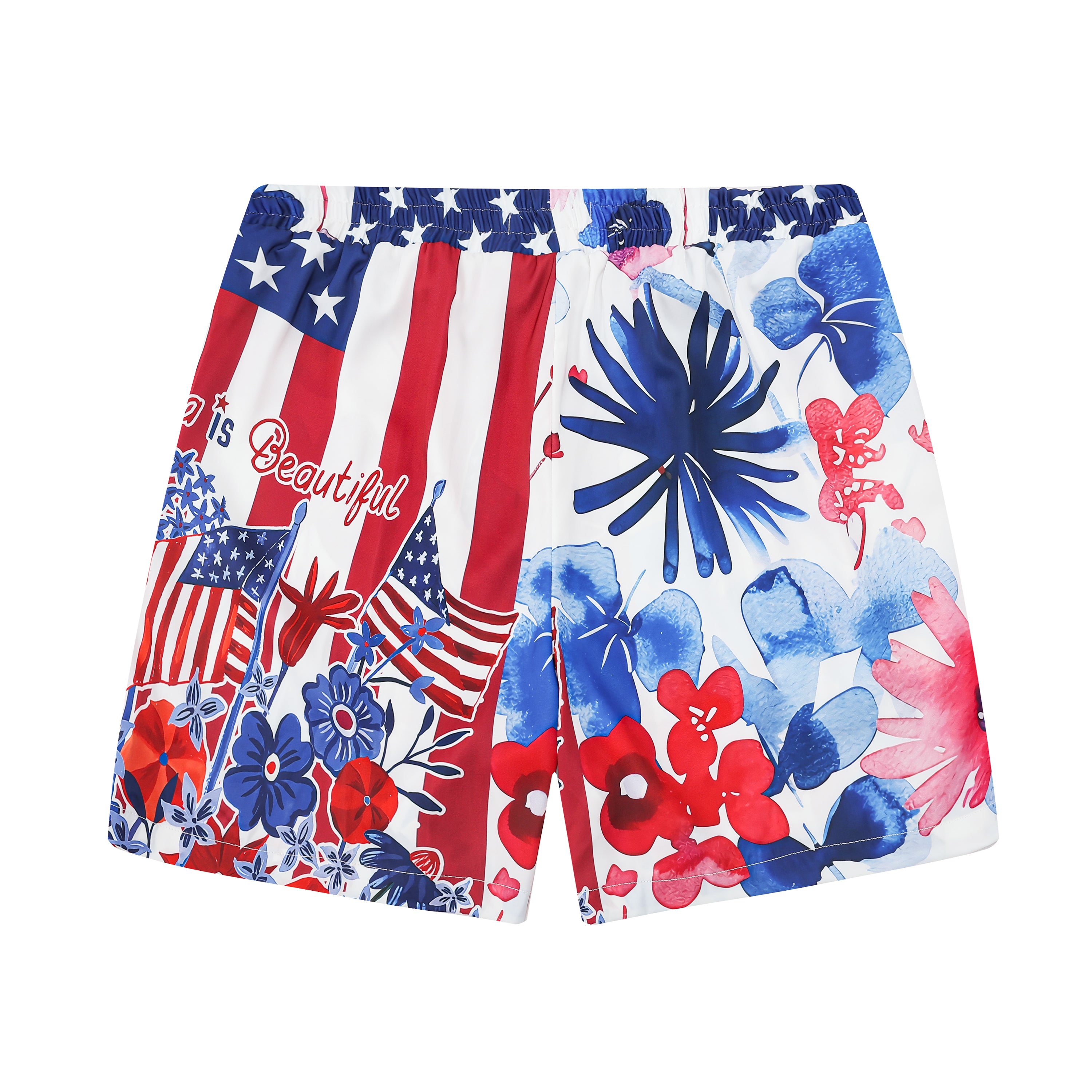 American Flag Floral Pattern Silk Fiber Waistband Shorts