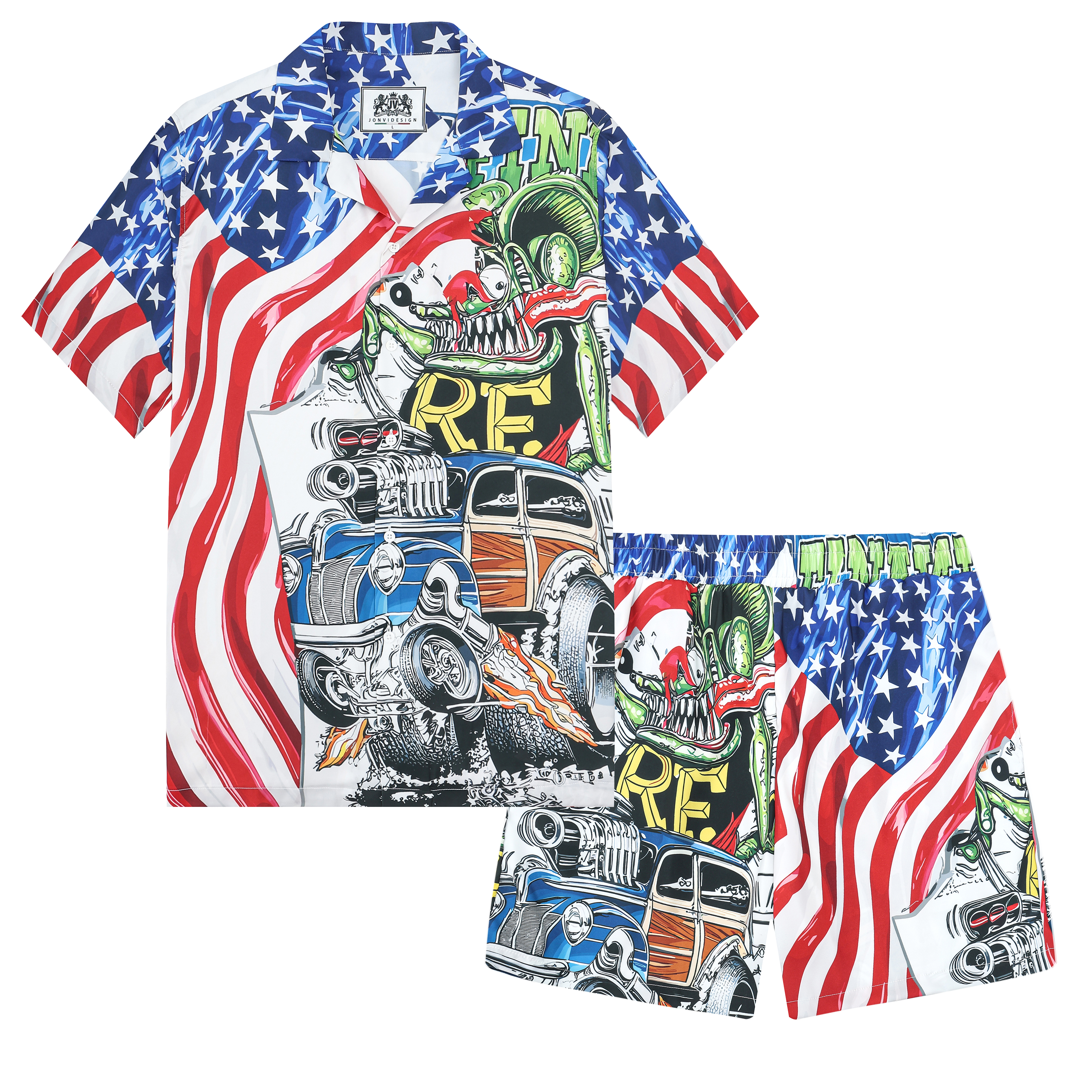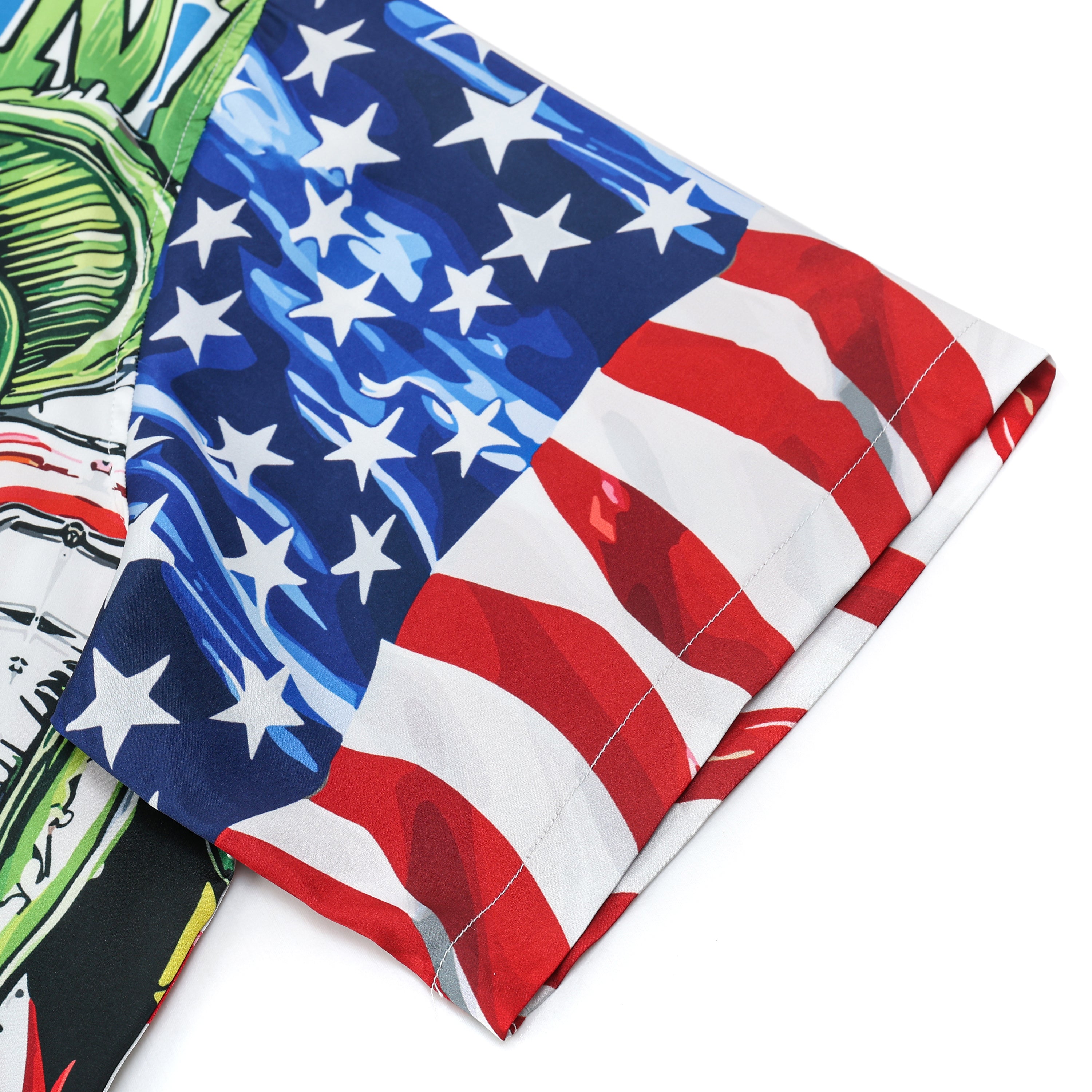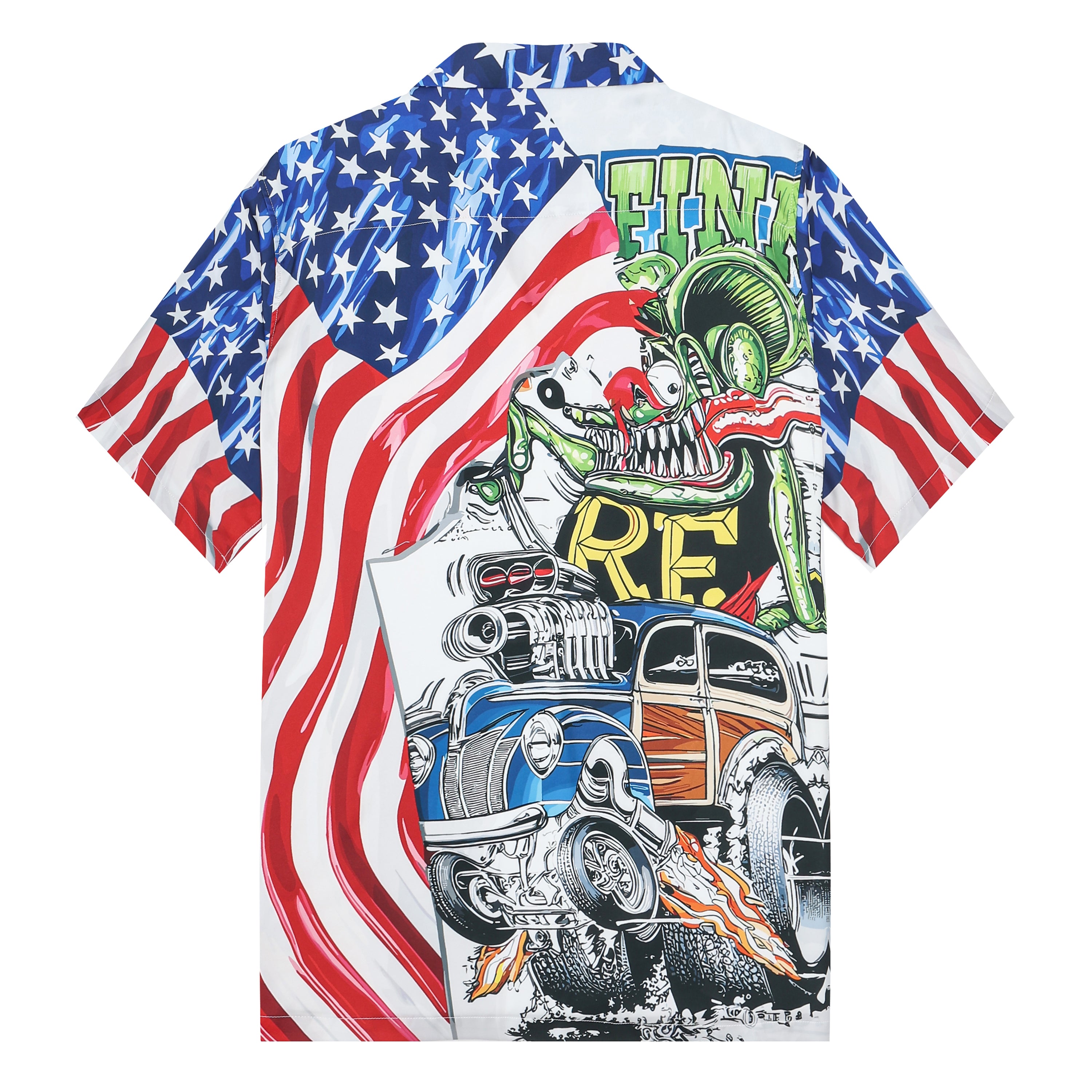 American Flag Mouse Modified Car Print Camp Collar Short Sleeve Shirt