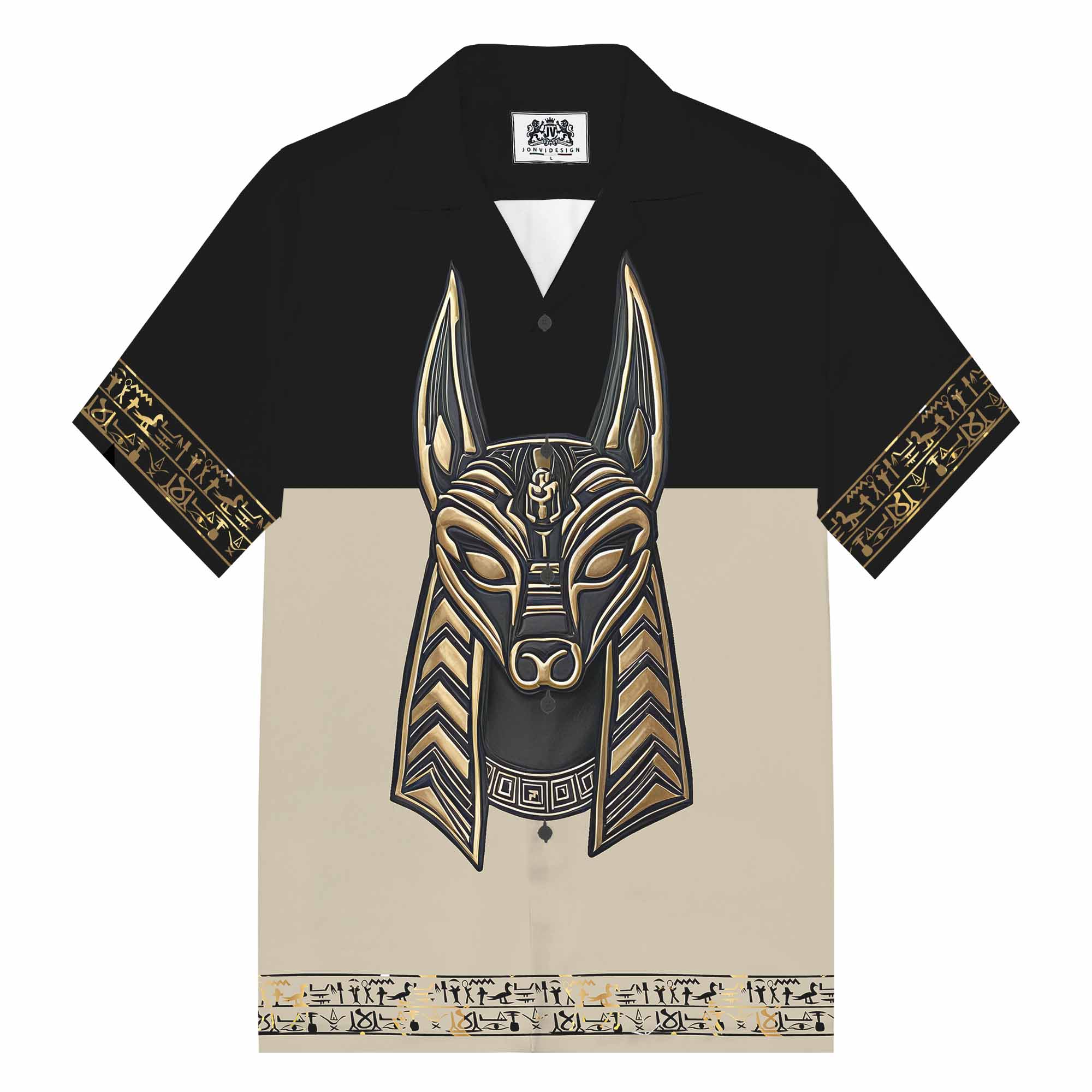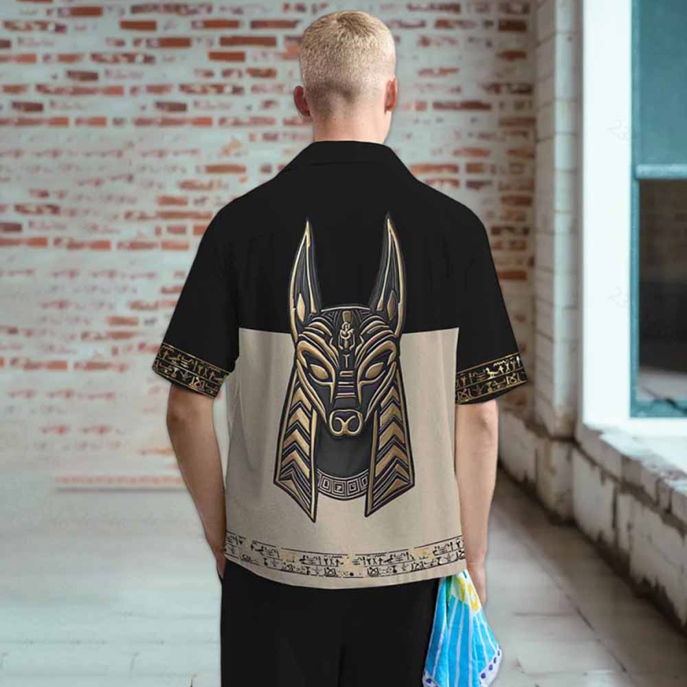 Ancient Egyptian Anubis Art Camp Collar Short Sleeve Shirt