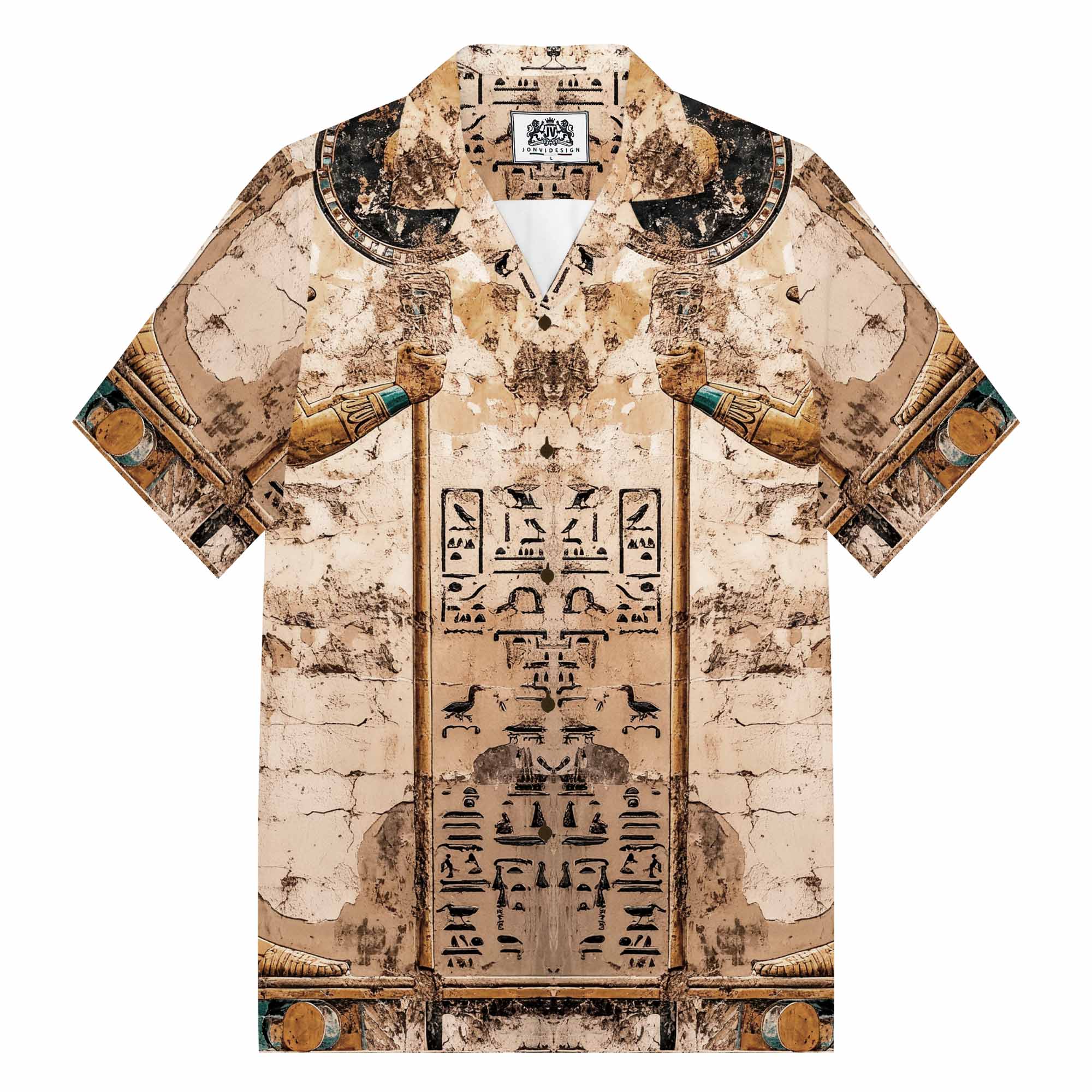 Ancient Egyptian Horus Print Camp Collar Short-Sleeved Shirt