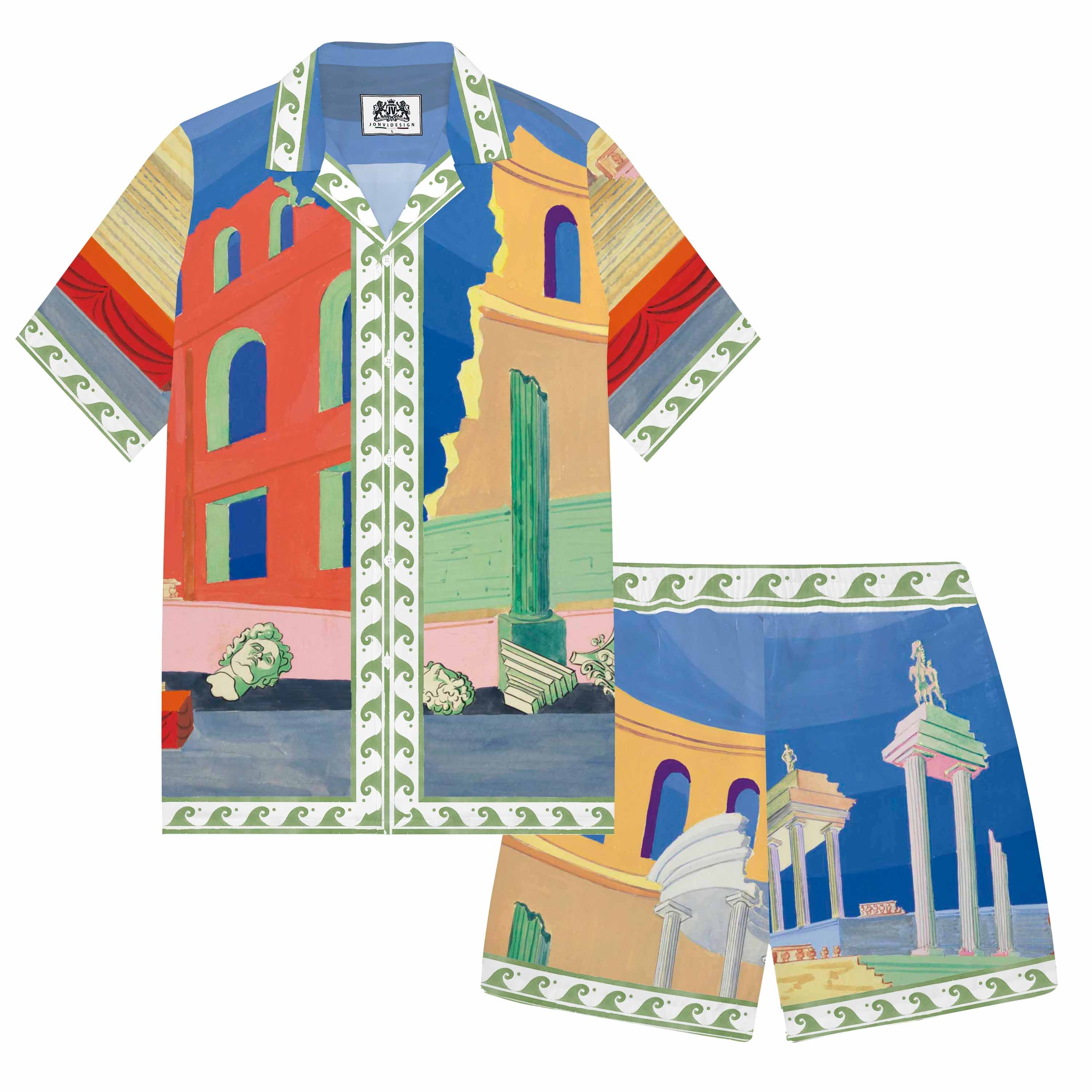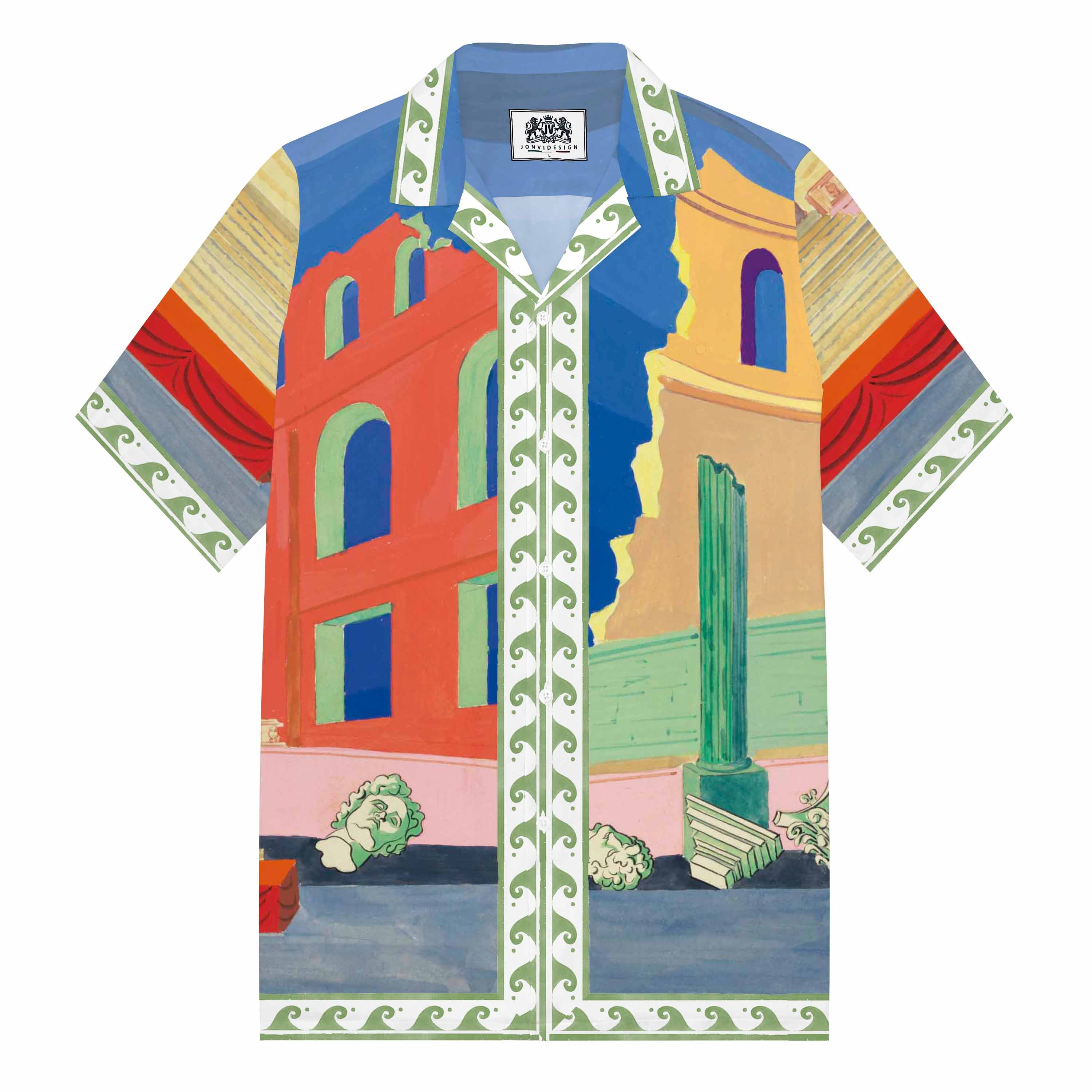 Ancient Greek Architecture, Temple Pattern Camp Collar Short Sleeve Shirt