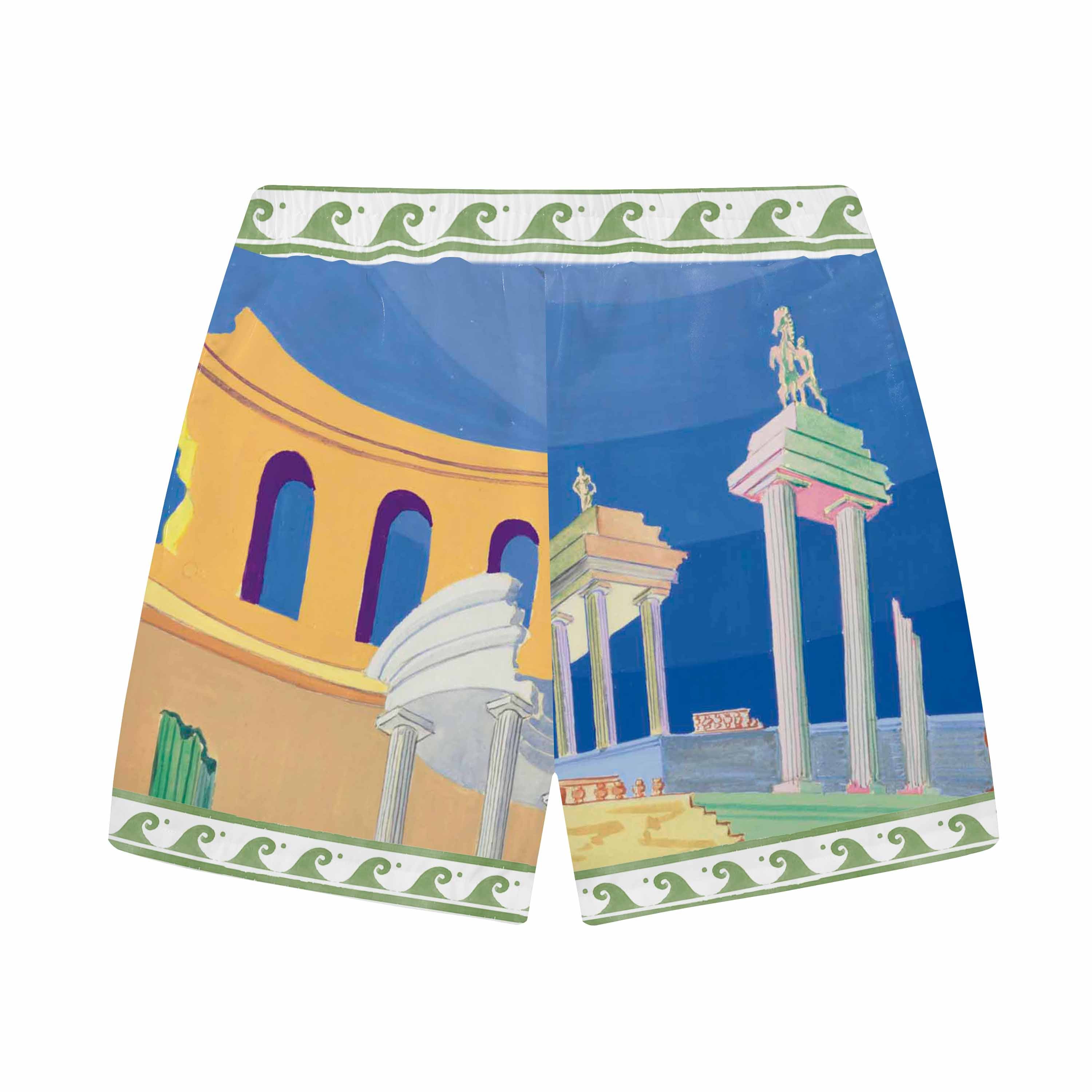 Ancient Greek Architecture, Temple Pattern Elastic Waistband Casual Shorts