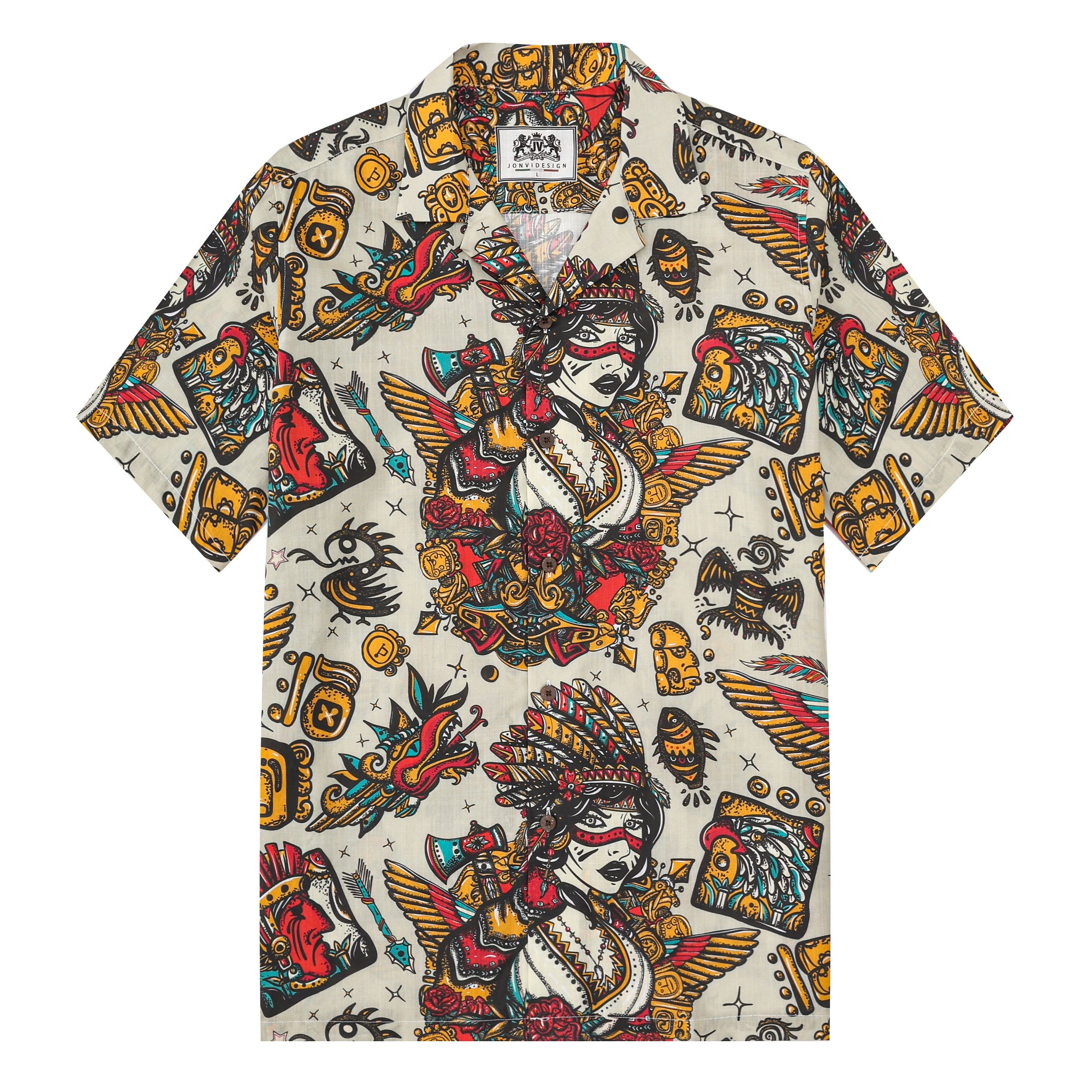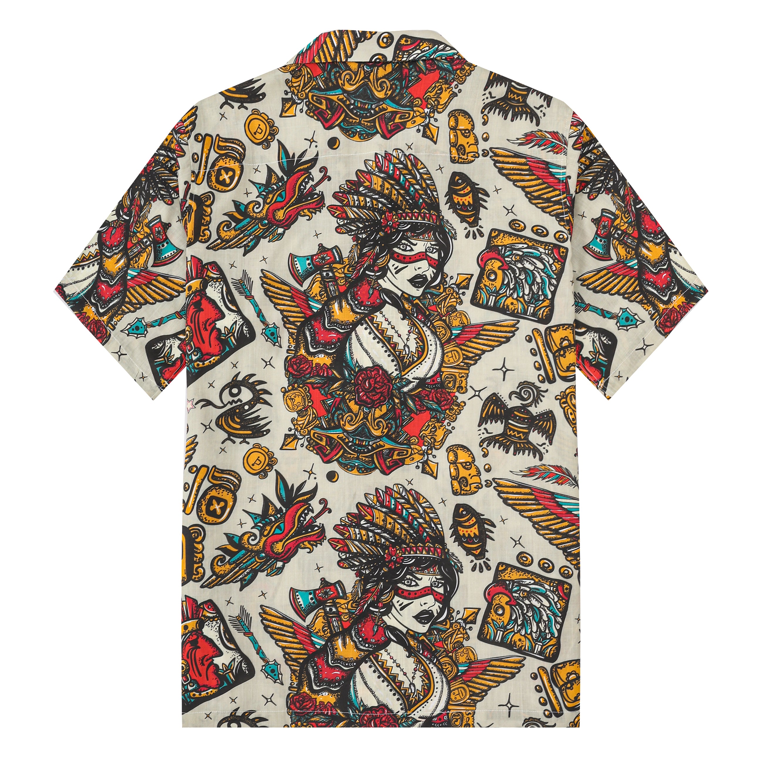 Ancient Mexican Mayan Pattern Short Sleeve Camp Collar Shirt