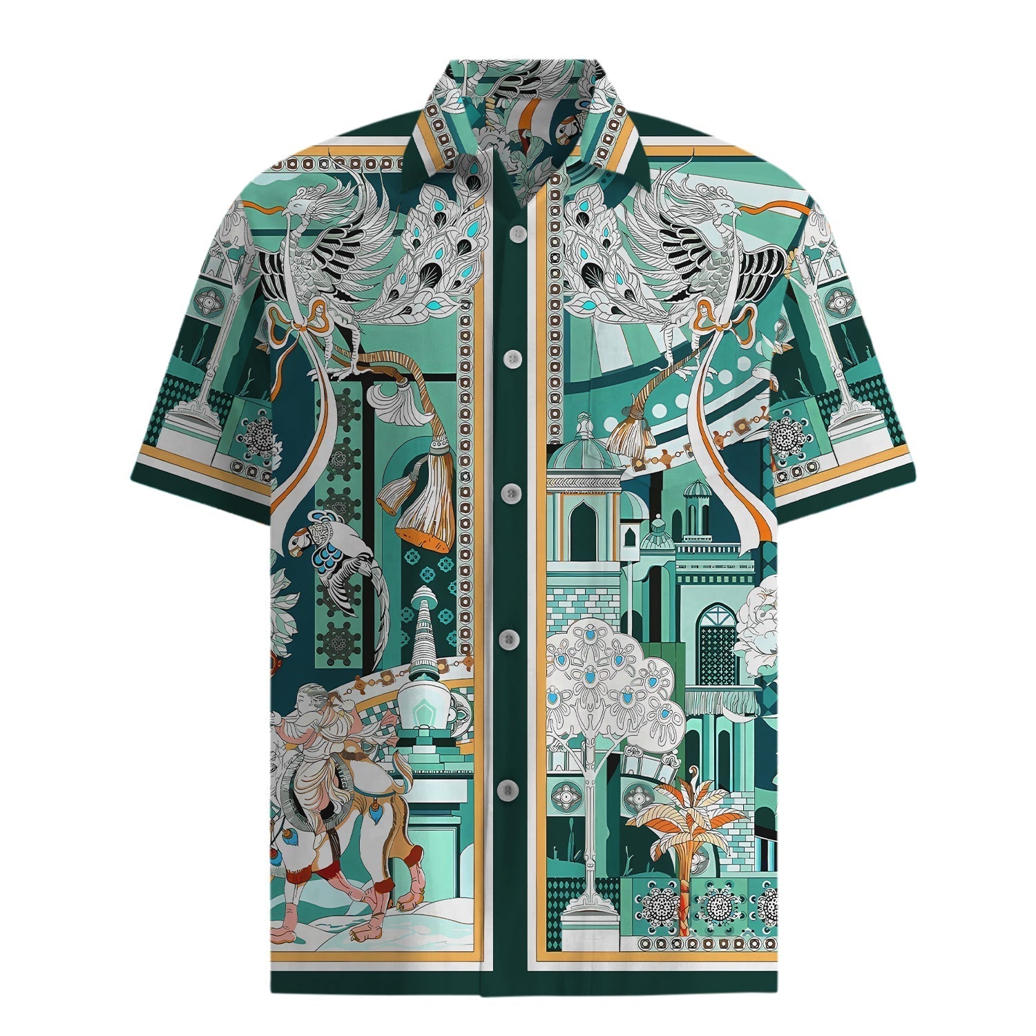 Architecture Pattern Short Sleeve Shirt in Green