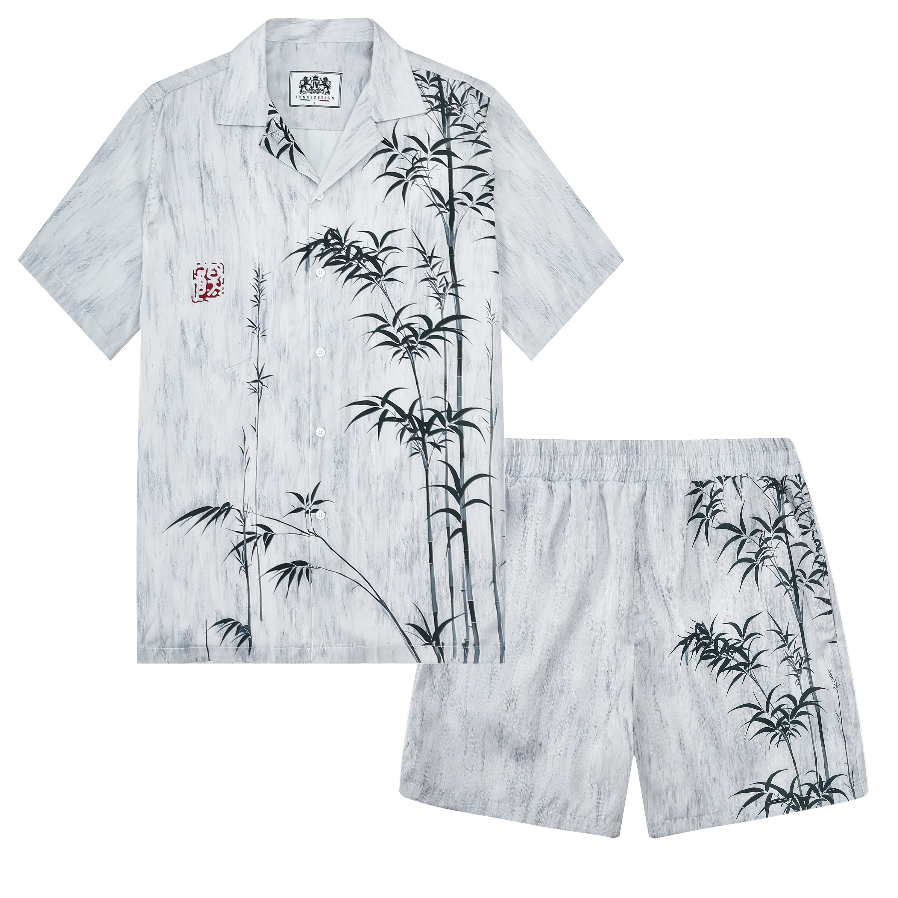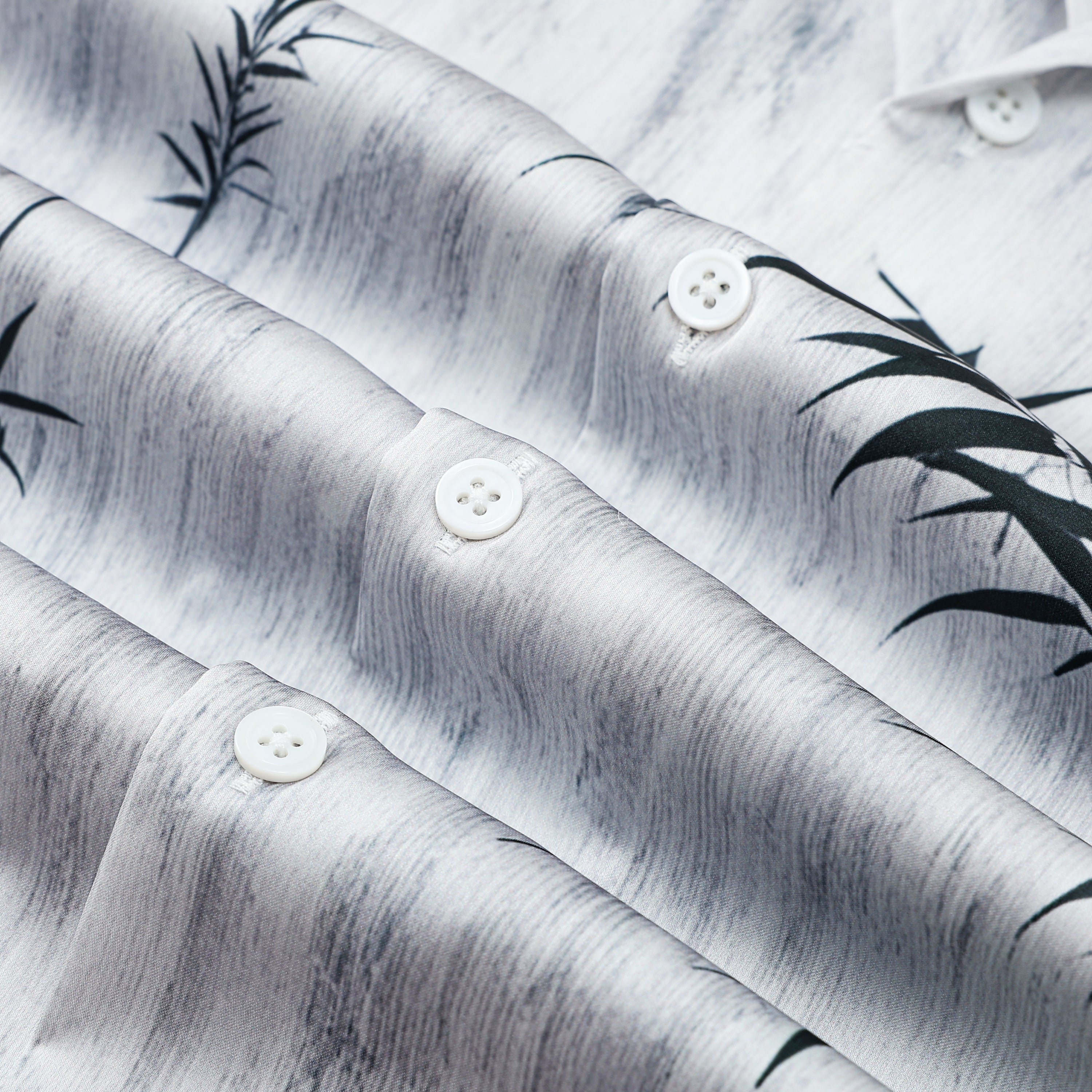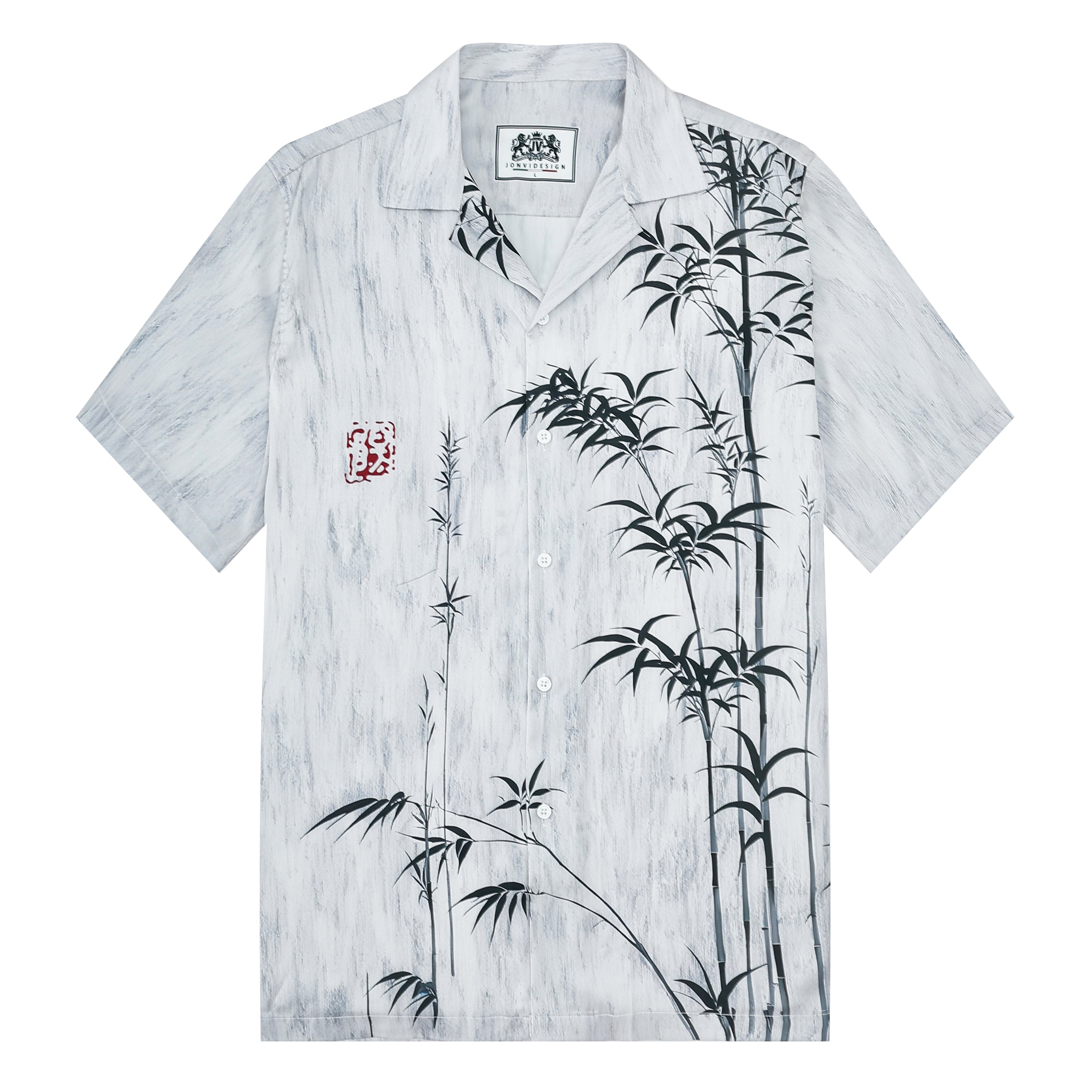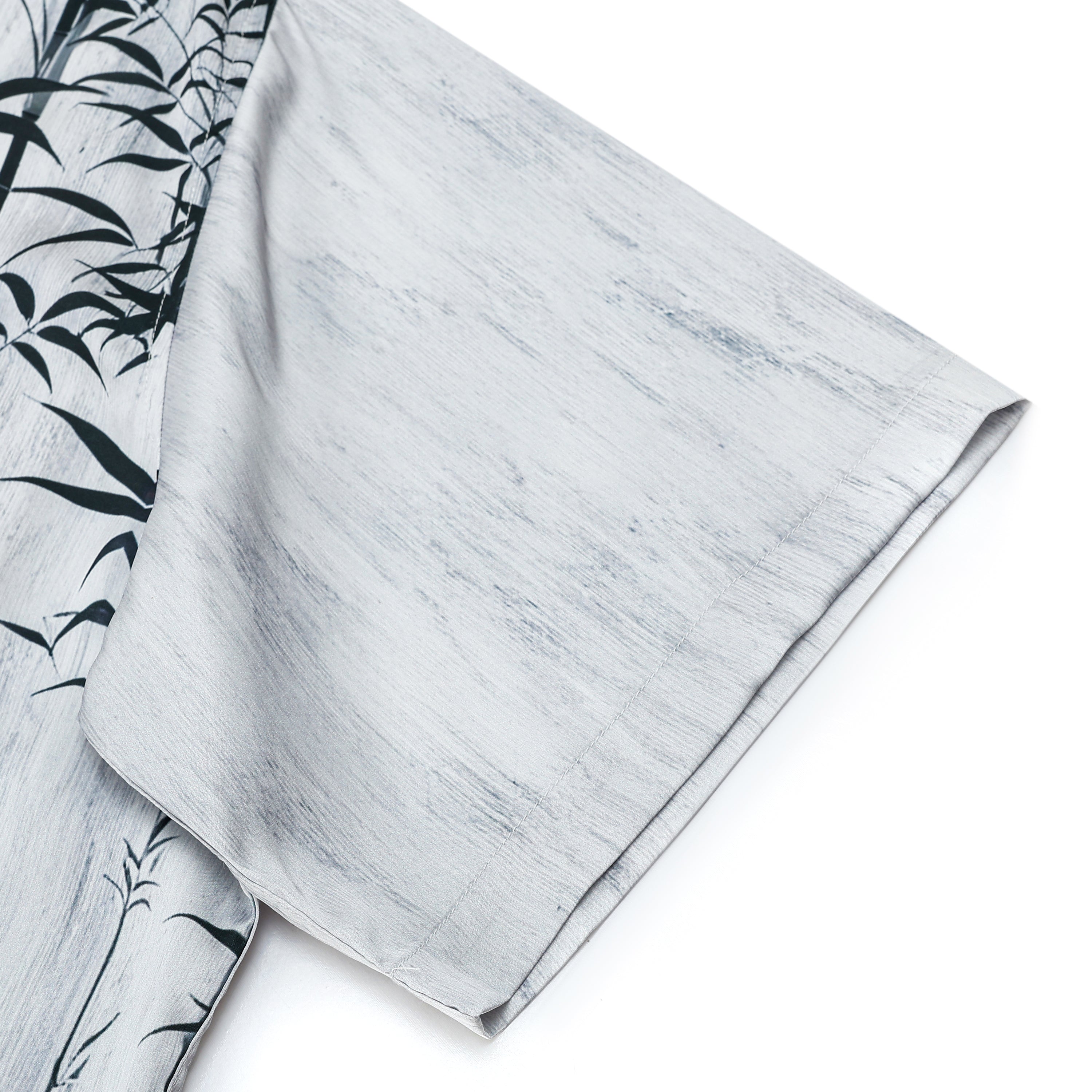 Bamboo Print Design Camp Collar Short Sleeve Shirt