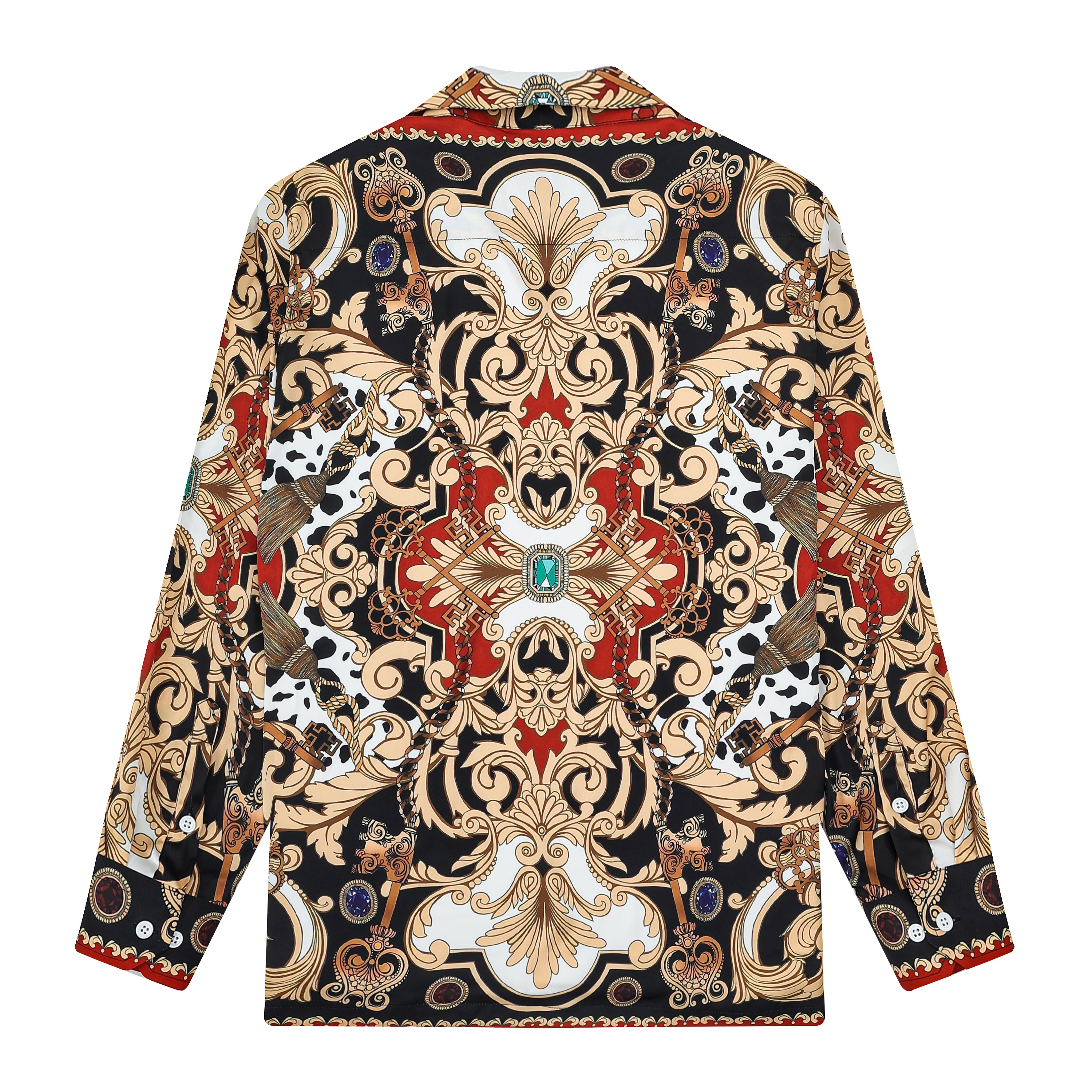 Baroque Print Long Sleeve Camp Collar Shirt