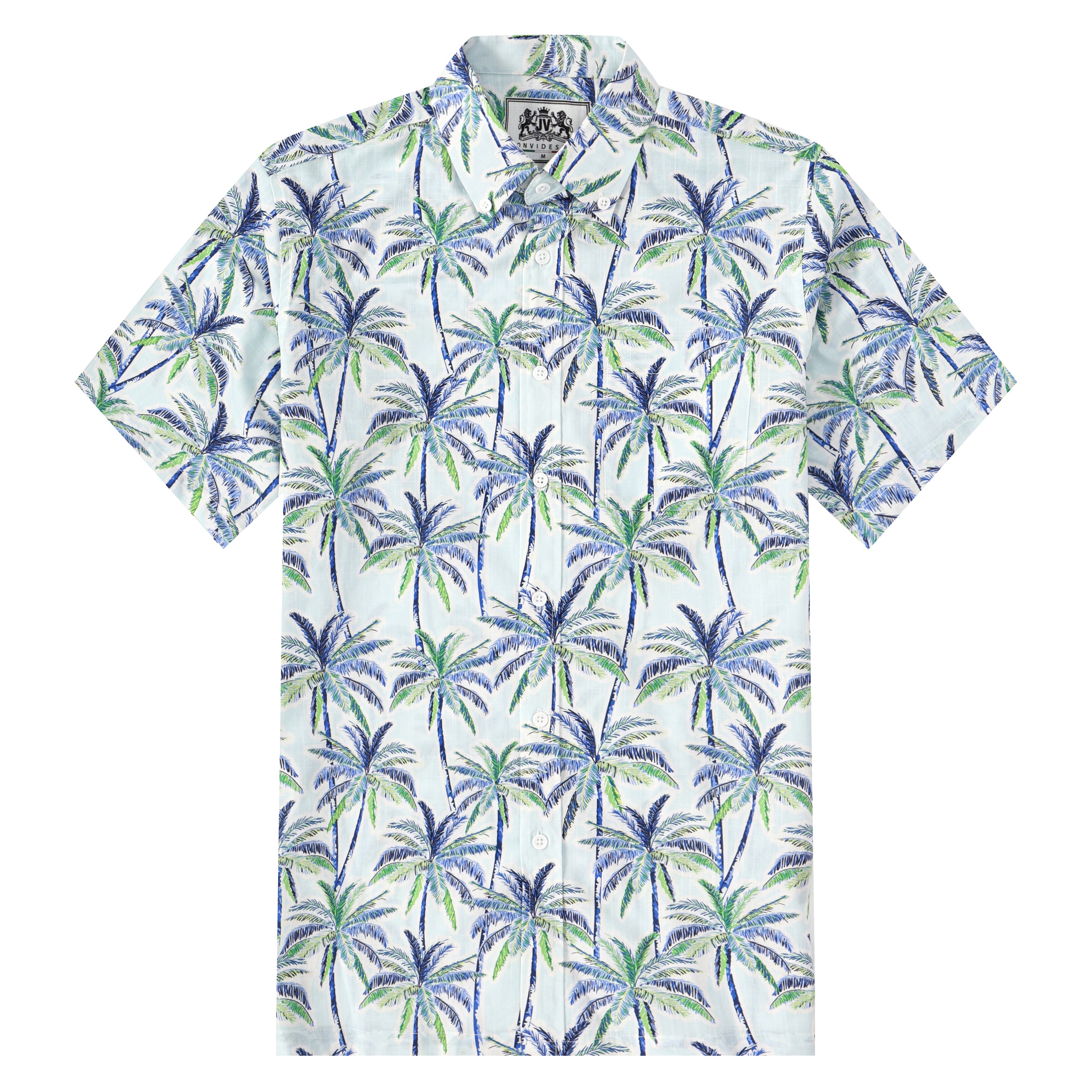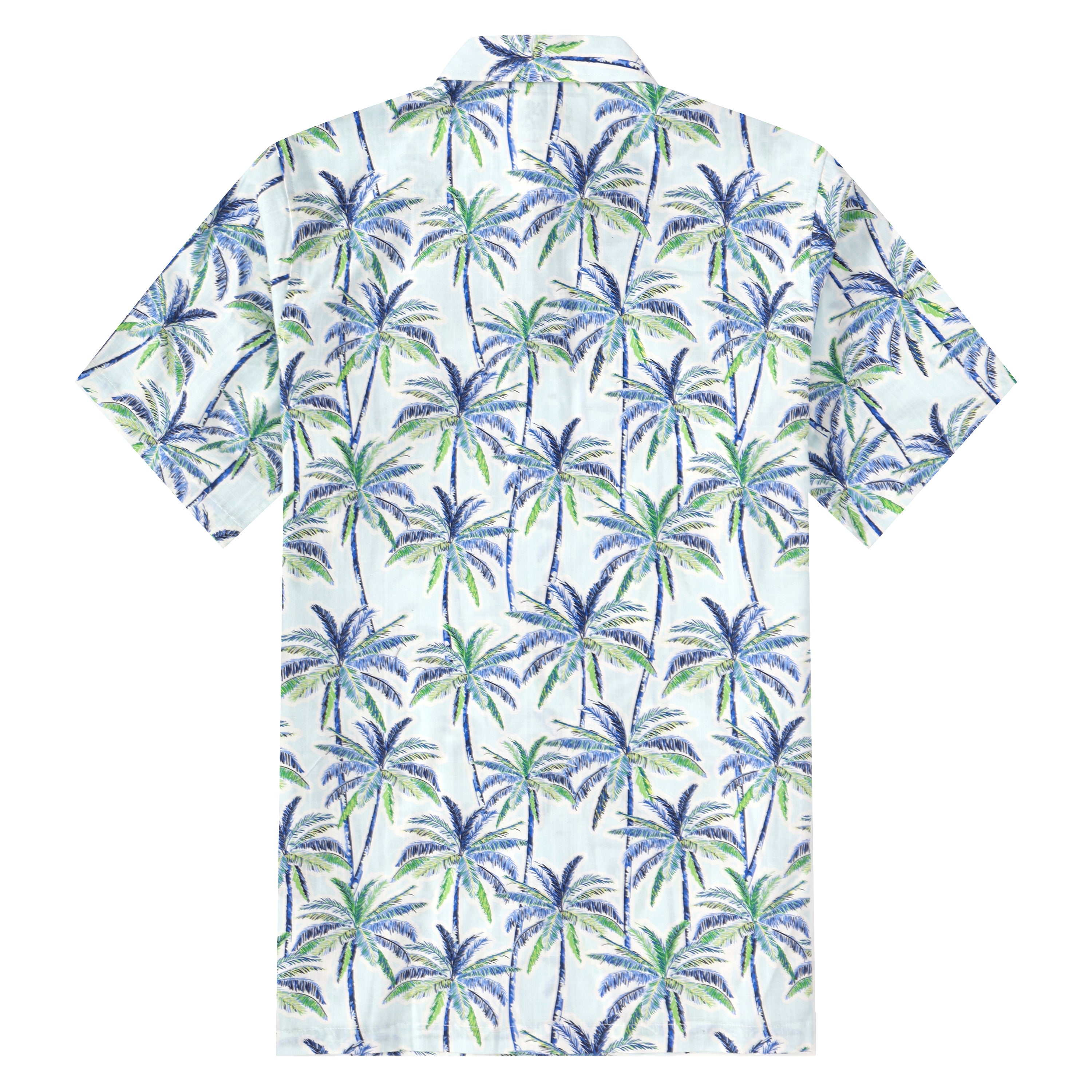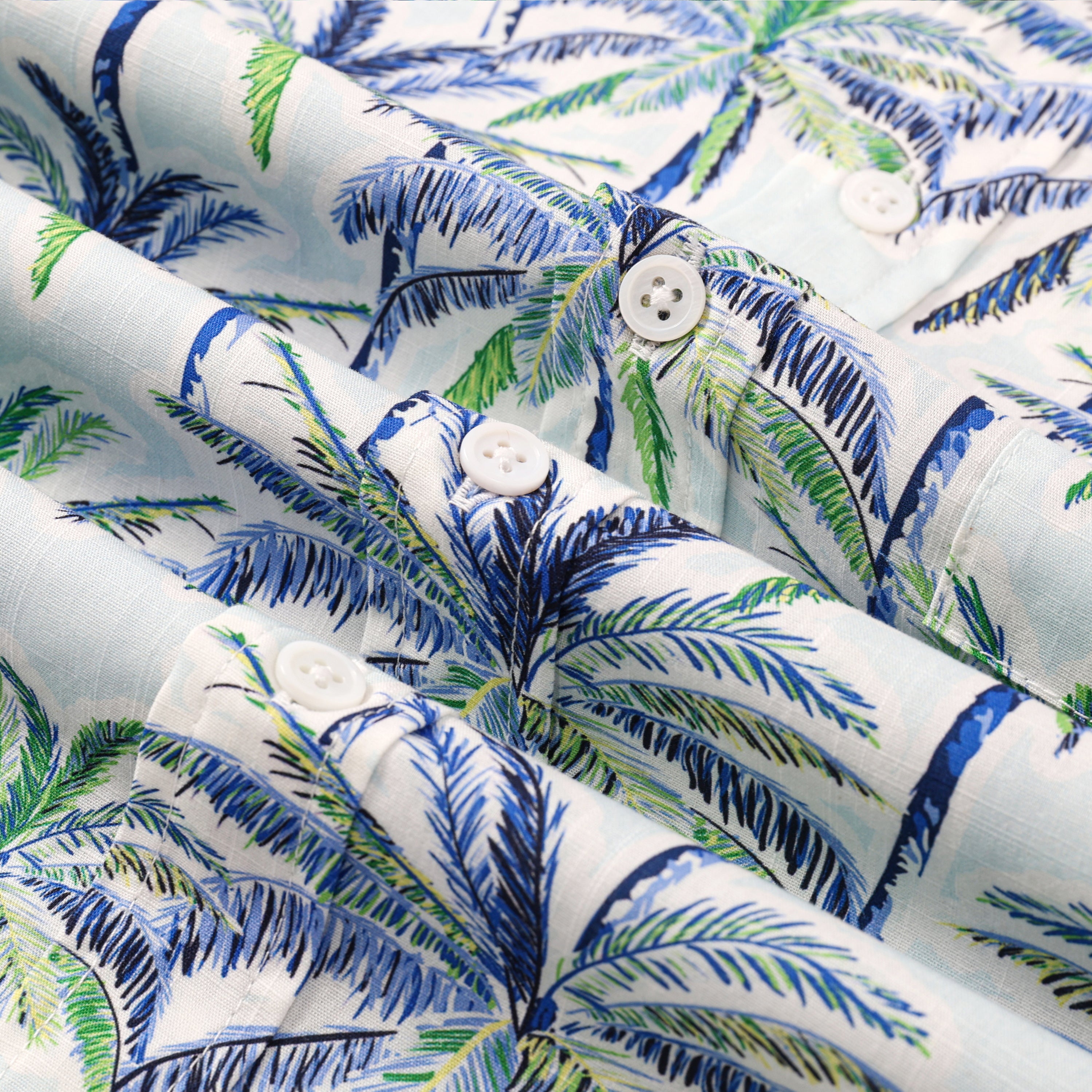 Beach Palm Tree Pattern Button Short Sleeve Shirt
