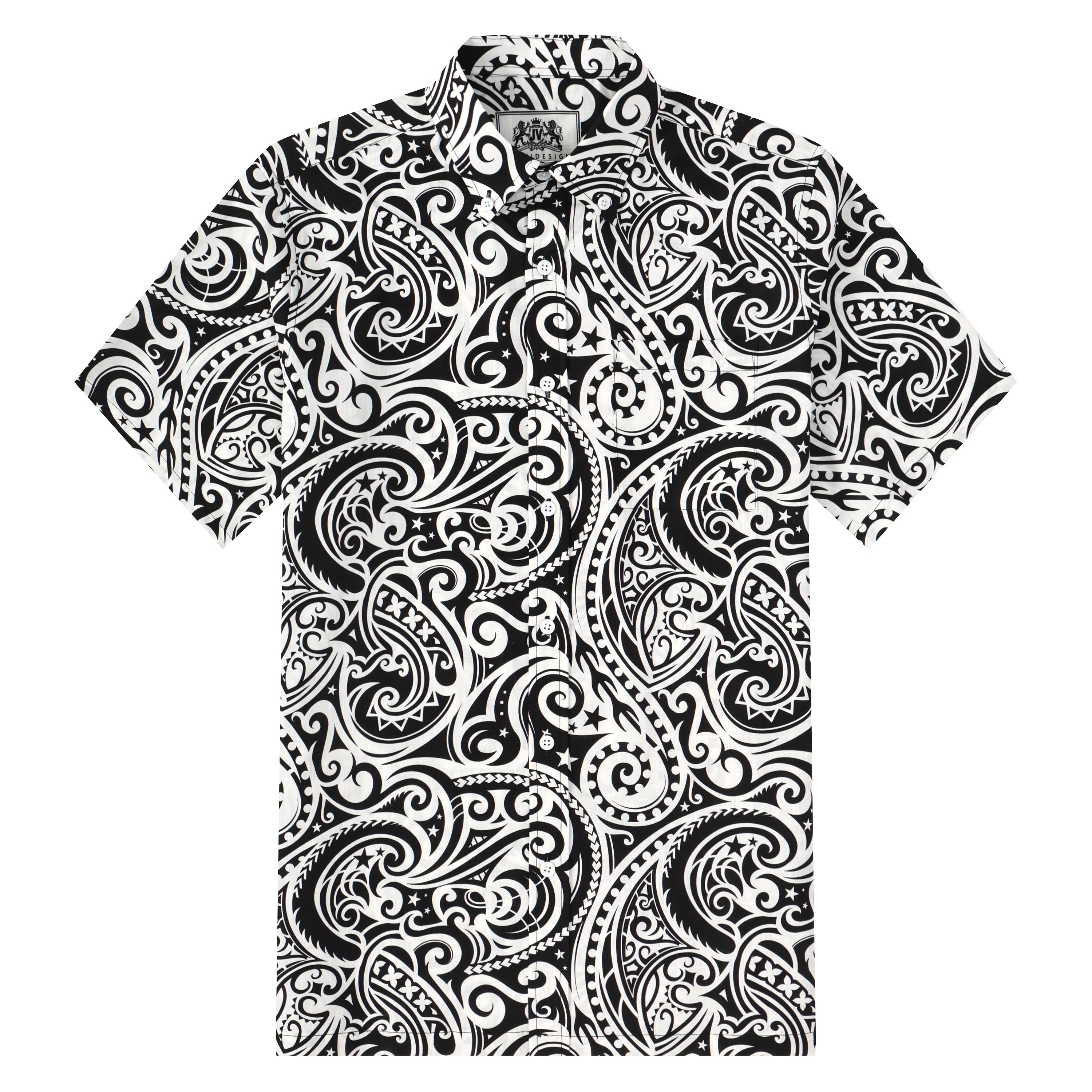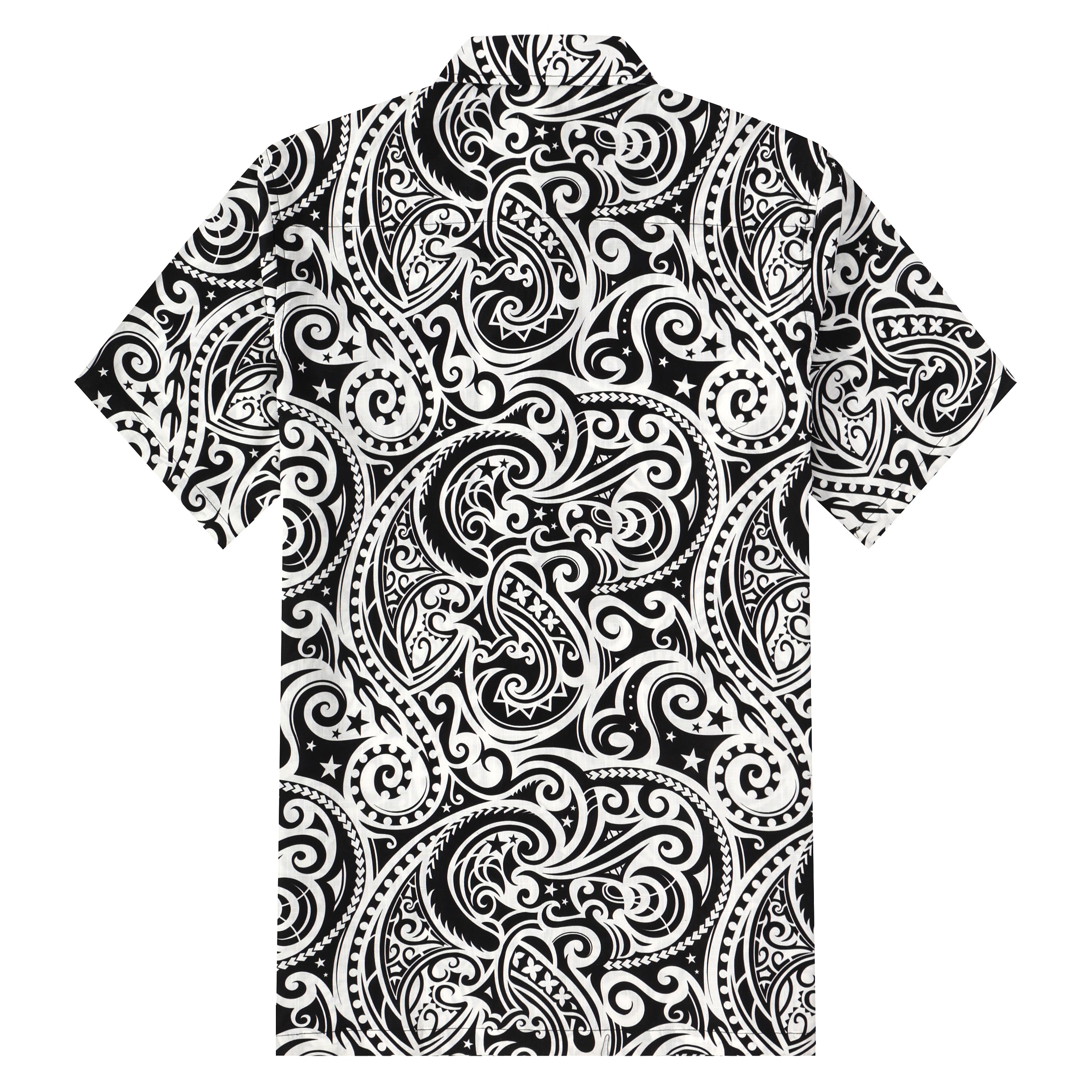 Black Paisley Pattern Button Short Sleeve Shirt