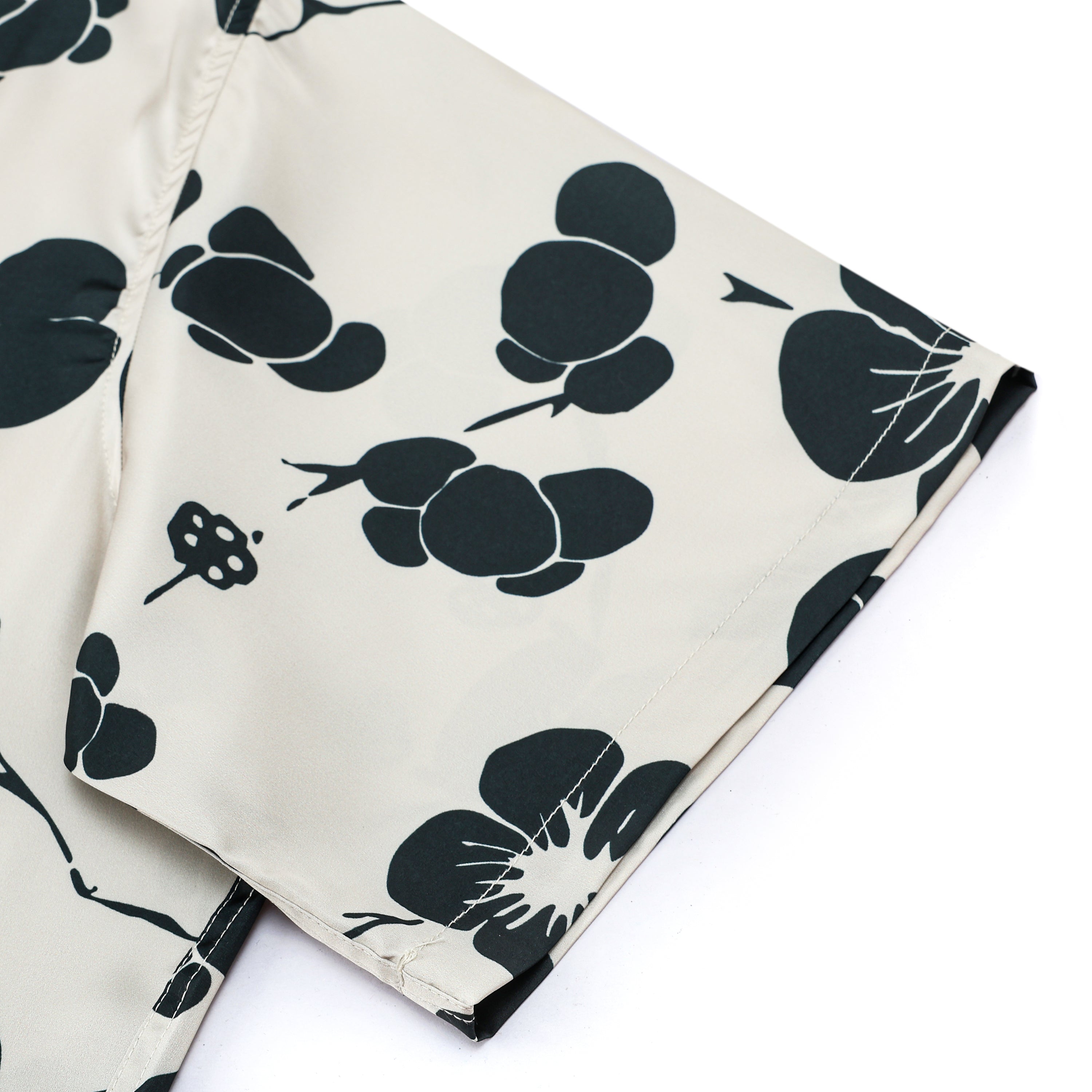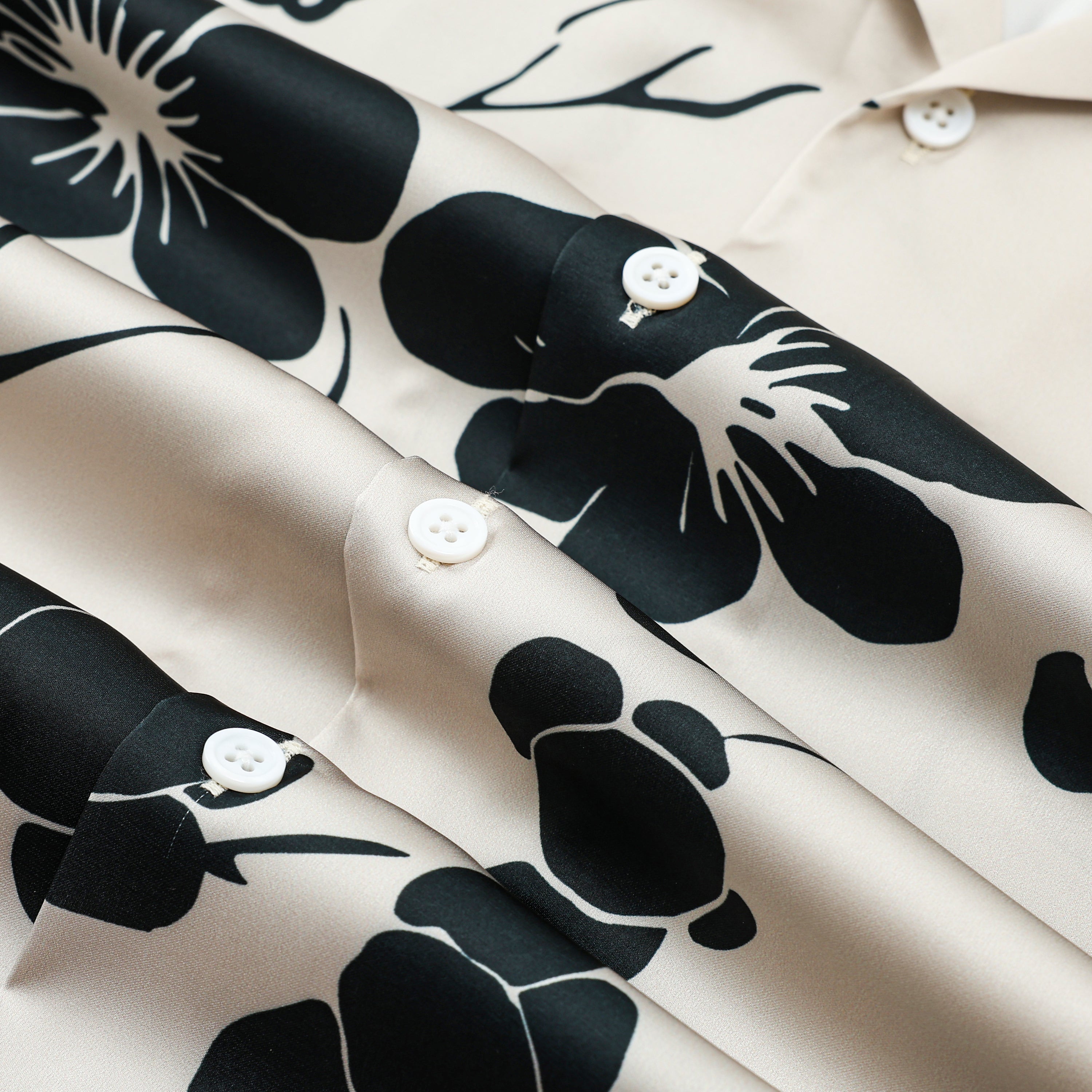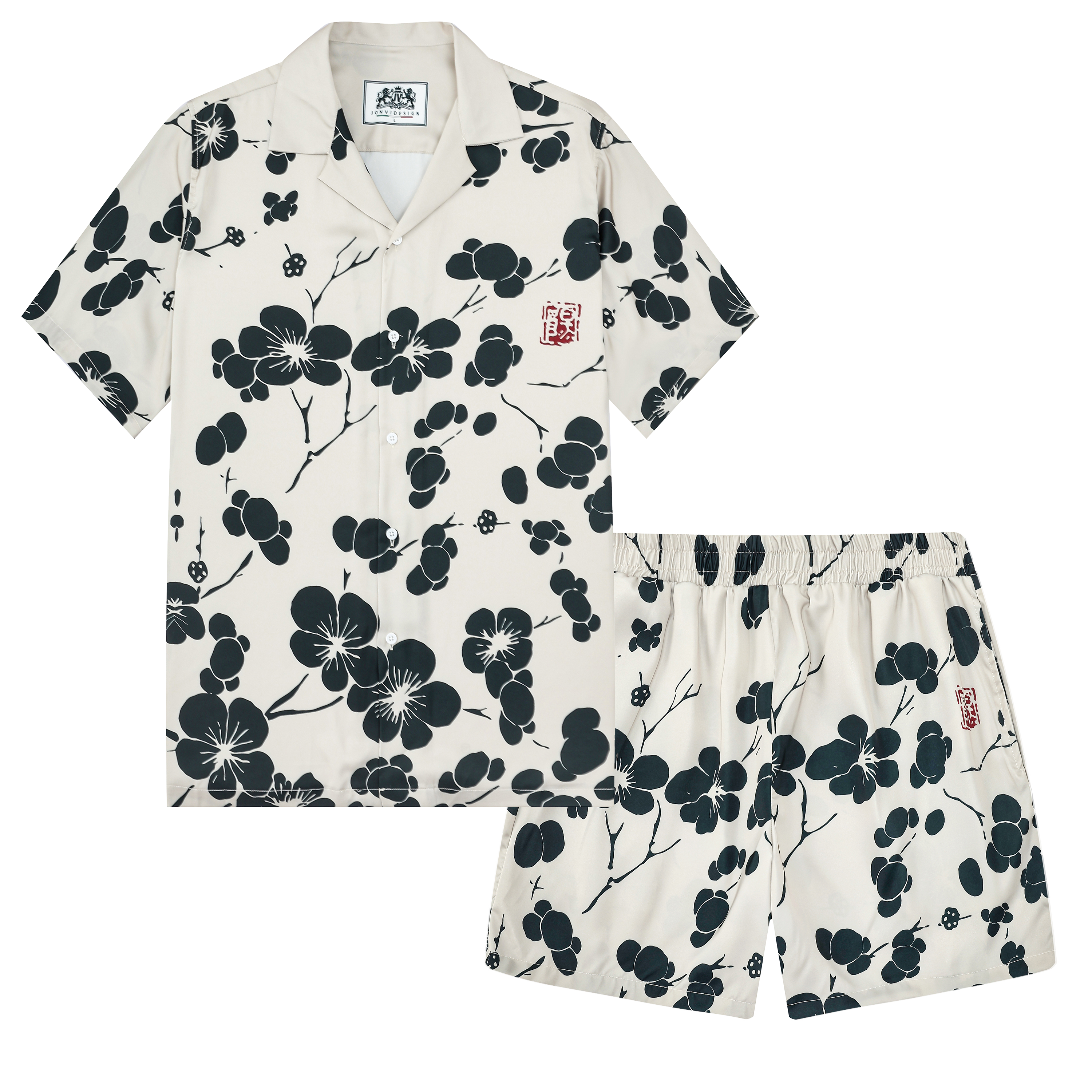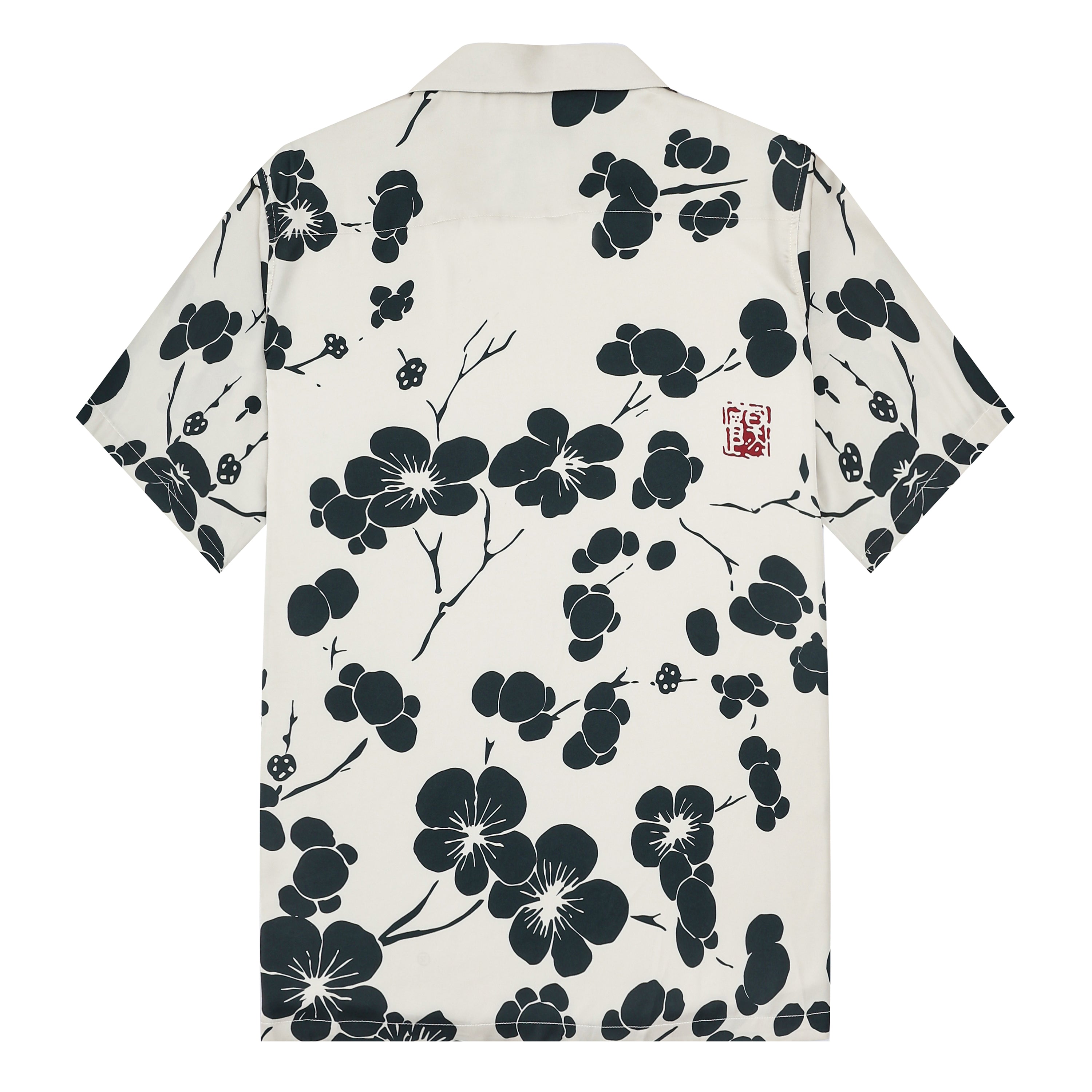 Black Plum Blossom Print Design Camp Collar Short Sleeve Shirt