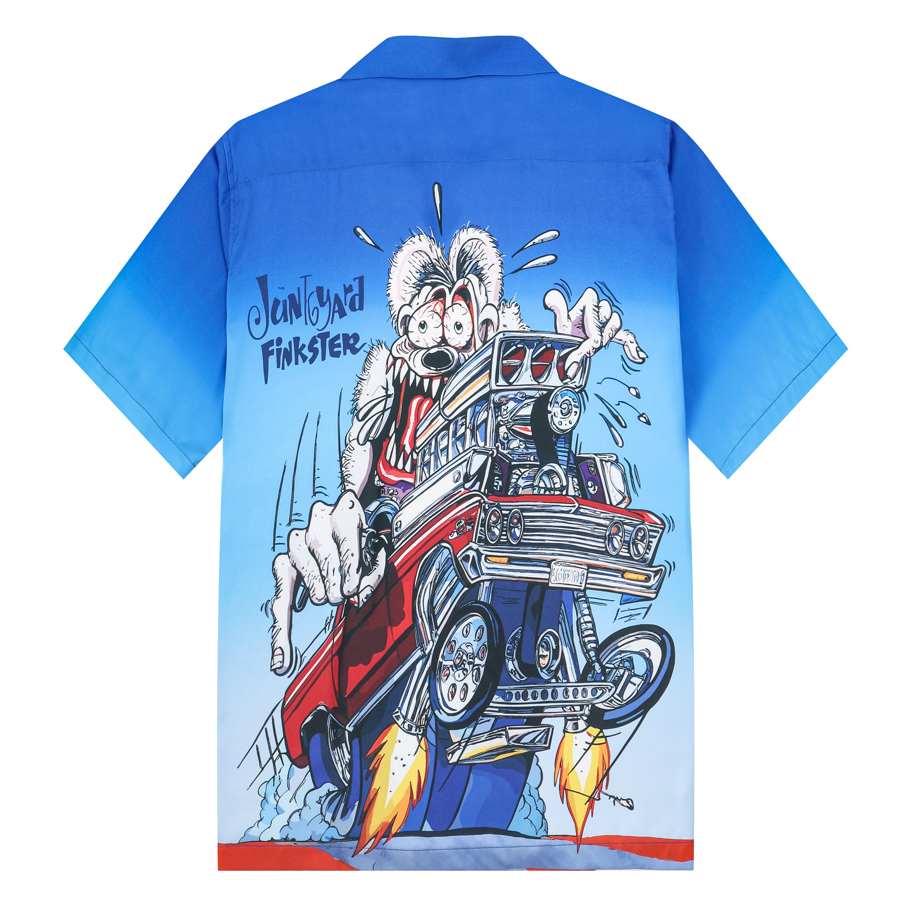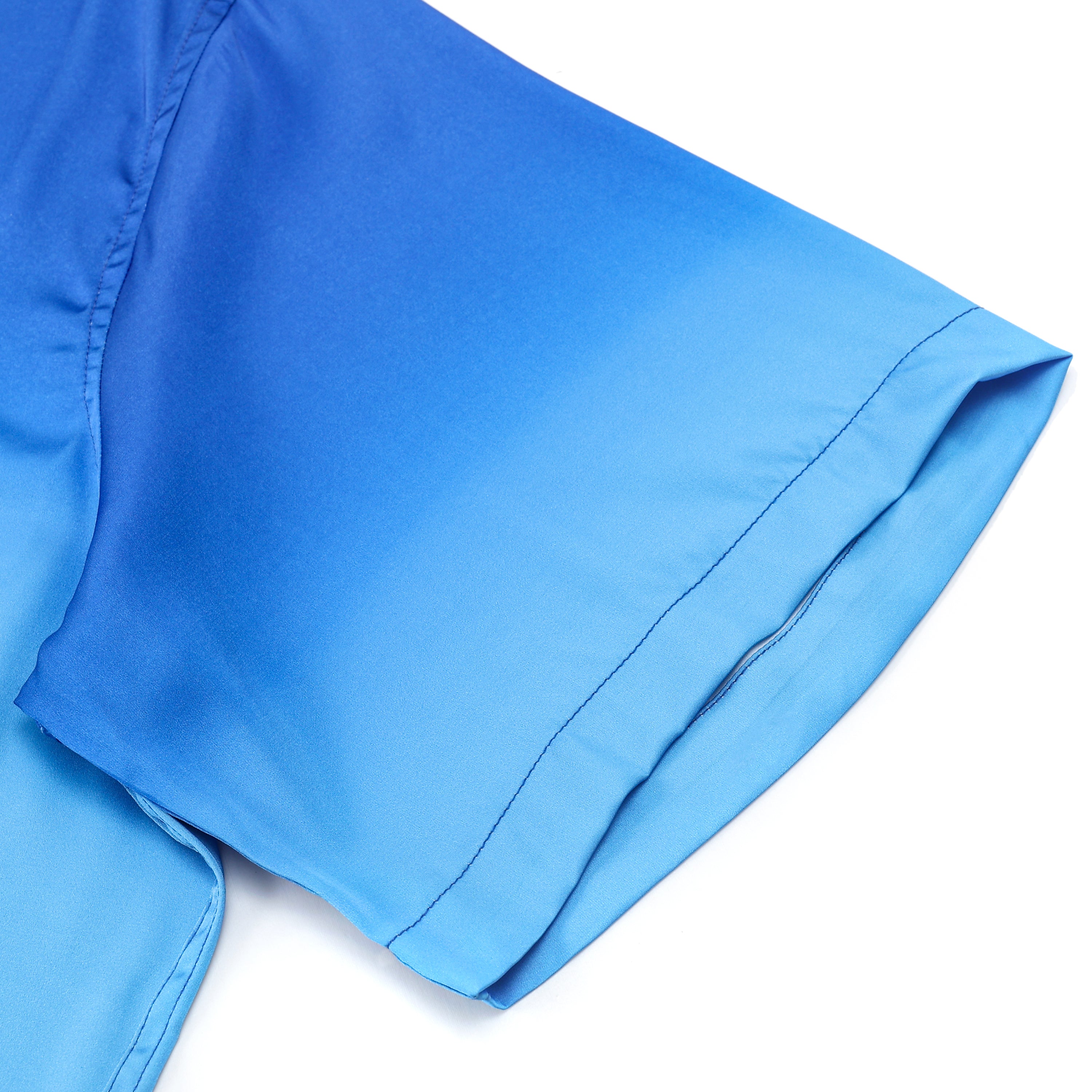 Blue Gradient Mouse Print Camp Collar Short Sleeve Shirt