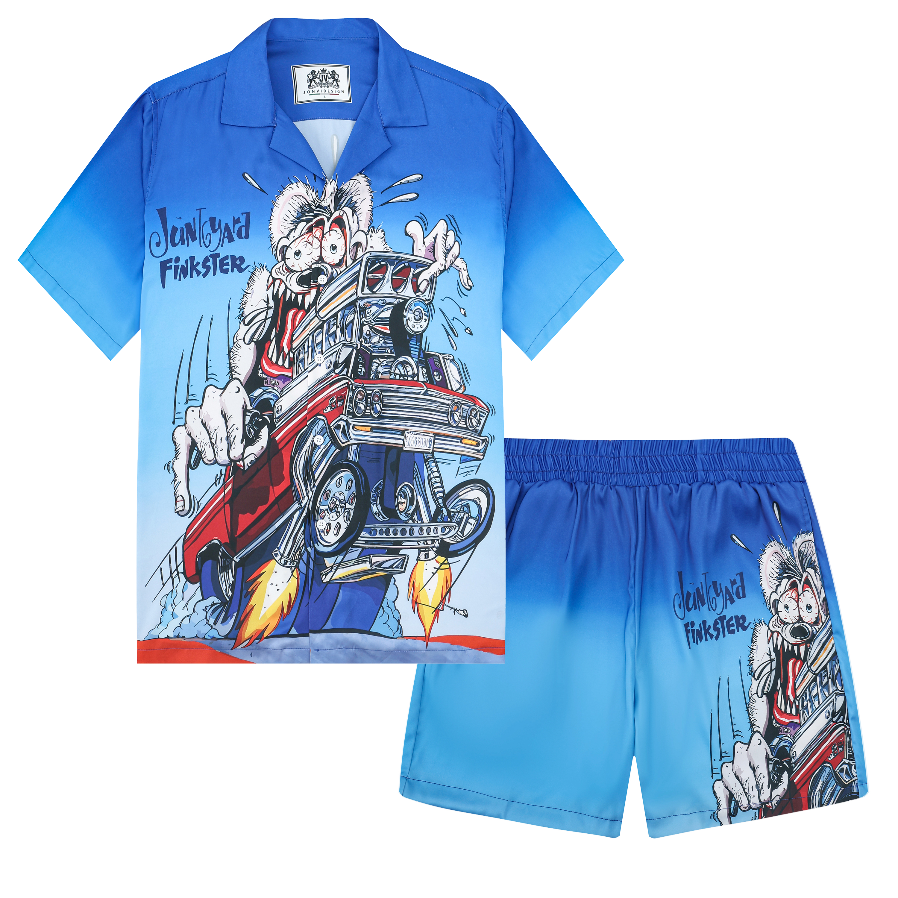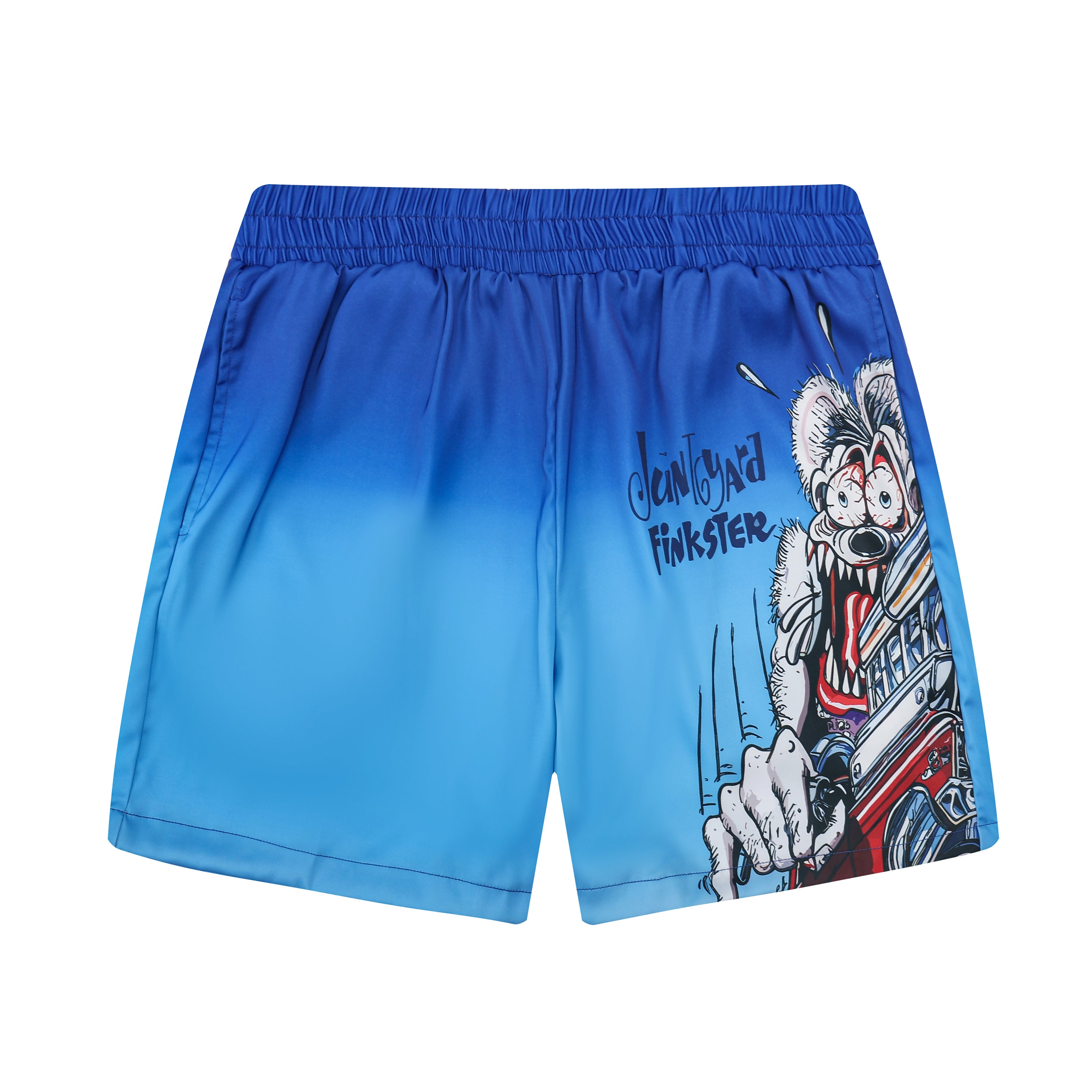 Blue Gradient Mouse Print Elastic Waistband Summer Casual Shorts