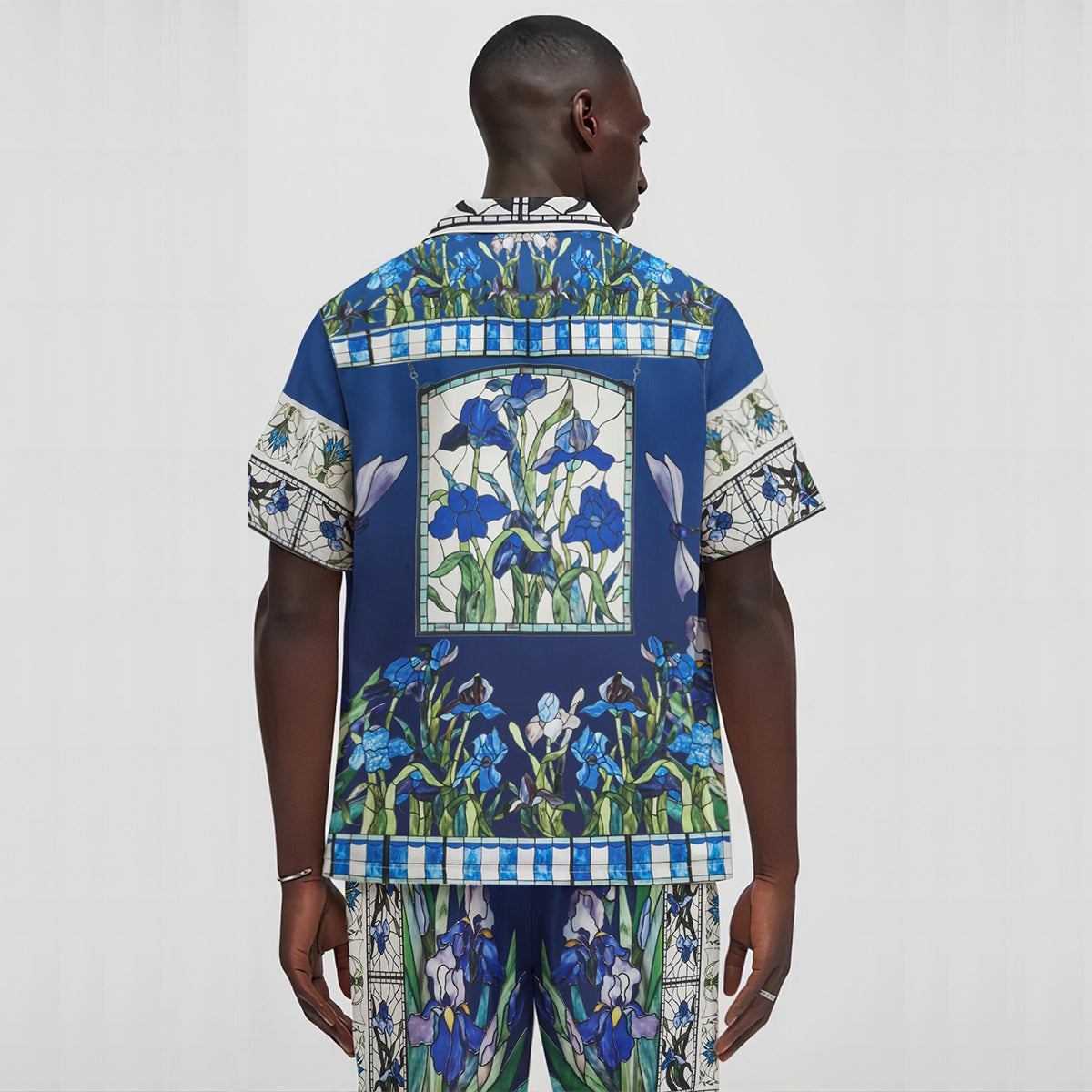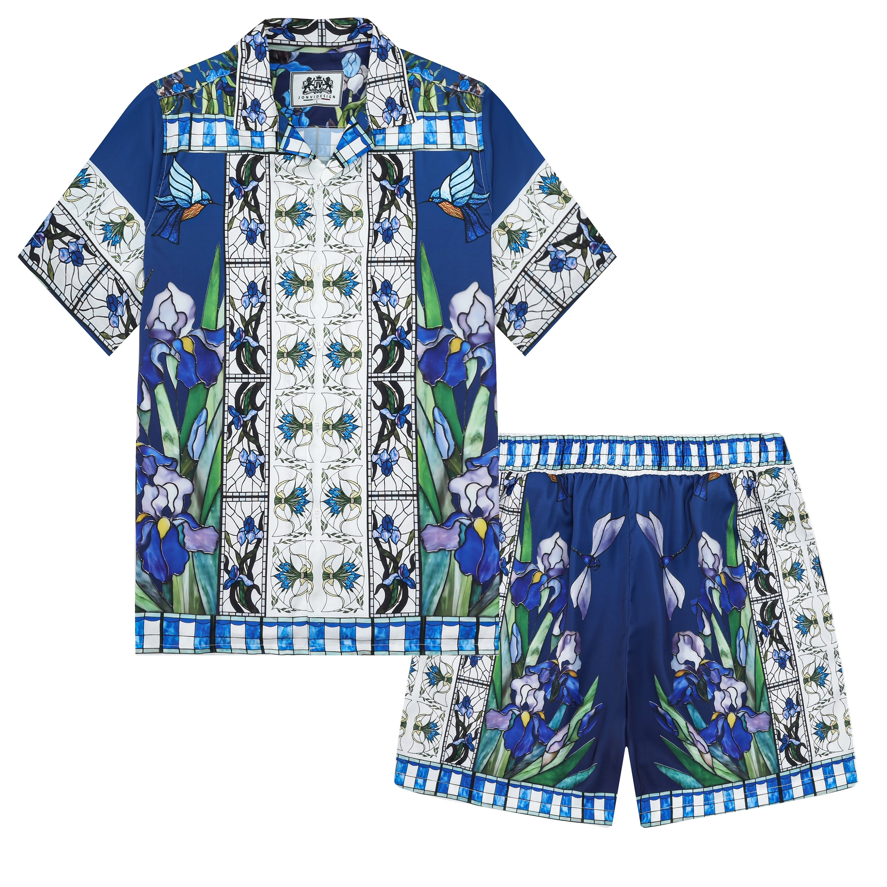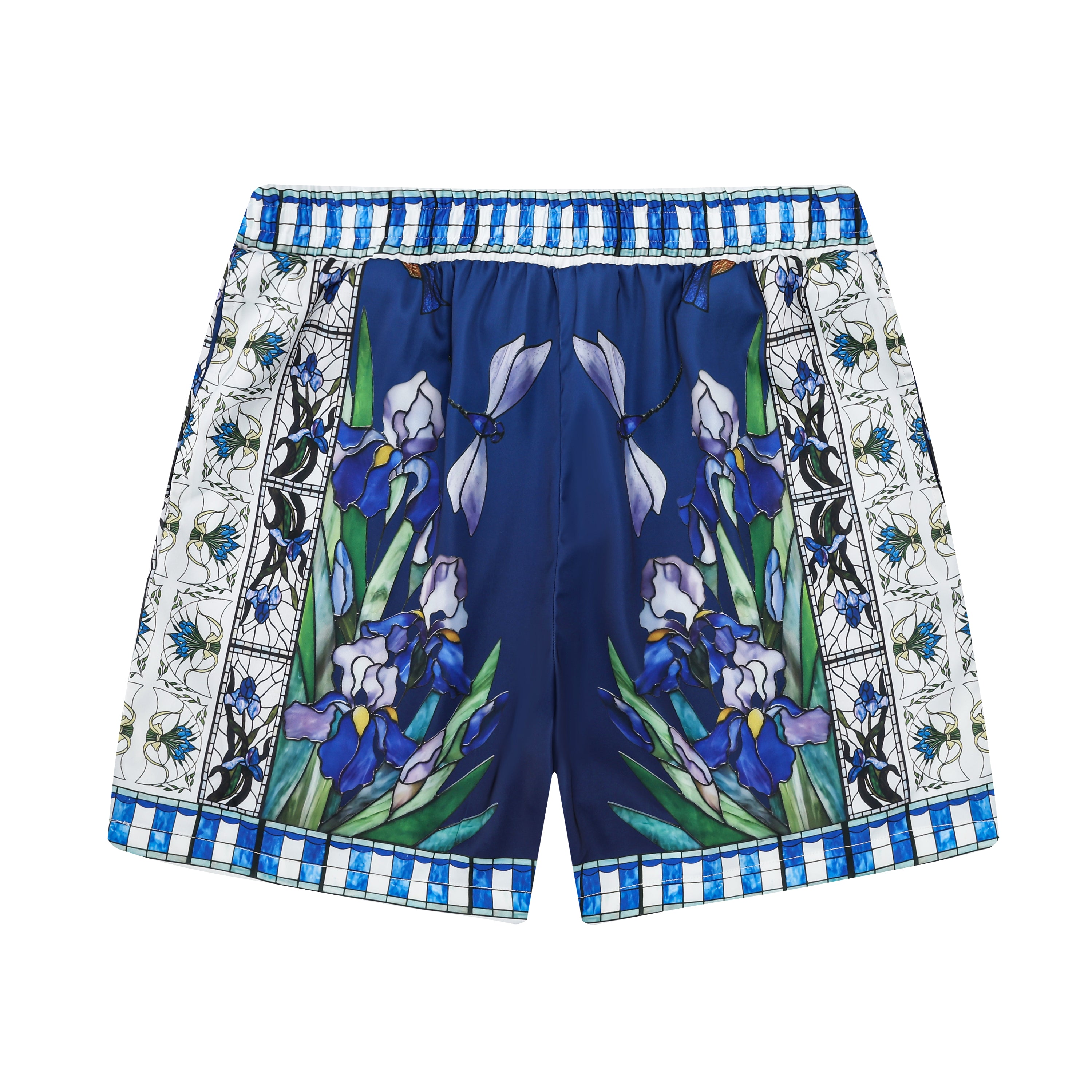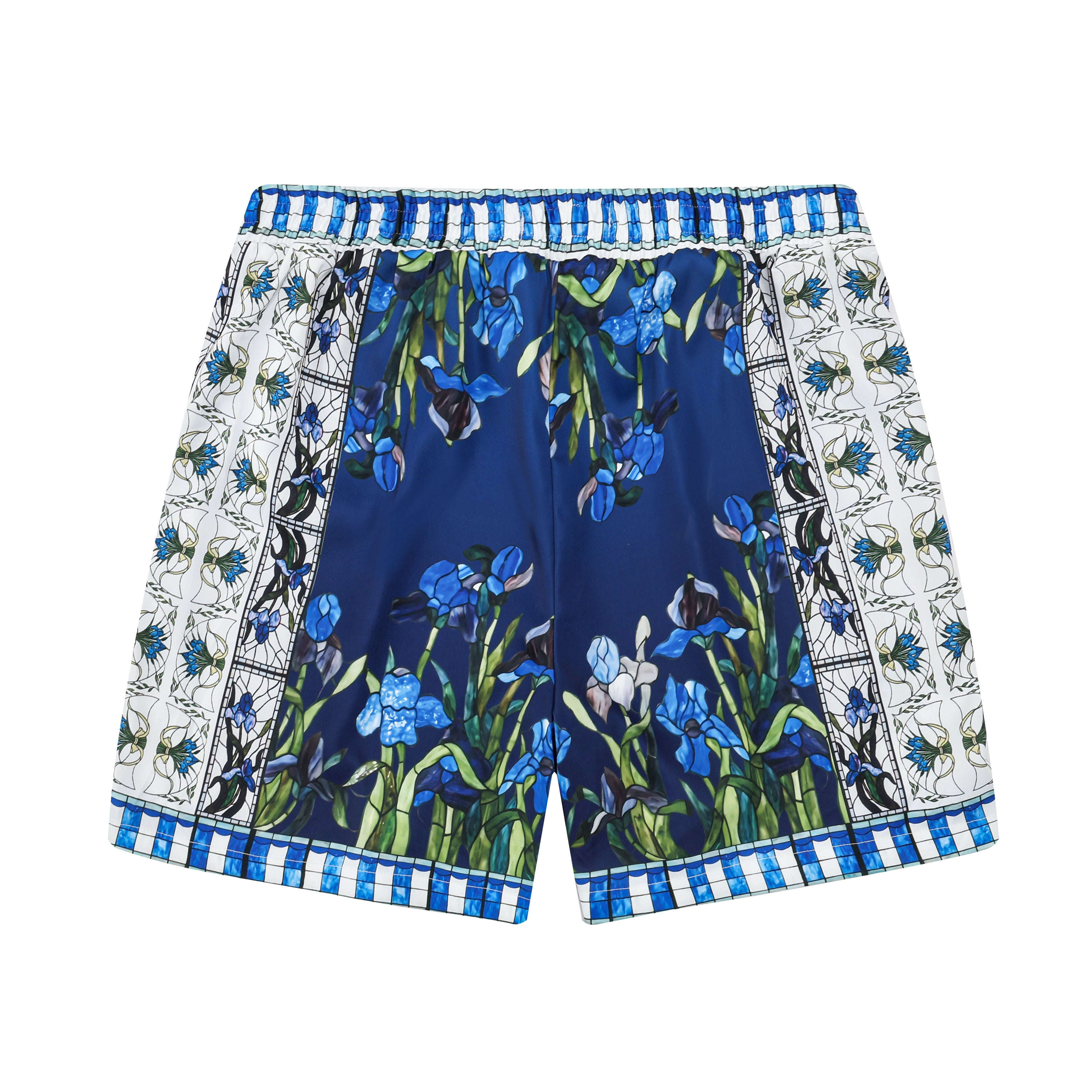 Blue Irises Floral Pattern Silk Fiber Waistband Shorts