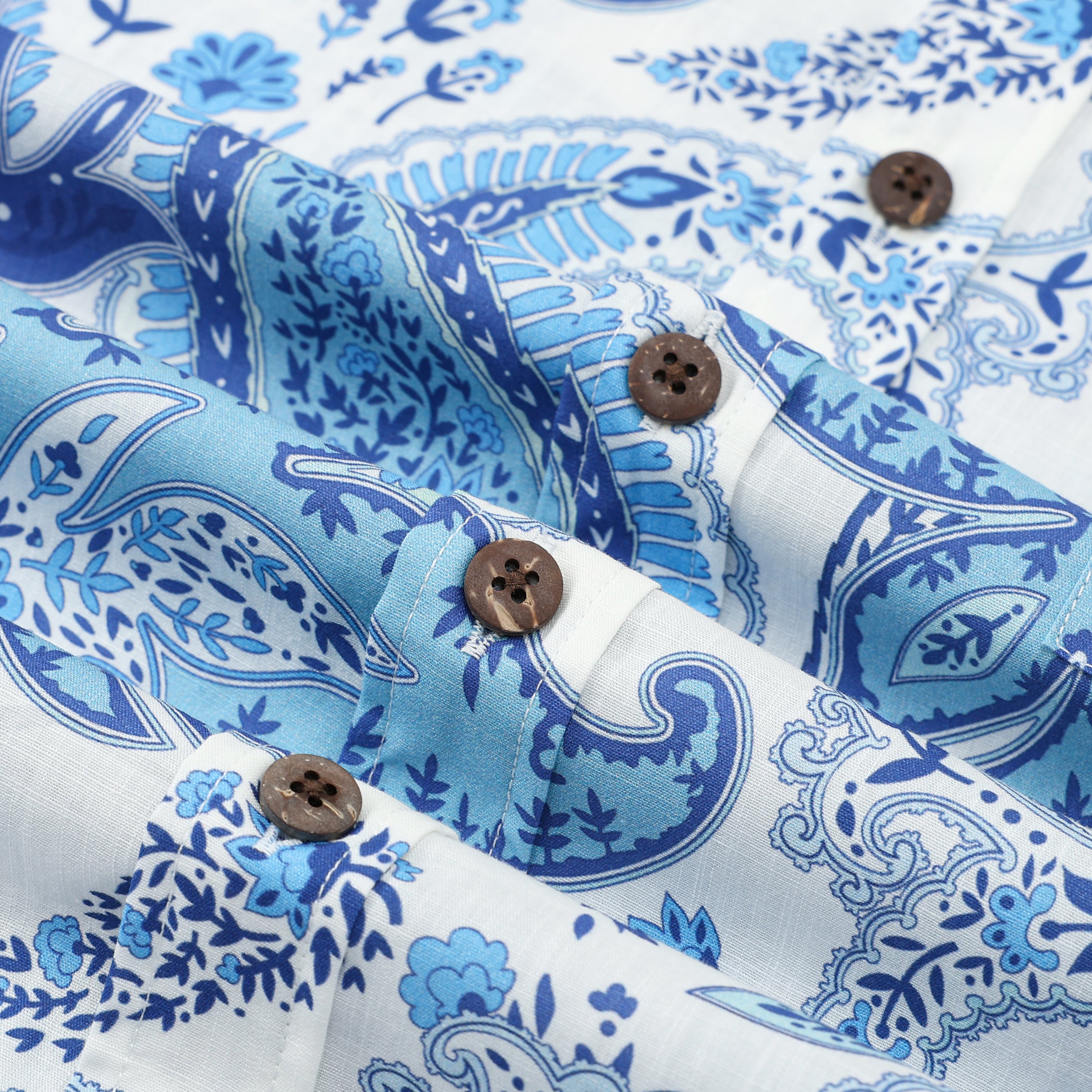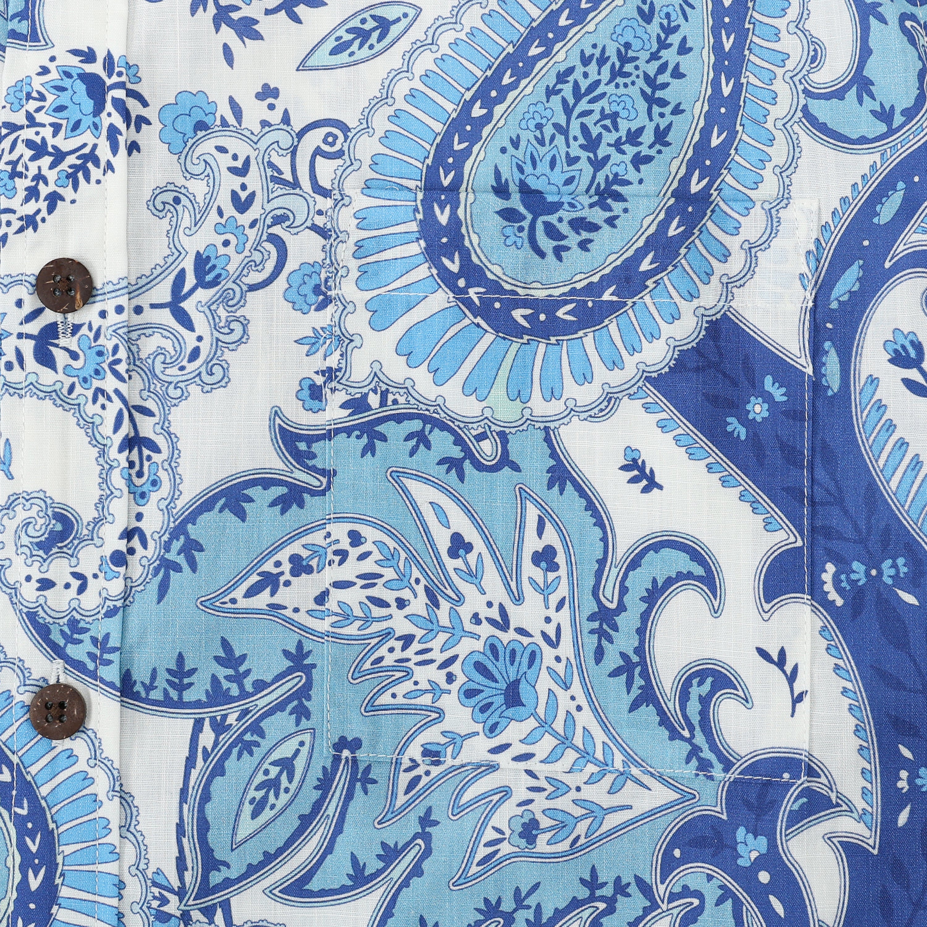 Blue Paisley Pattern Short Sleeve Sports Shirt Festival Wear