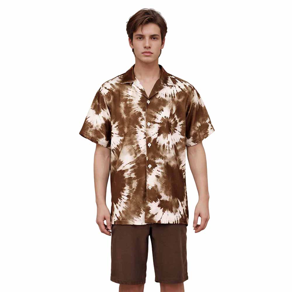 Brown Tie-Dye Camp Collar Short Sleeve Shirt
