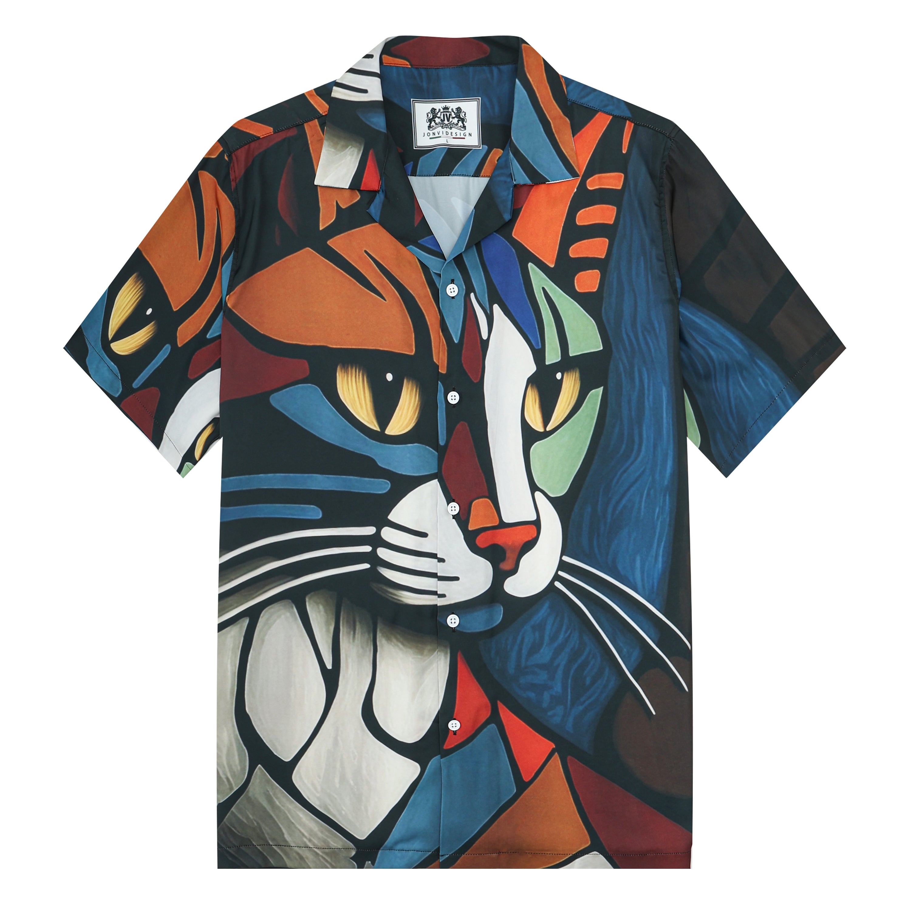 Cat Print Camp Collar Casual Shirt for Men