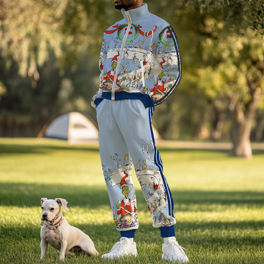 Christmas Party Print Zip Up Track Suit Top