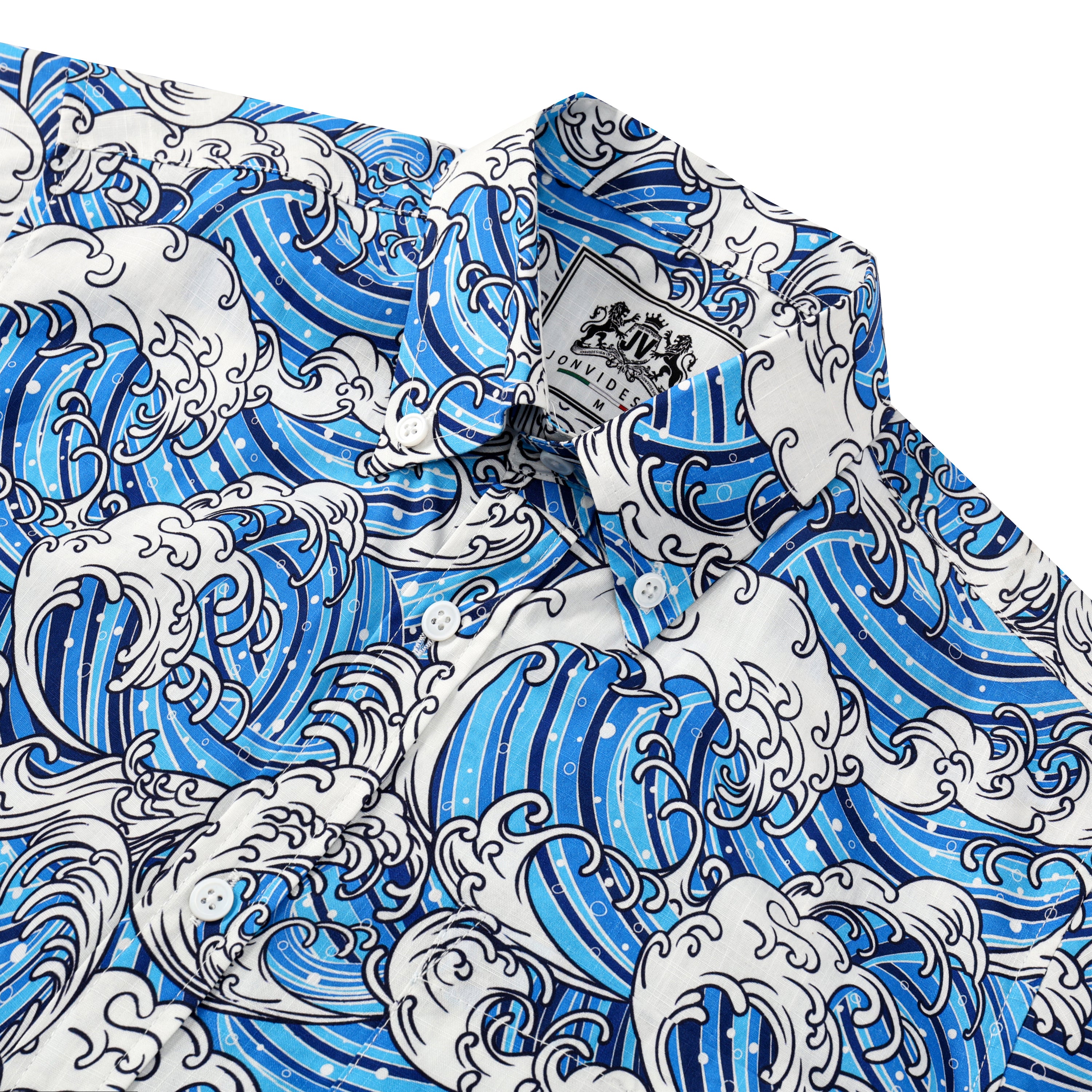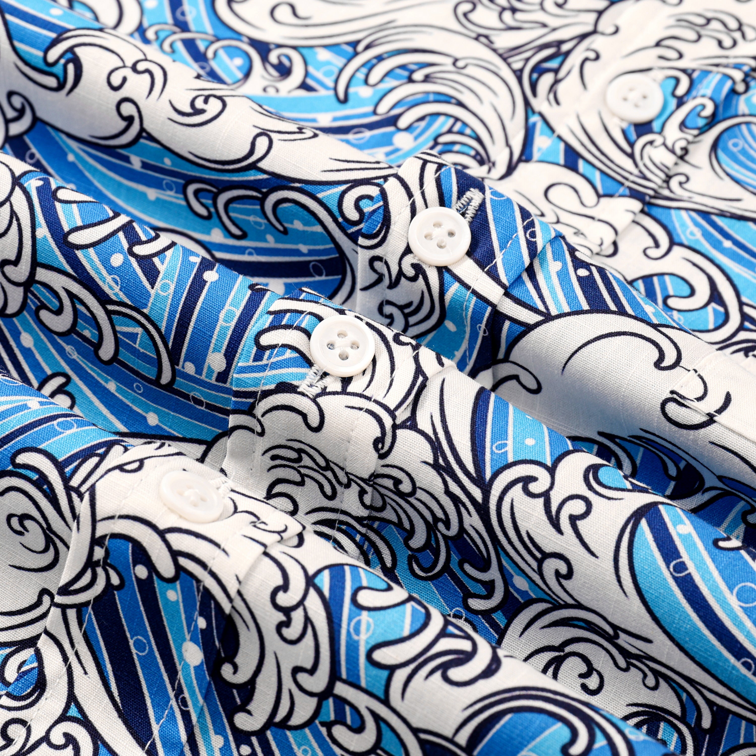 Cloud Wave Pattern Button Short Sleeve Shirt