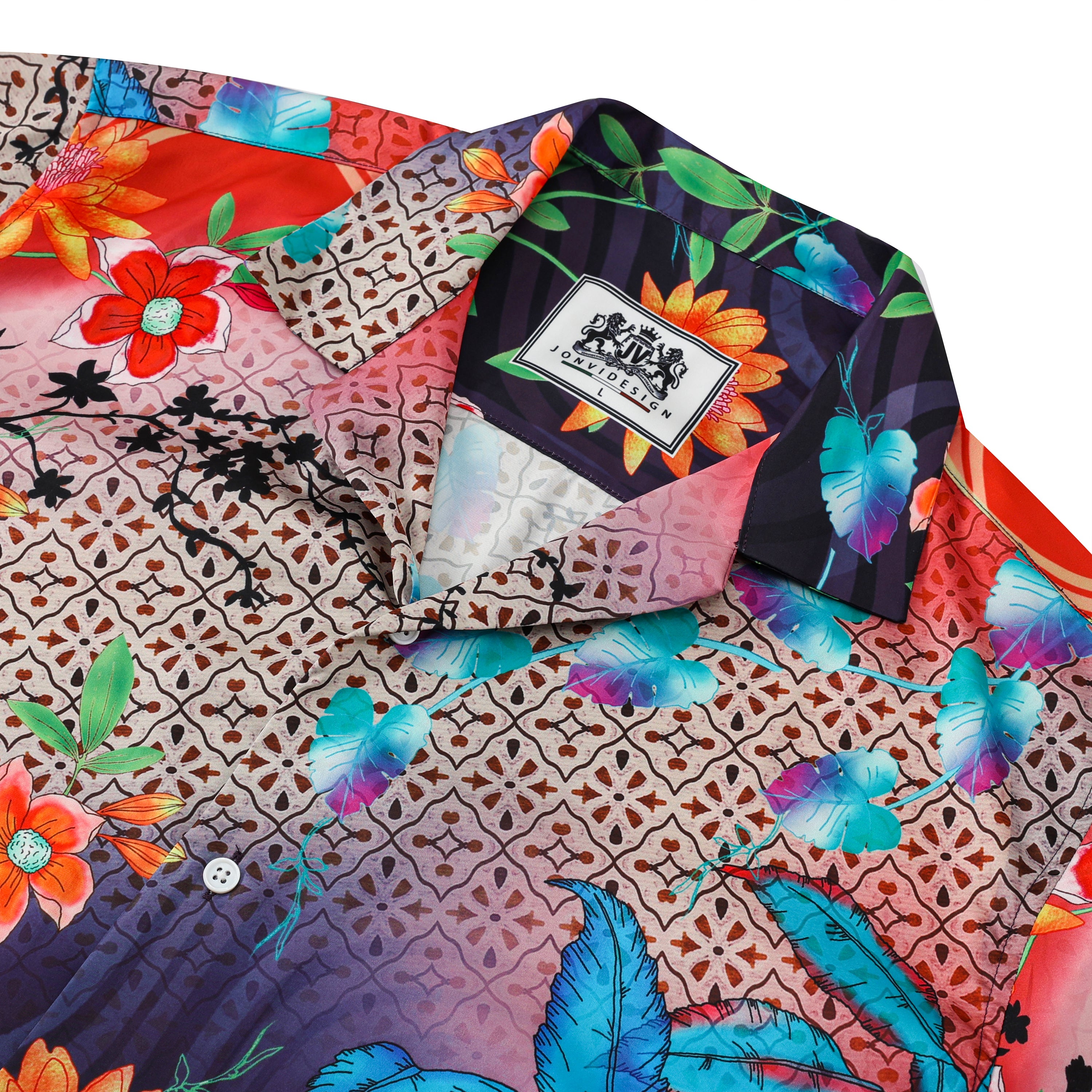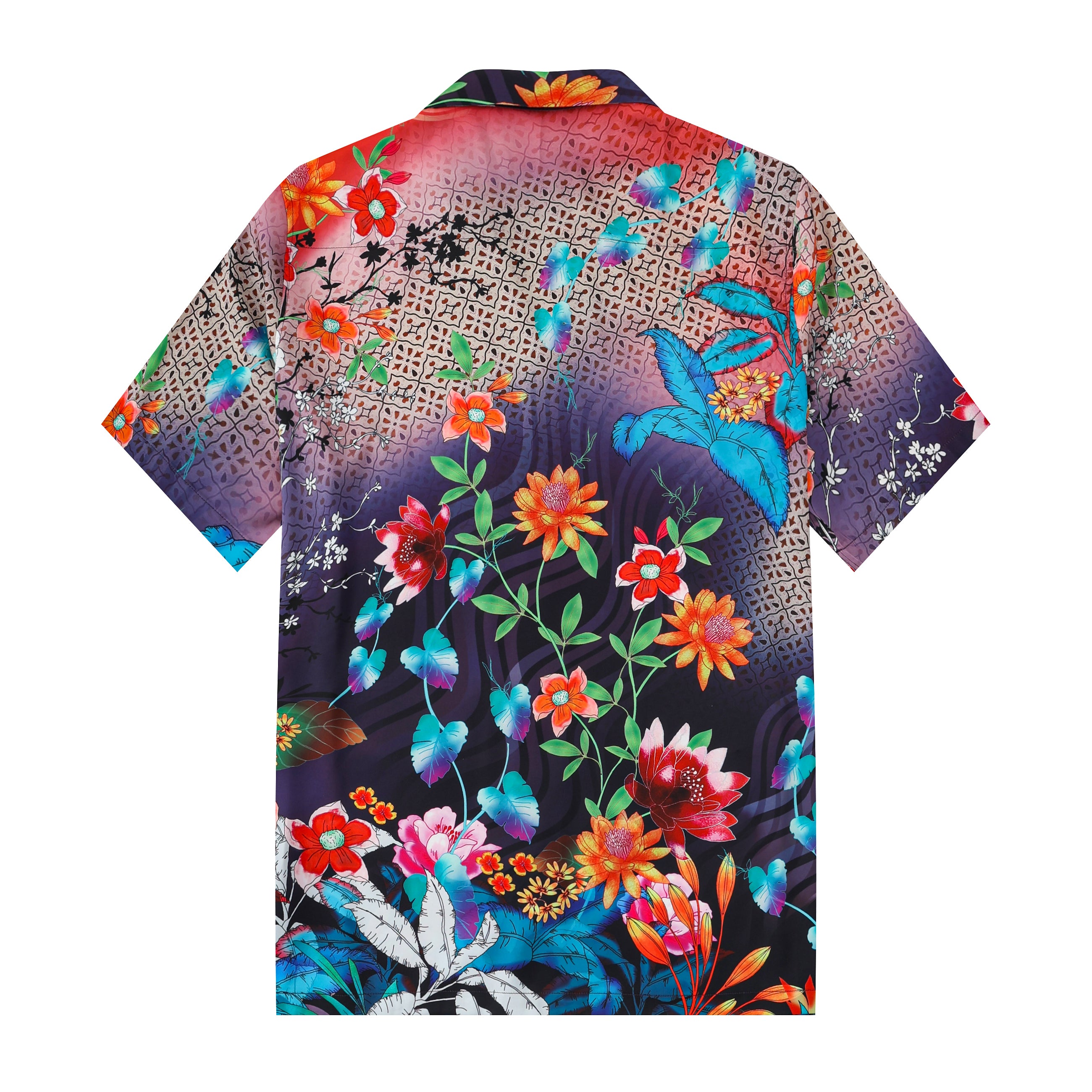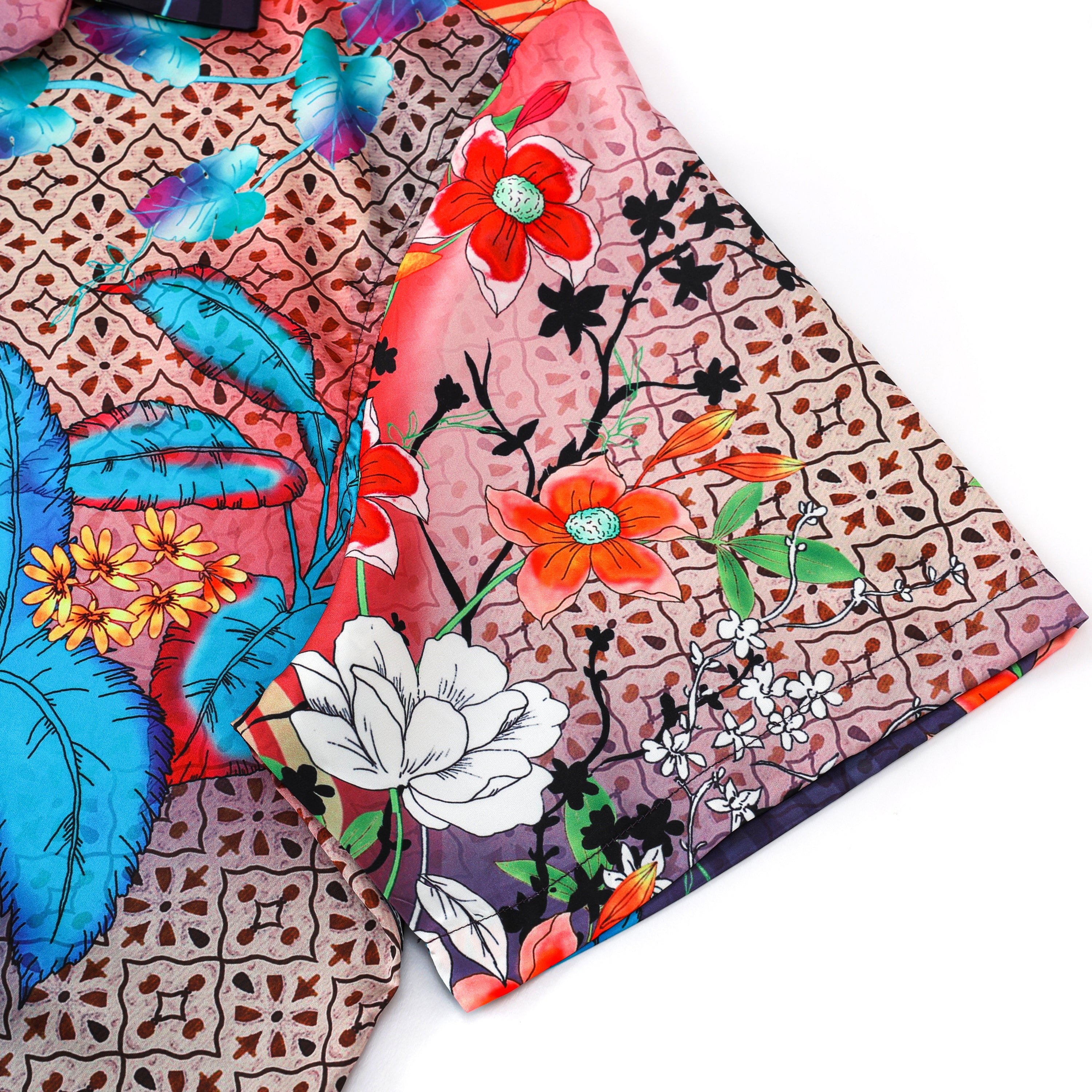 Colorful Floral Pattern Short Sleeve Camp Collar Casual Shirt