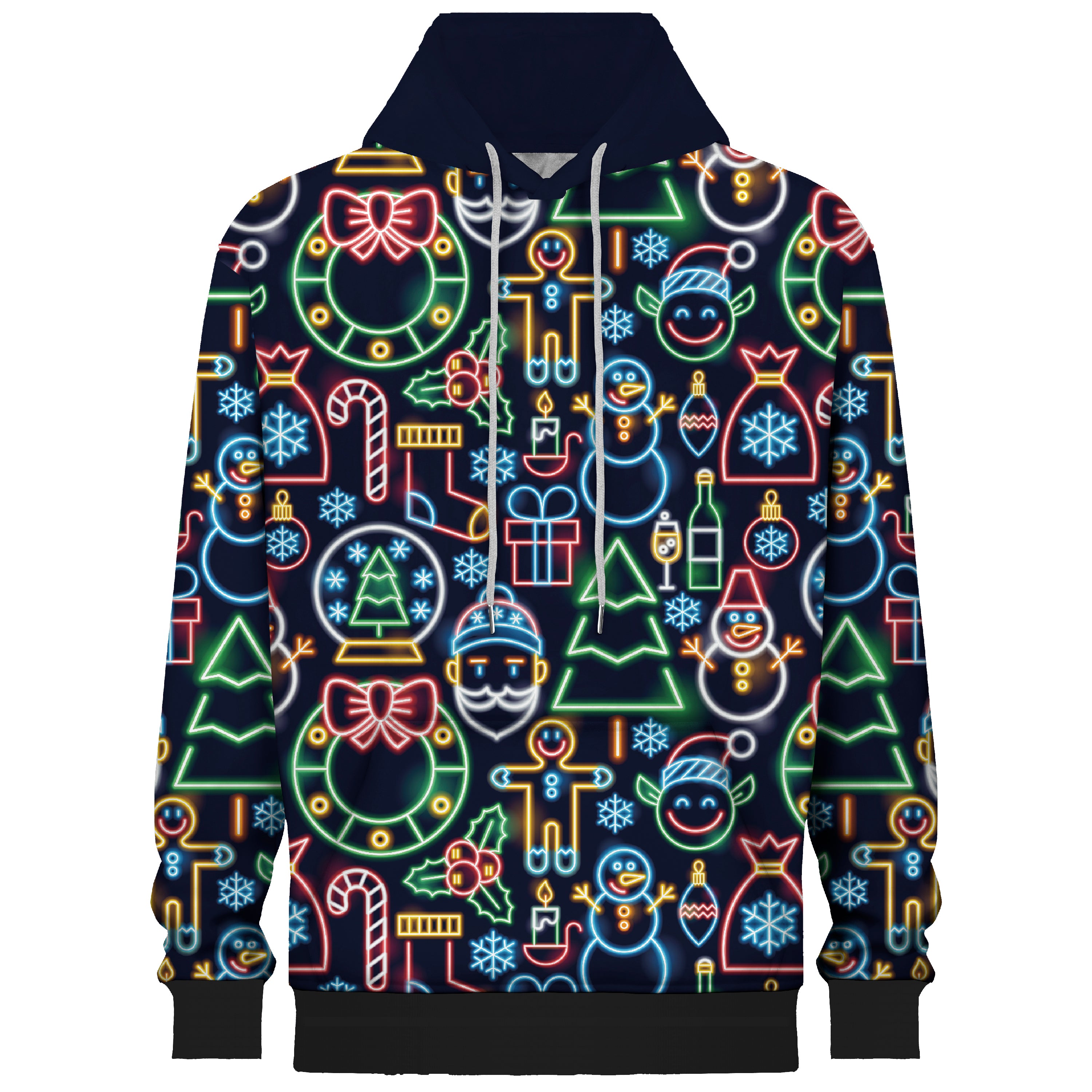 Colorful Light Christmas Print Hooded Sweatshirt