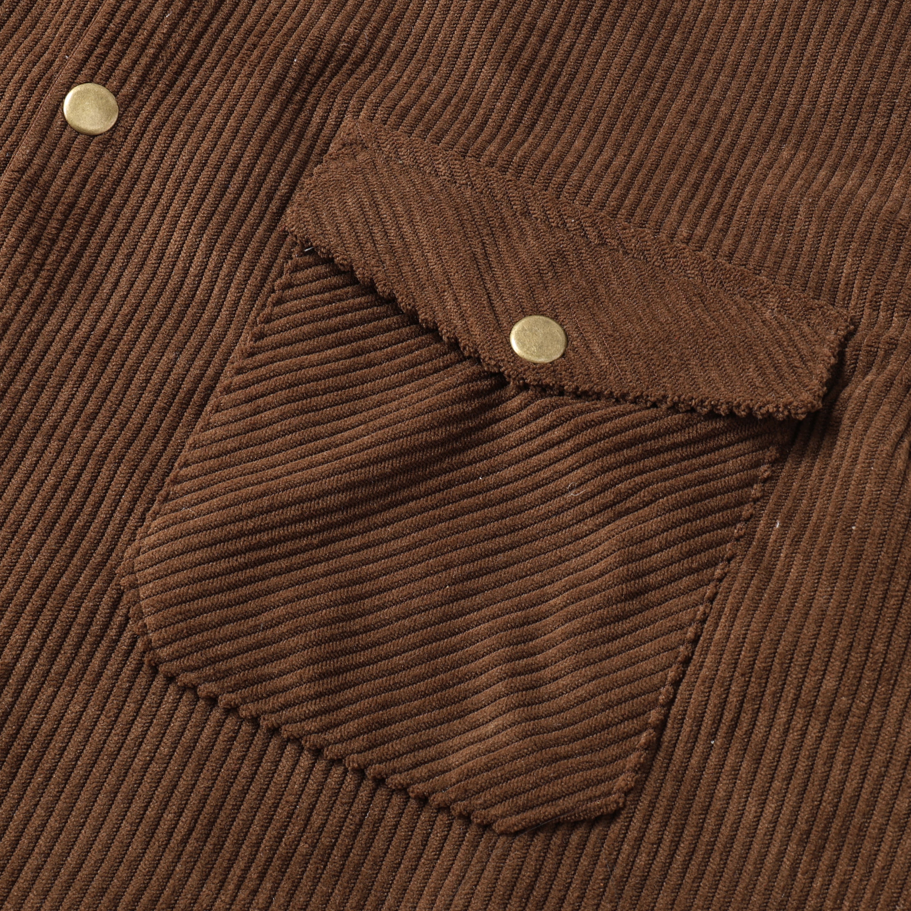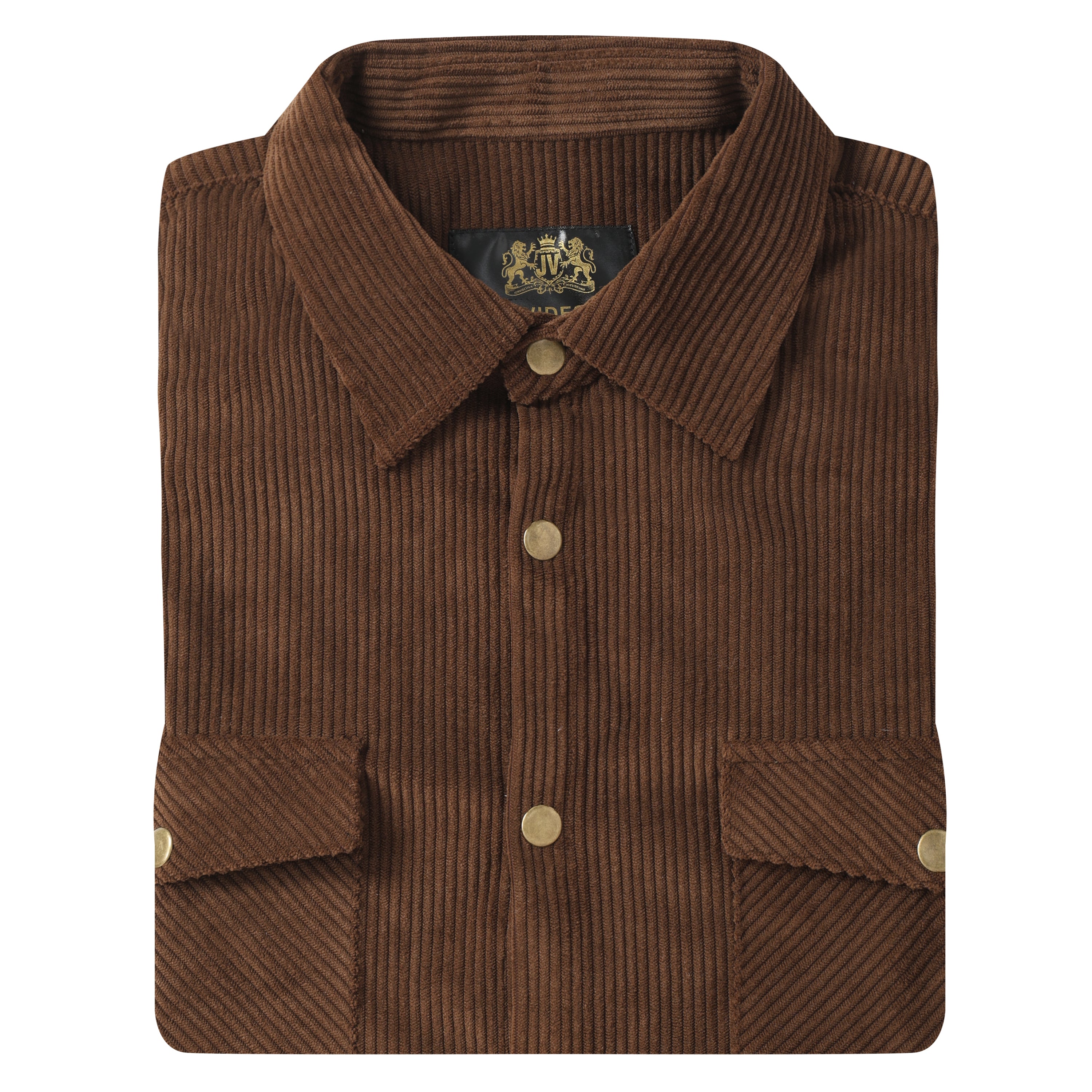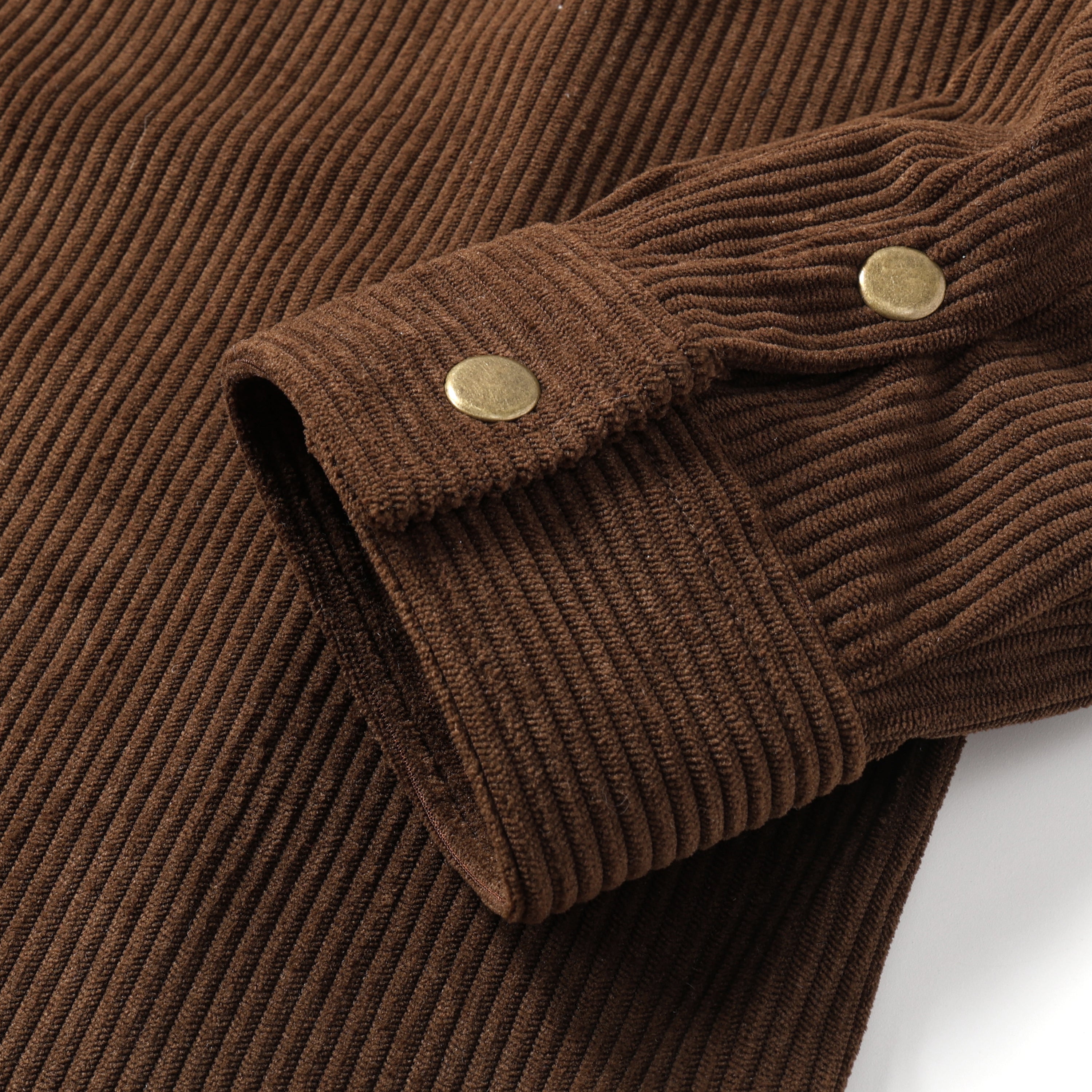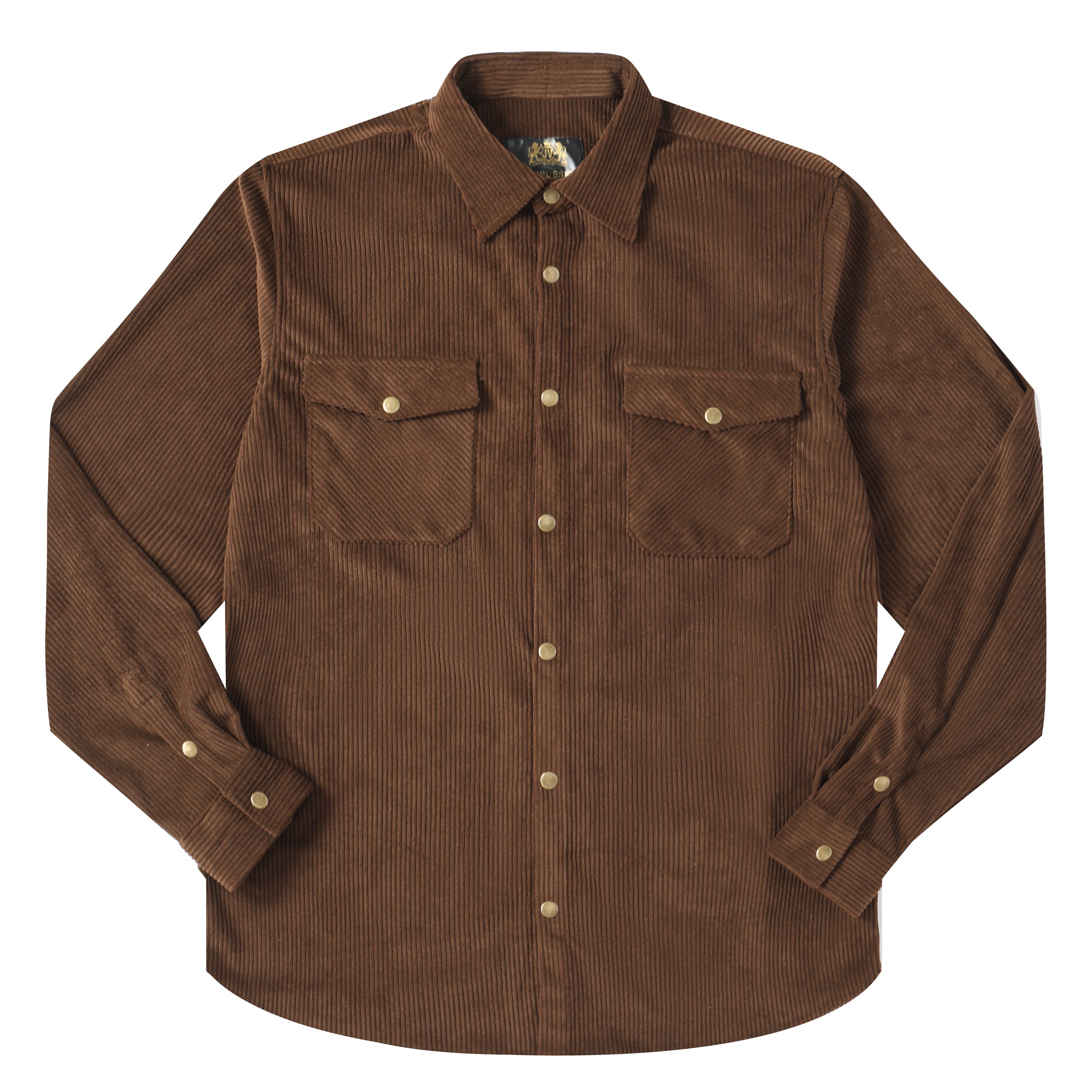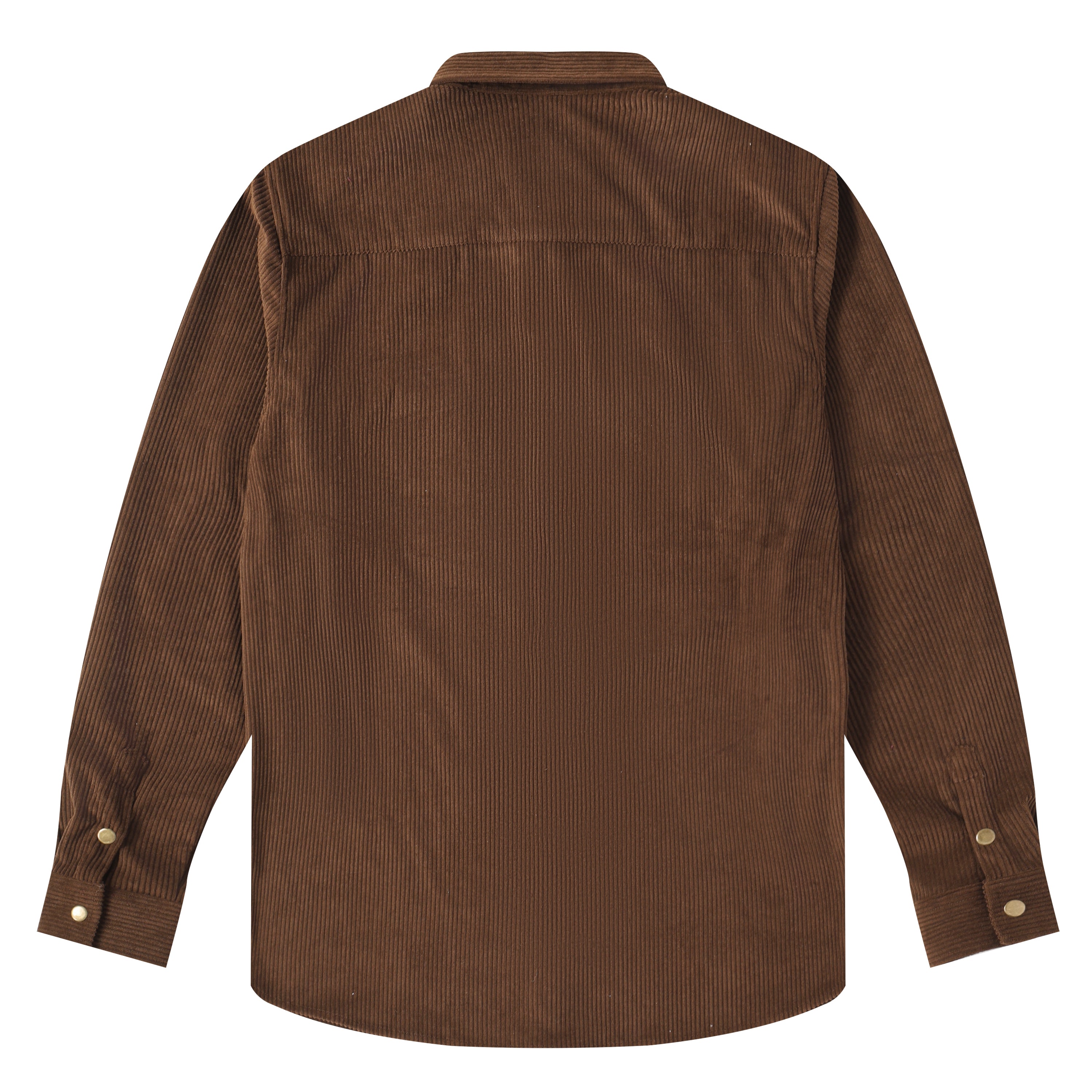 Corduroy Plain Color Snap Closure Long Sleeve Shirt-Brown