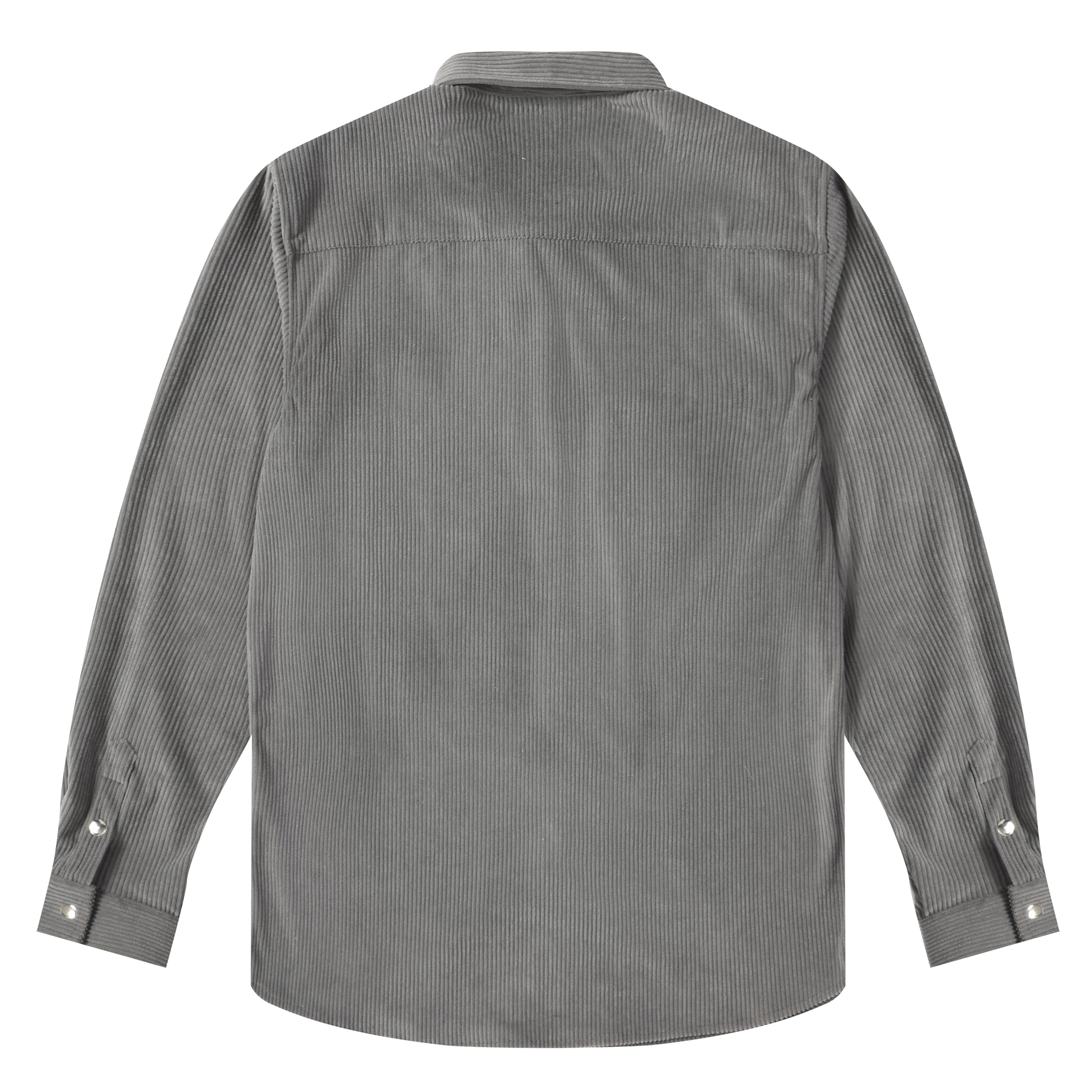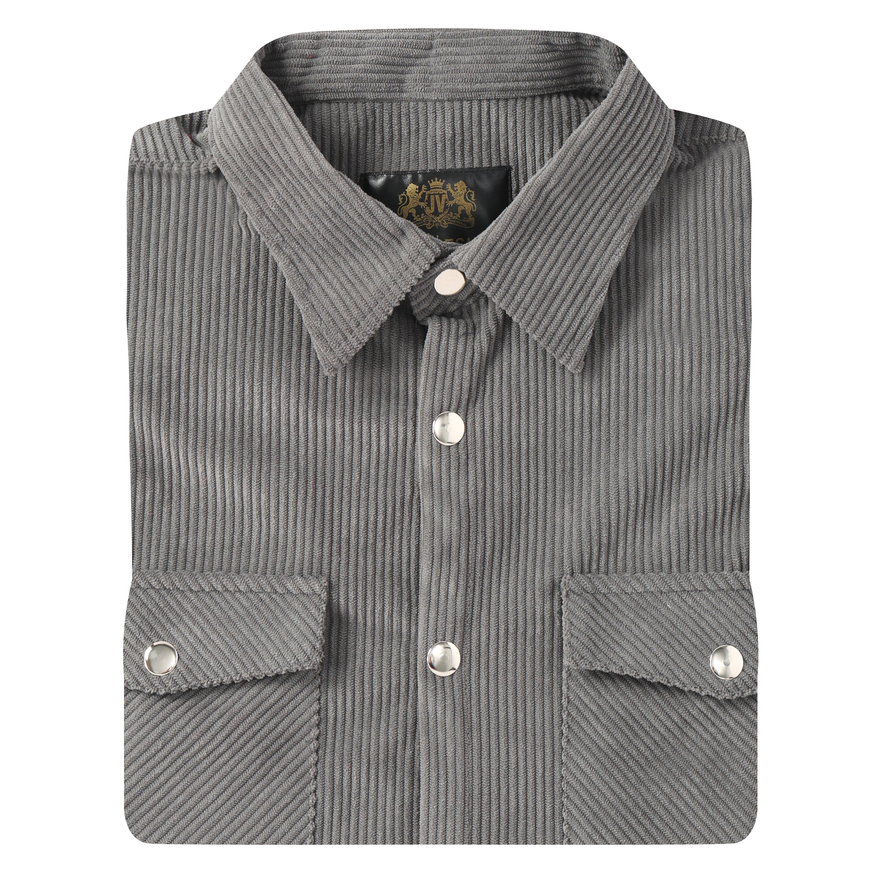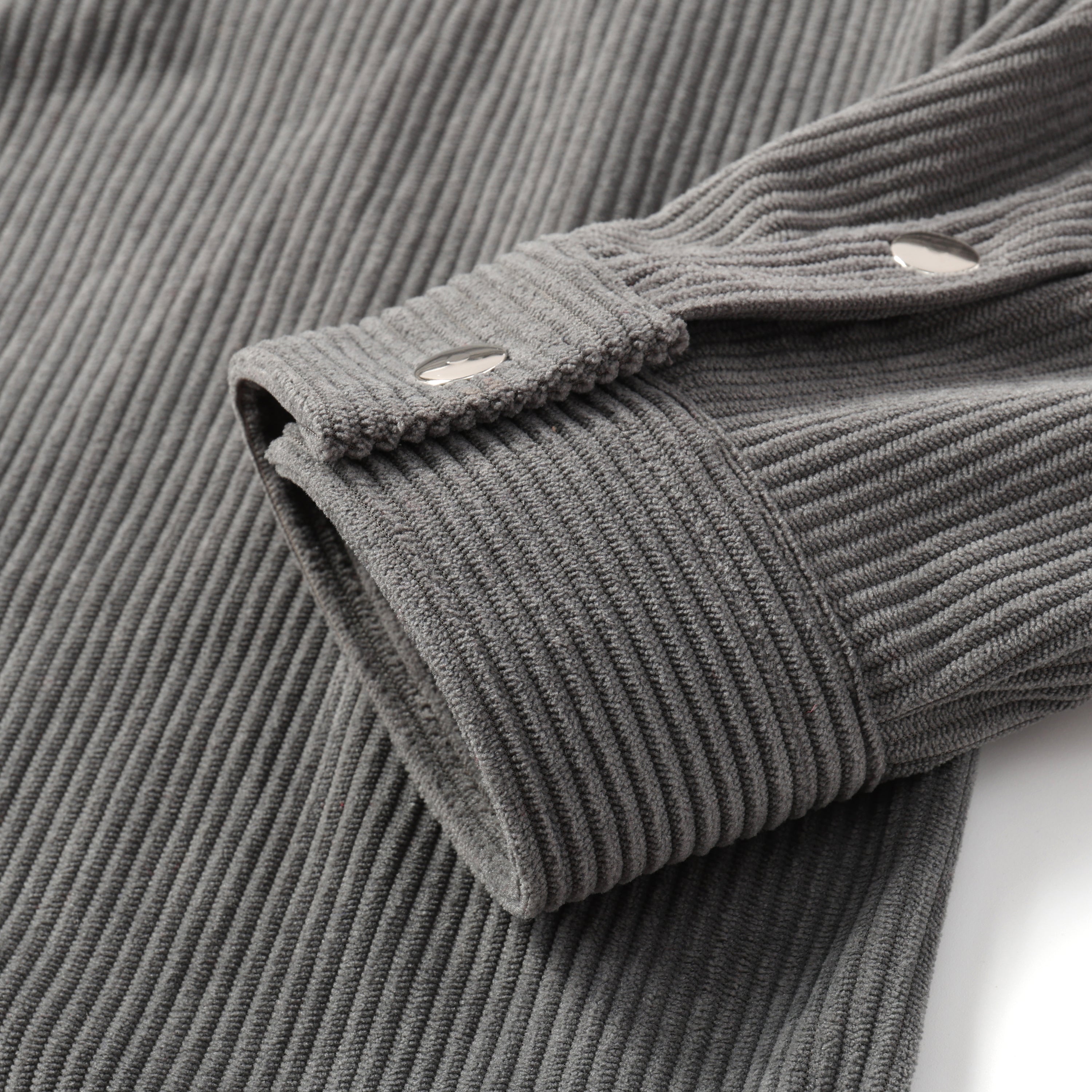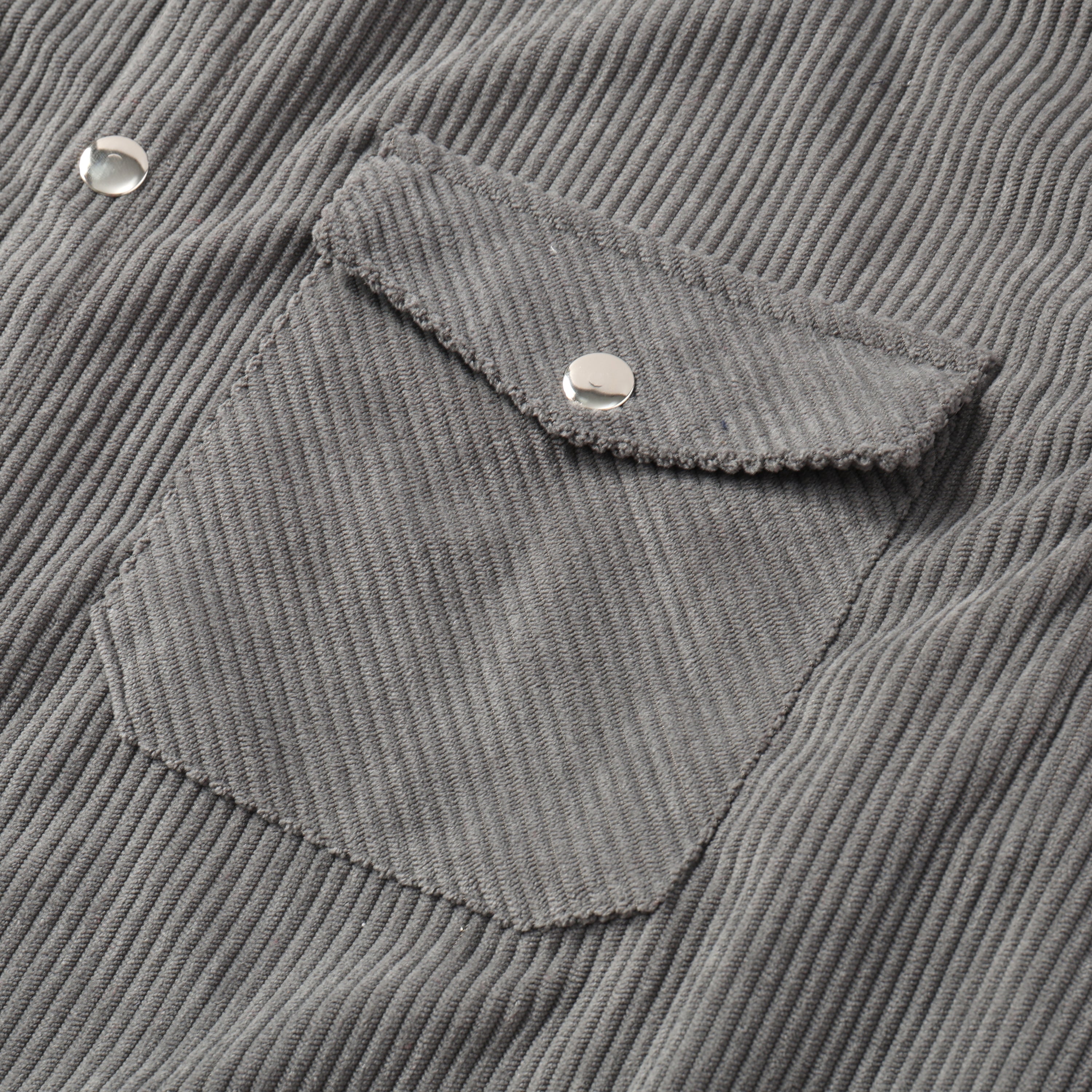Corduroy Plain Color Snap Closure Long Sleeve Shirt-Grey