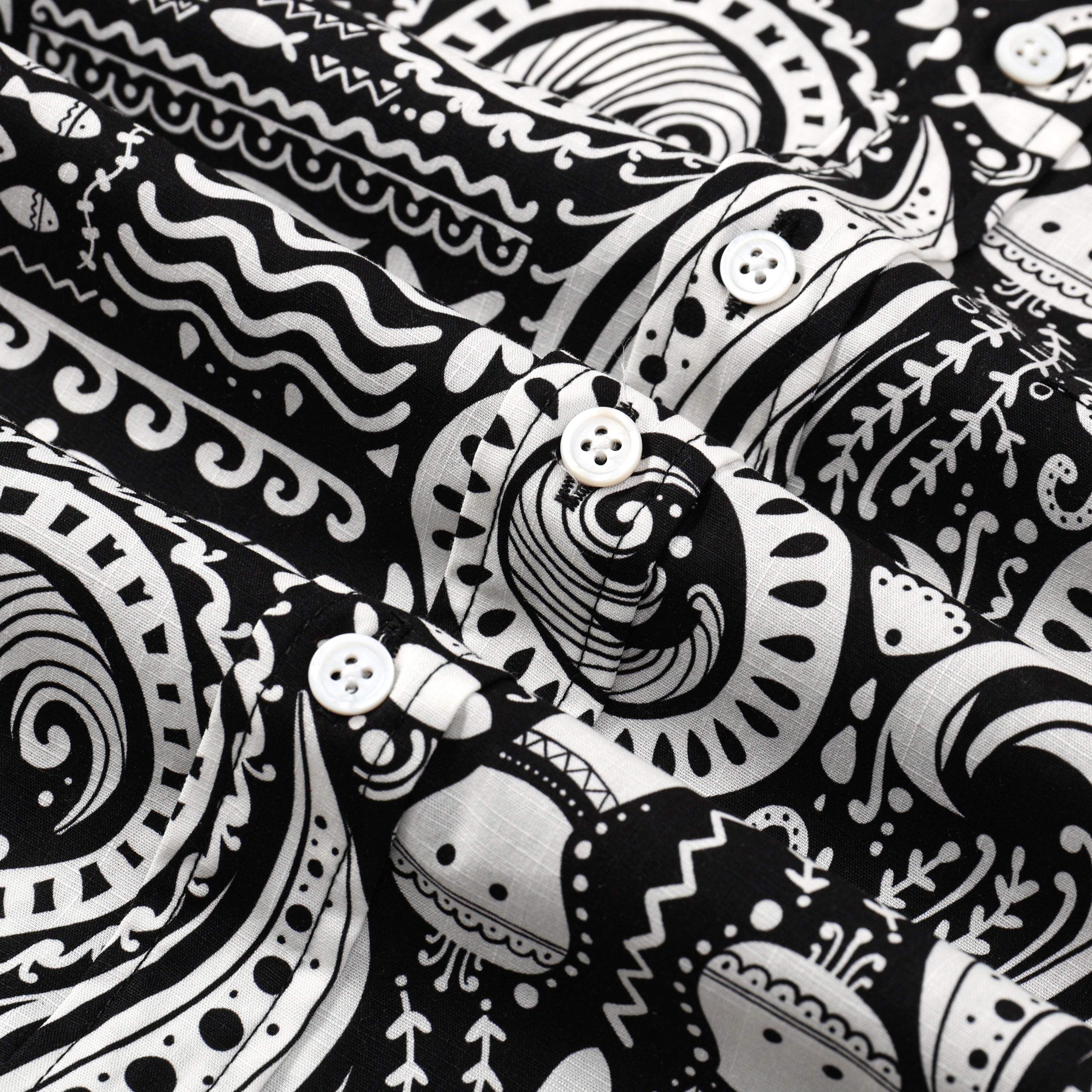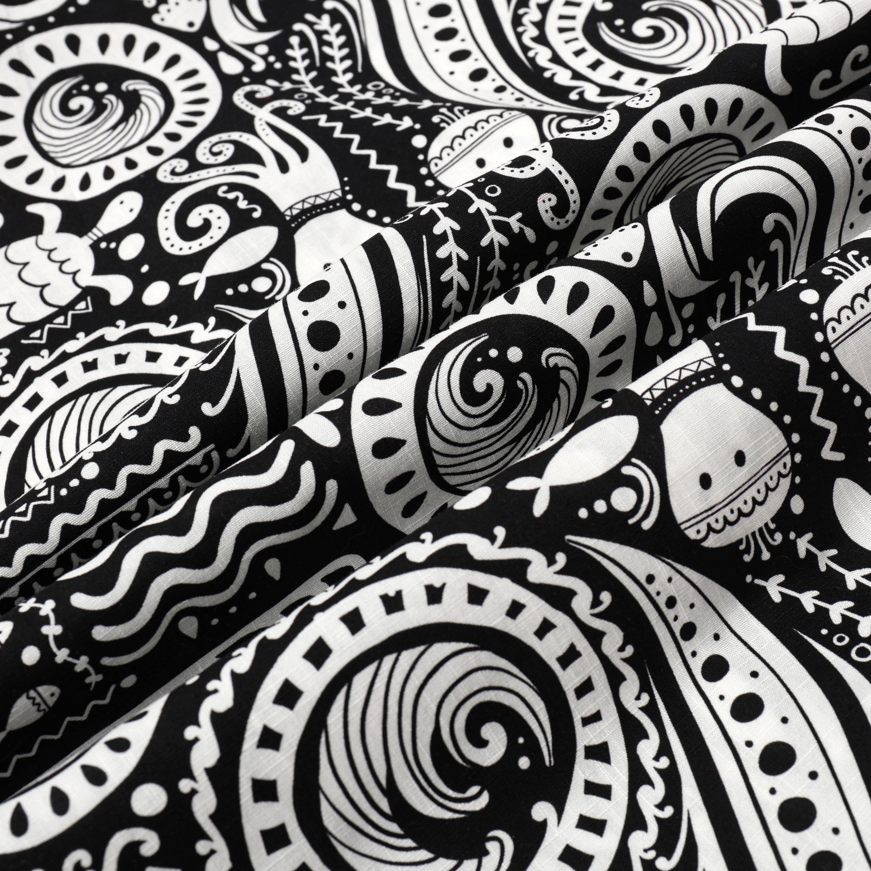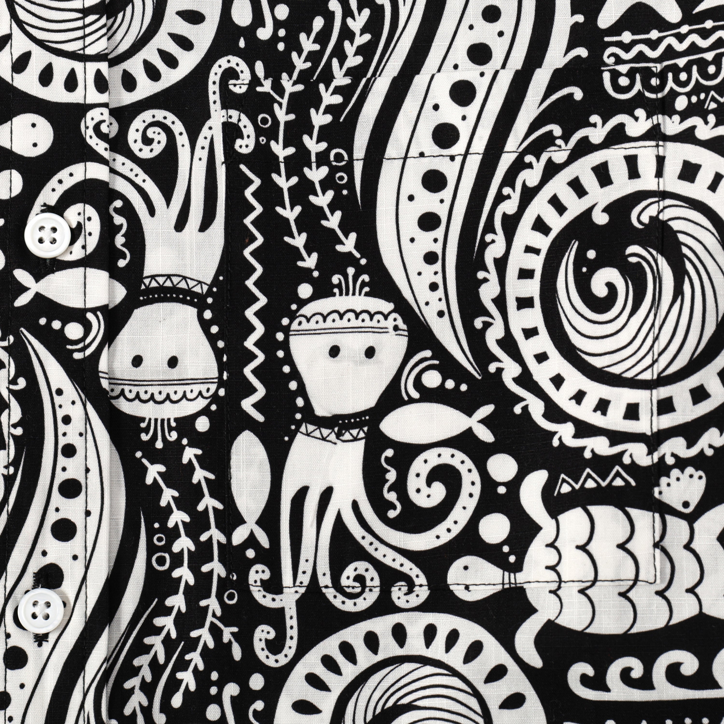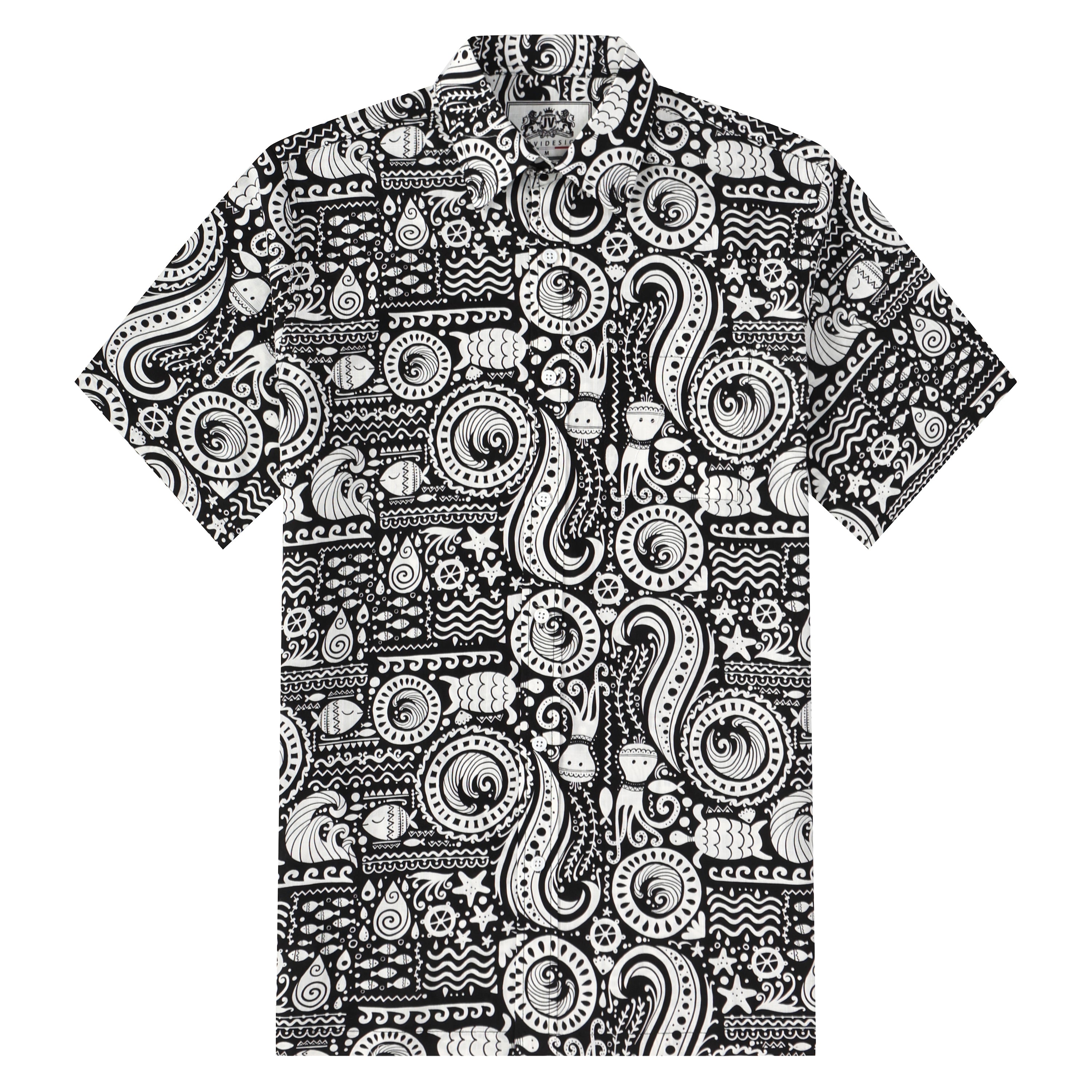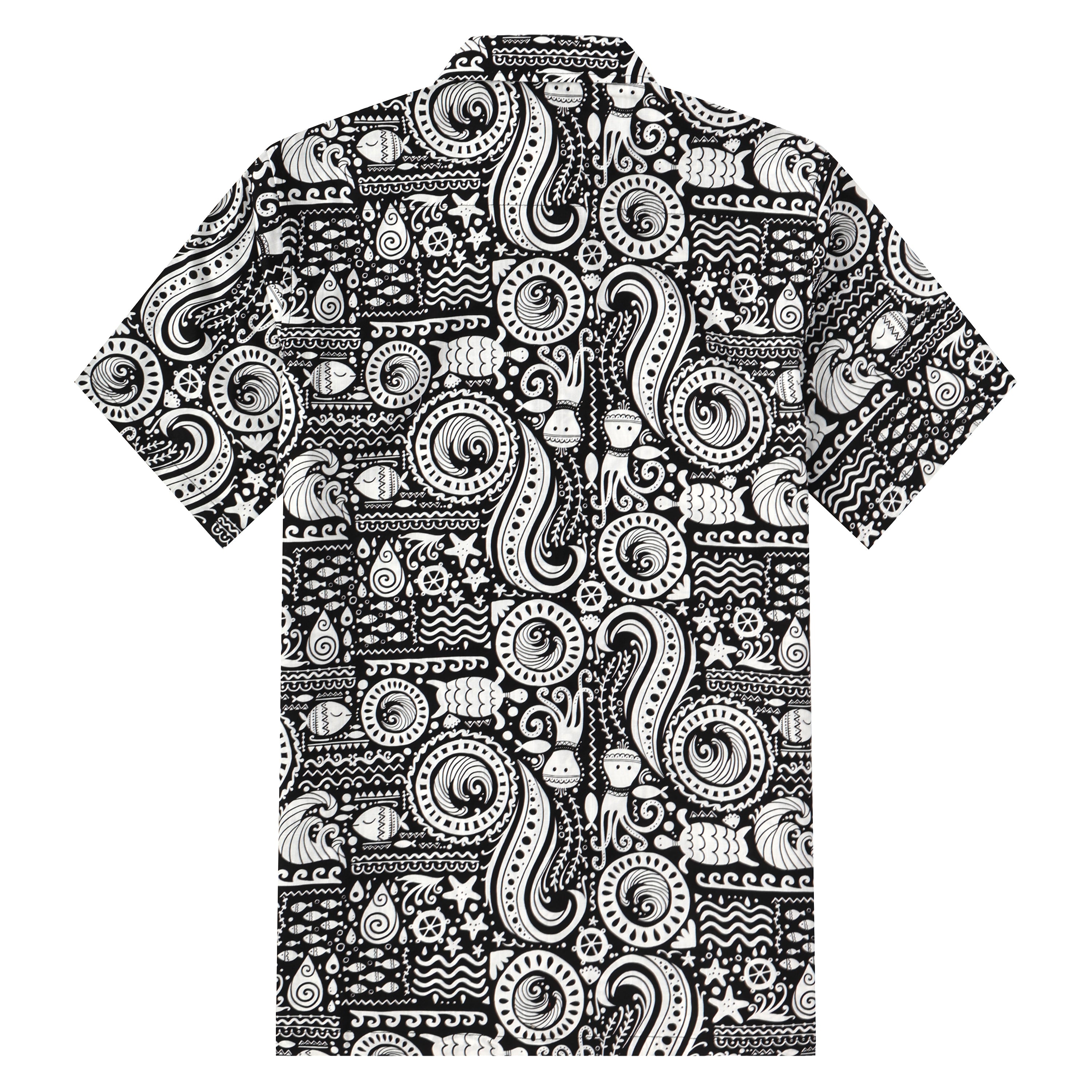 Fish Octopus Pattern Button Short Sleeve Shirt