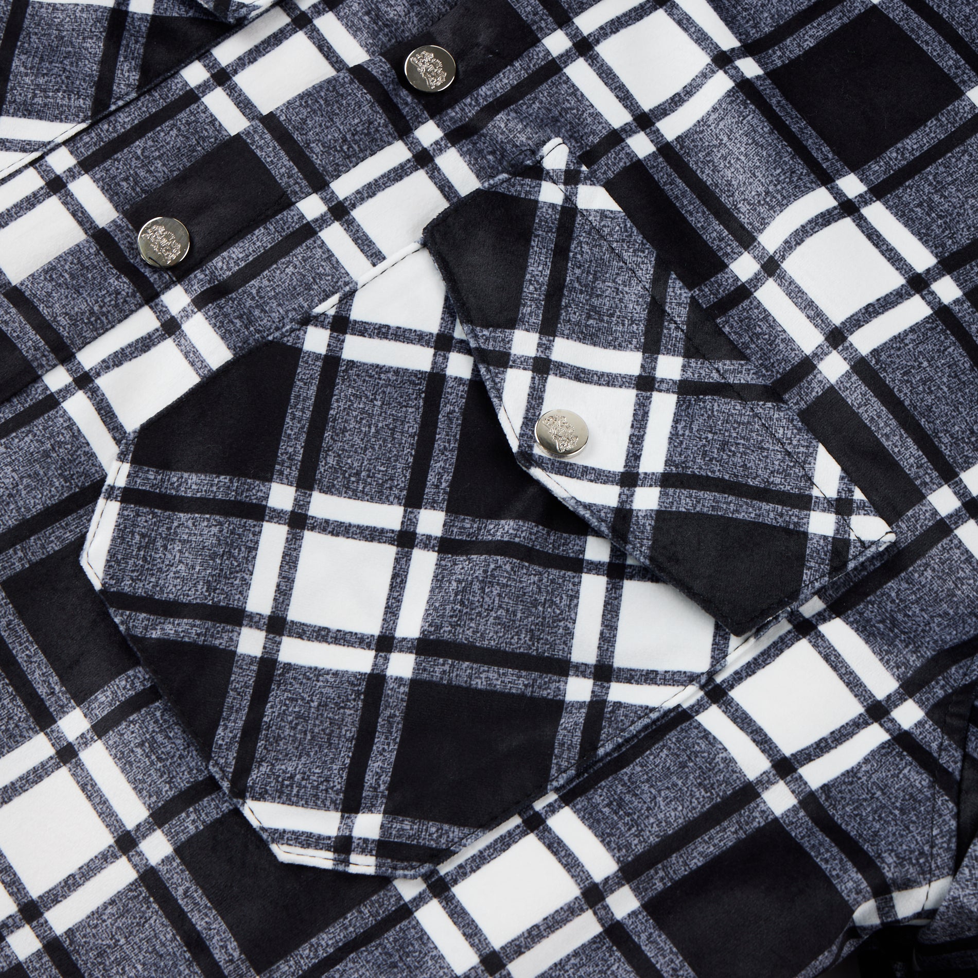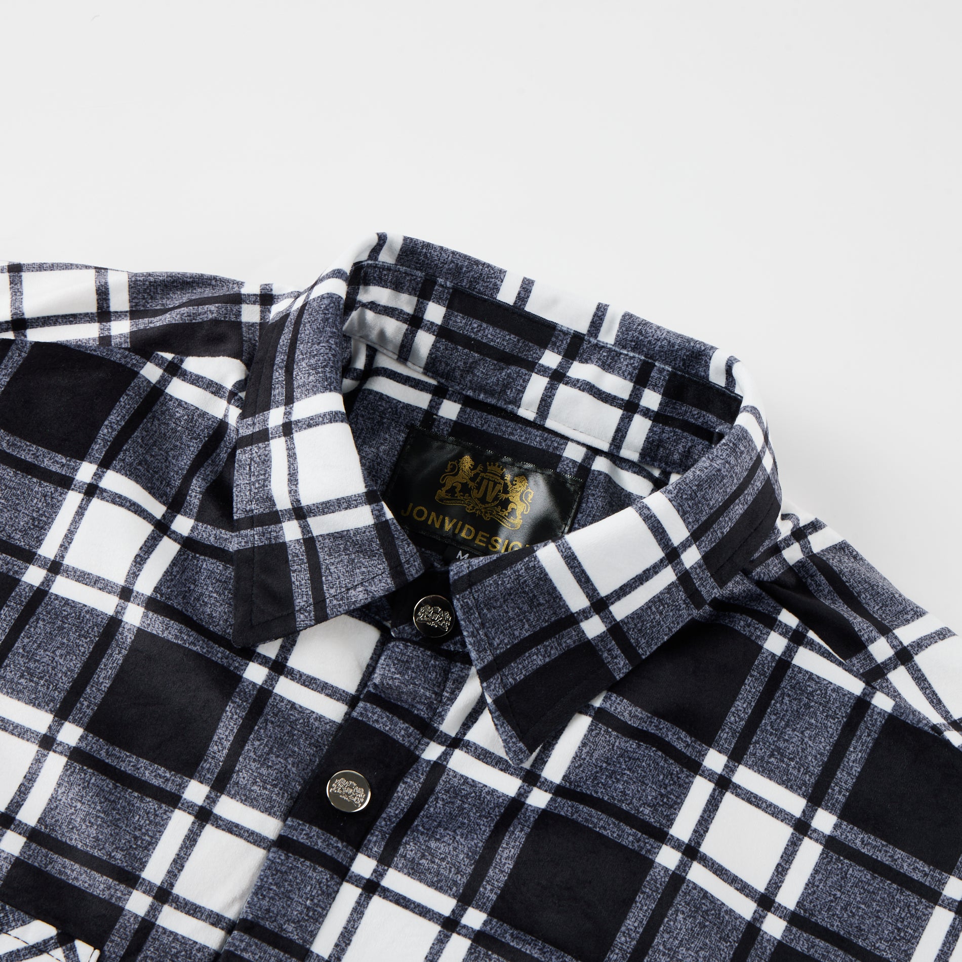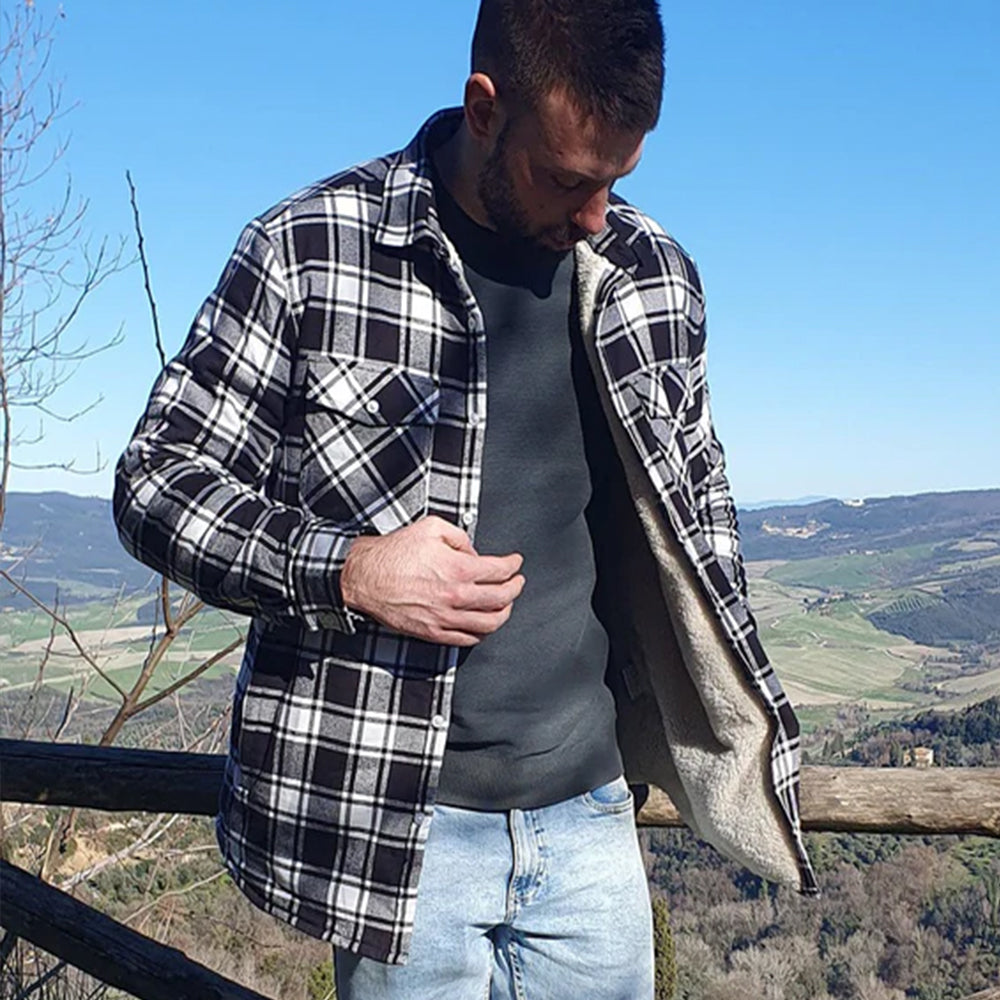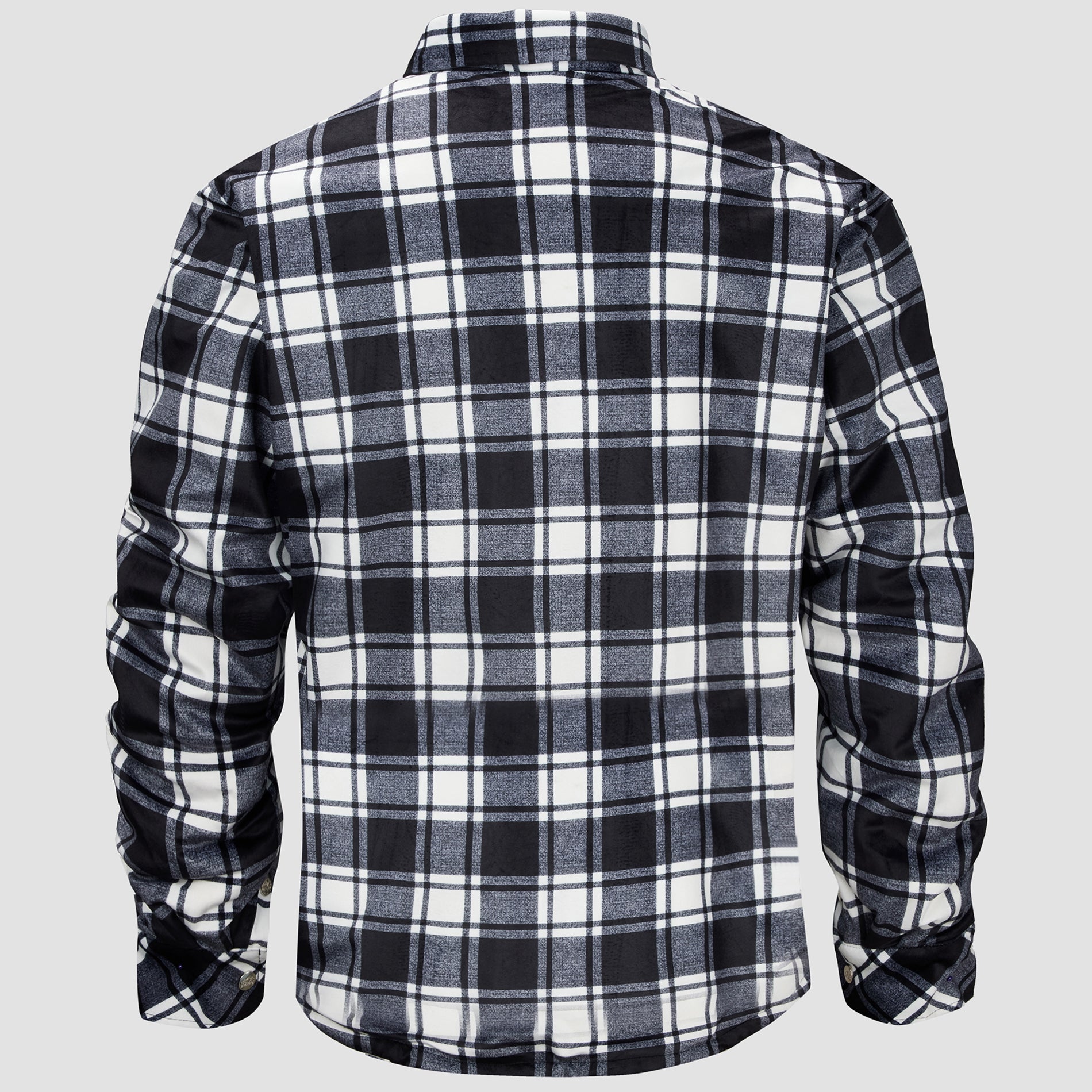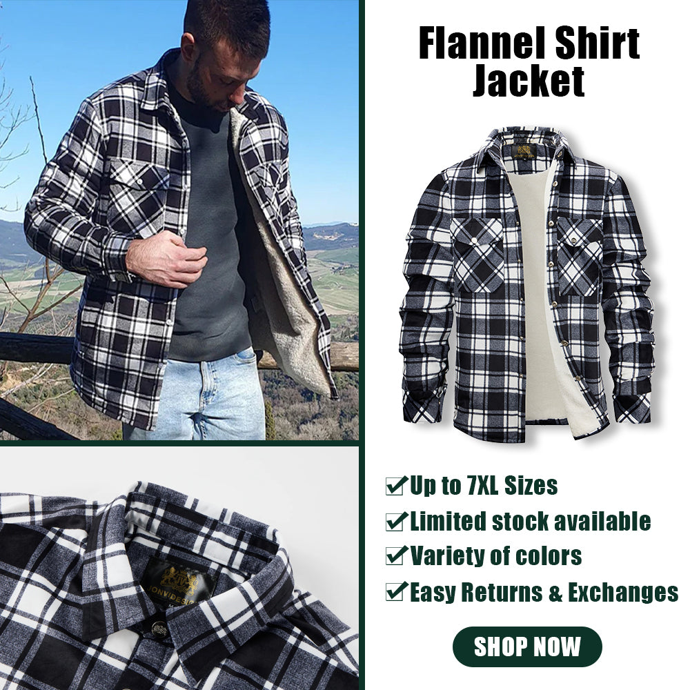 Flannel Plaid Button Shirt Lumber Jacket - Black