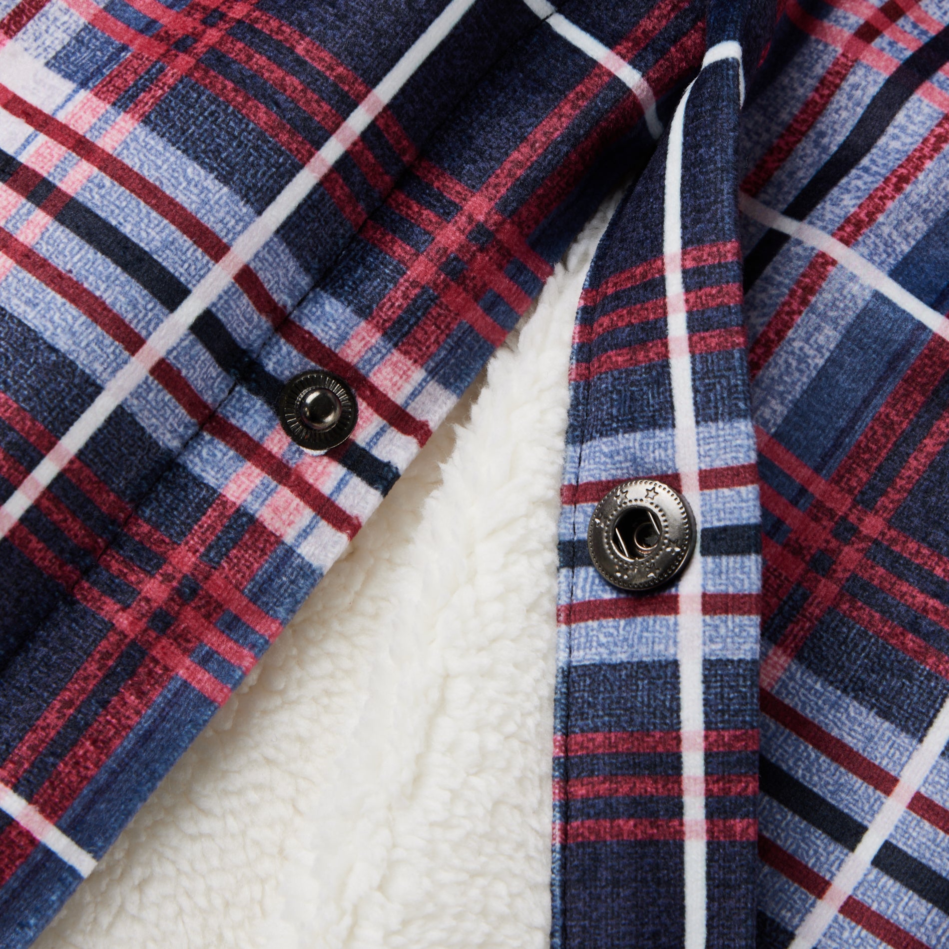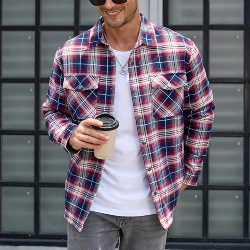 Flannel Plaid Button Shirt Lumber Jacket - White Red