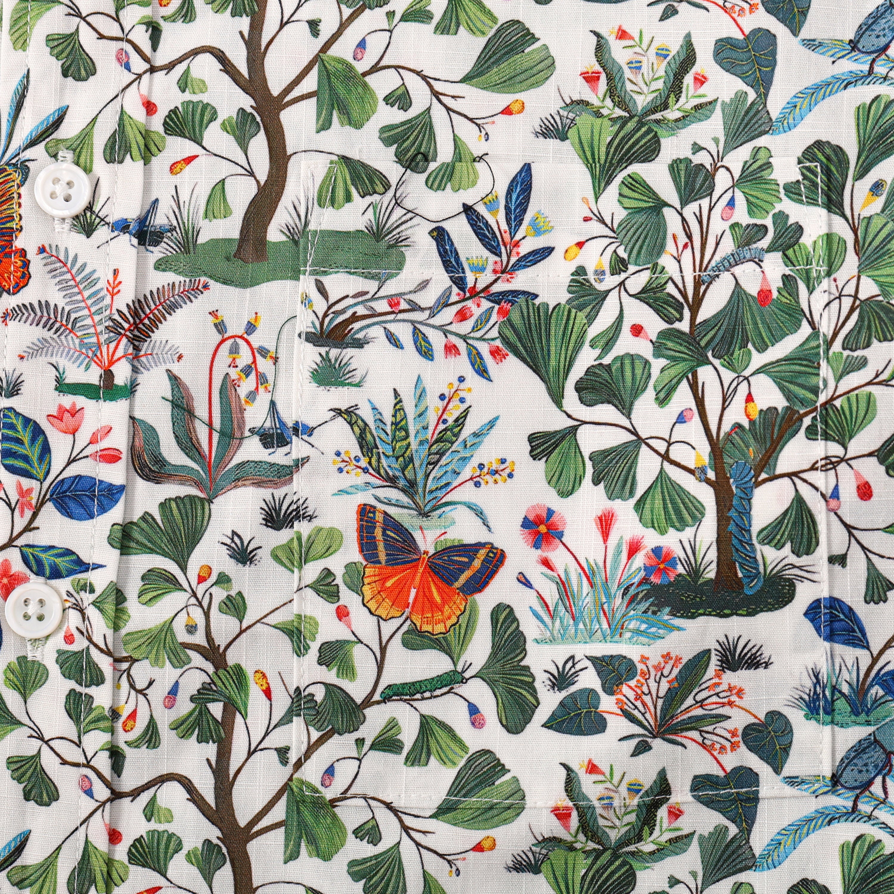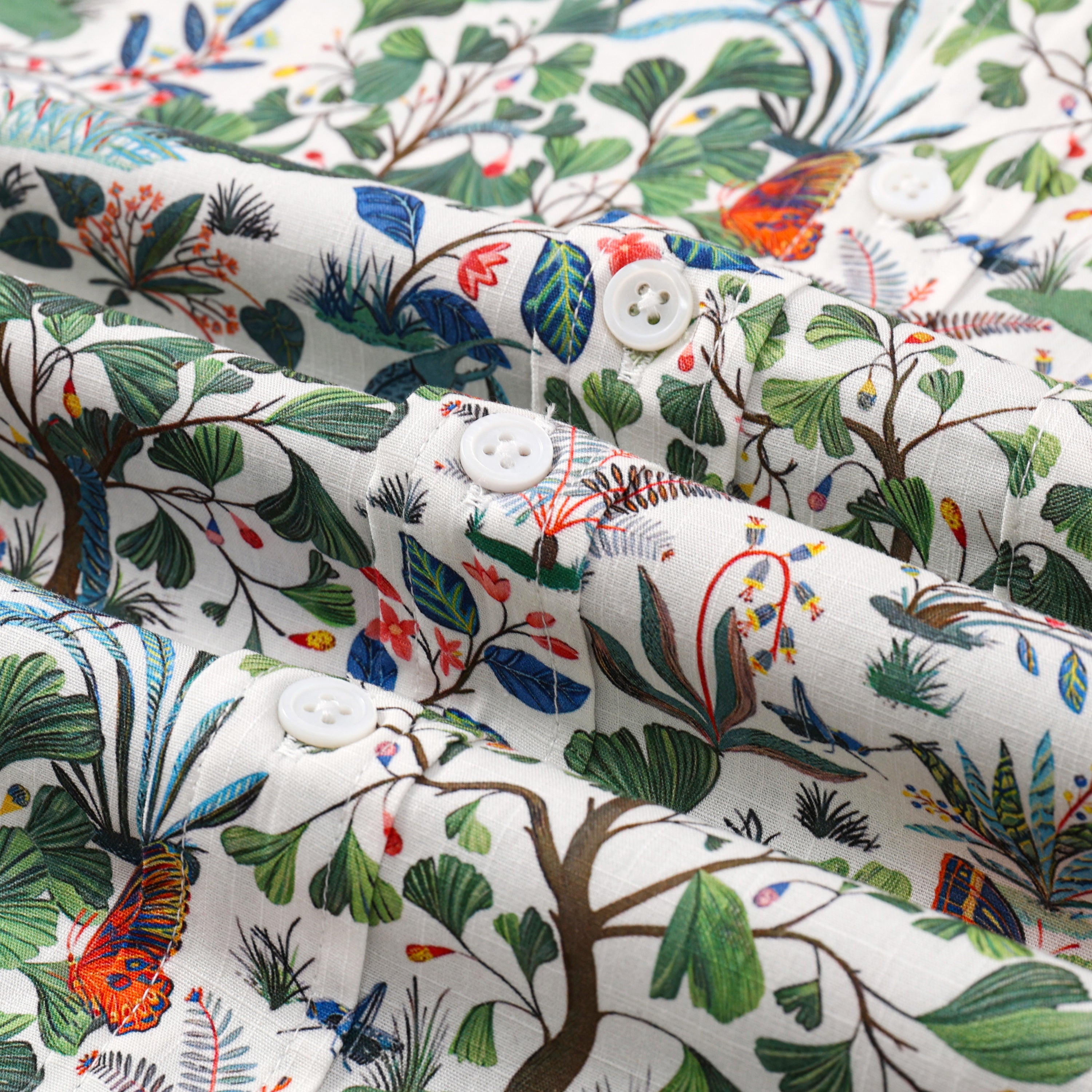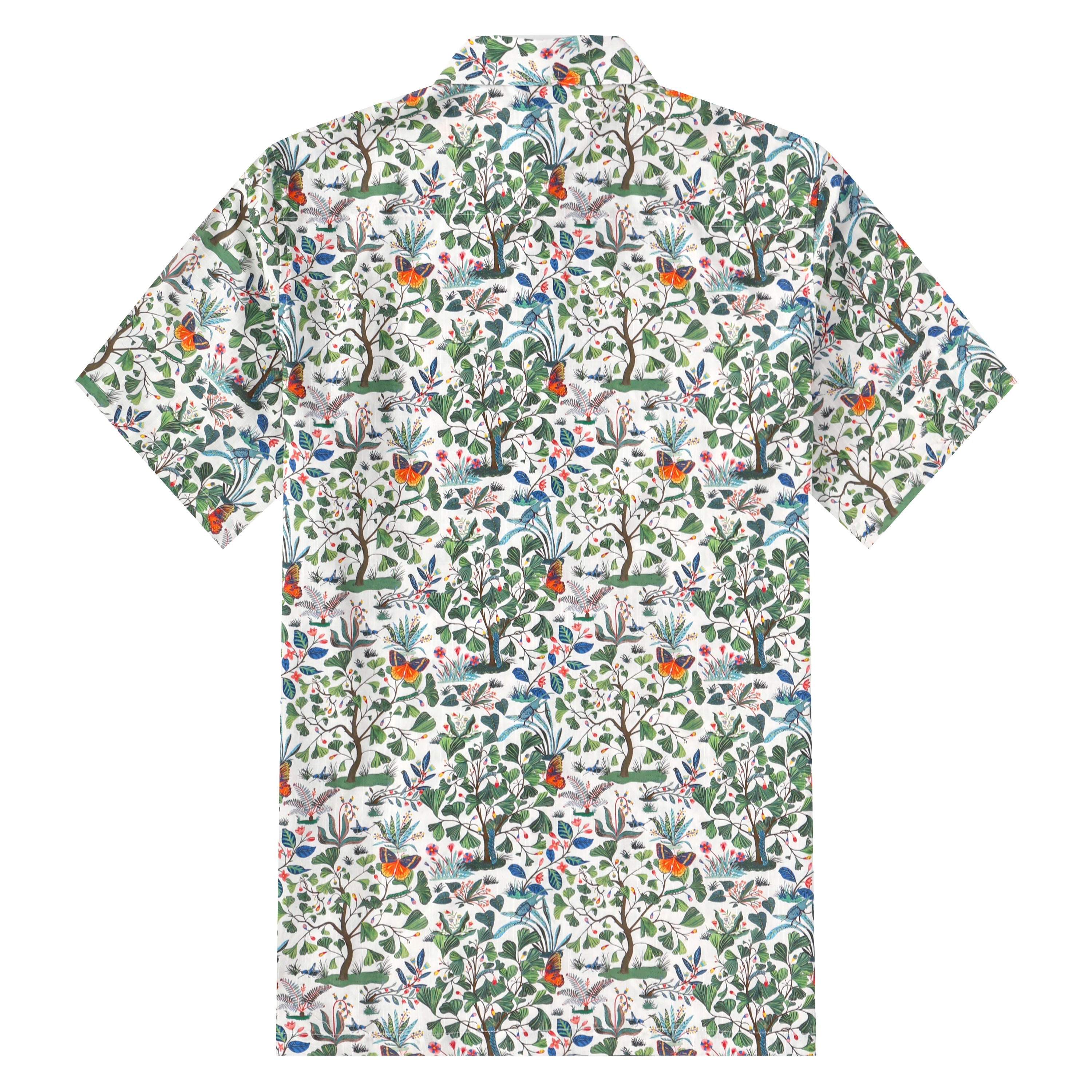 Floral Butterfly Pattern Button Short Sleeve Shirt