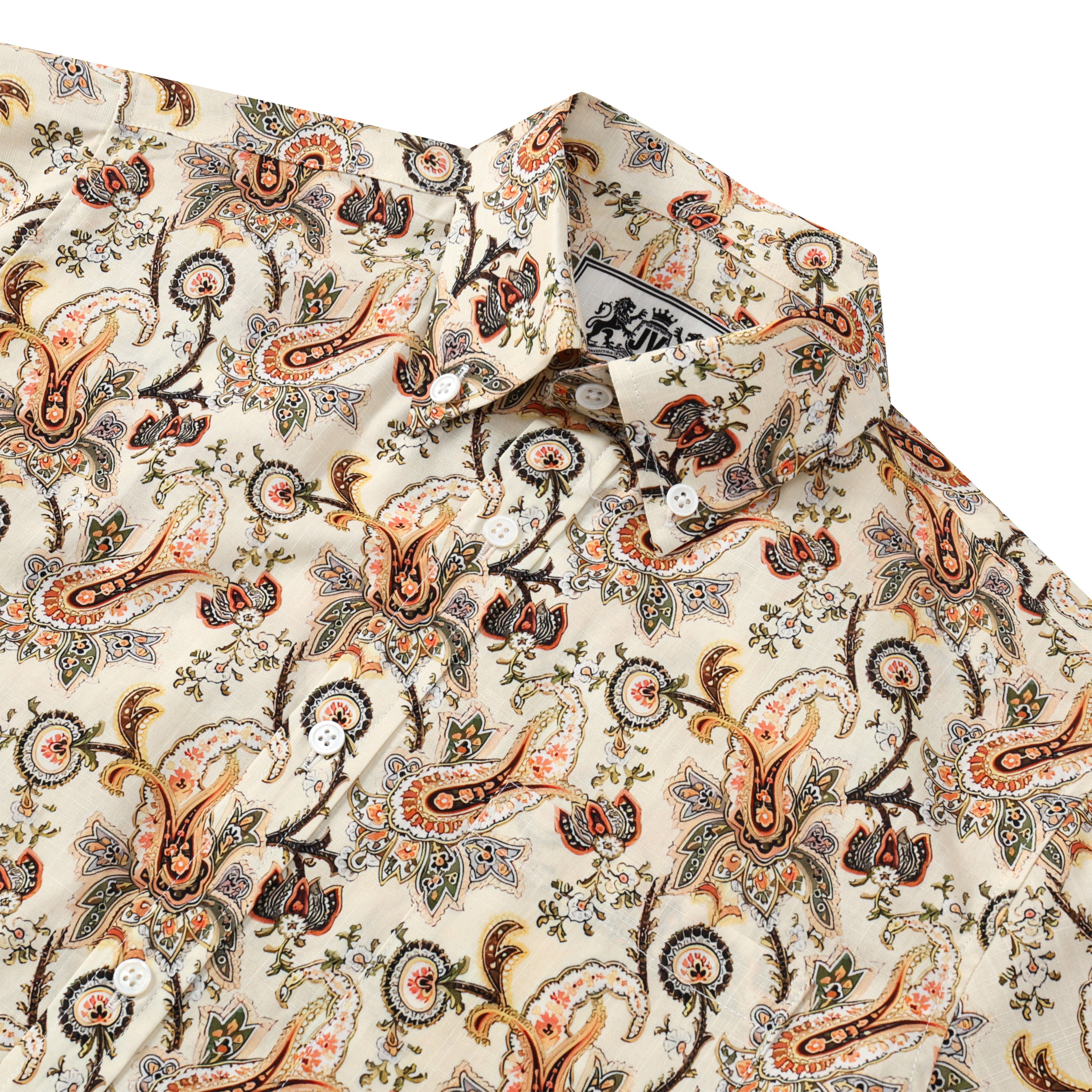 Floral Paisley Pattern Button Short Sleeve Shirt