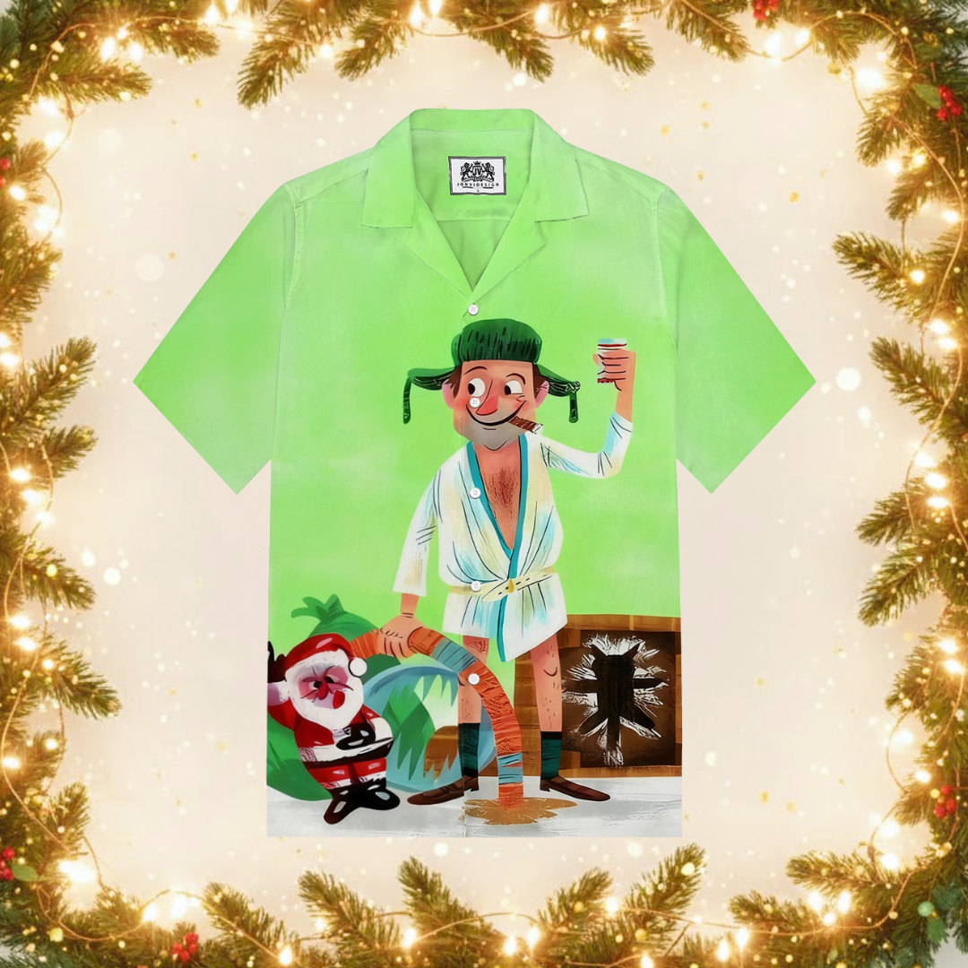 Funny Christmas Character Print Retro Camp Collar Short Sleeve Shirt
