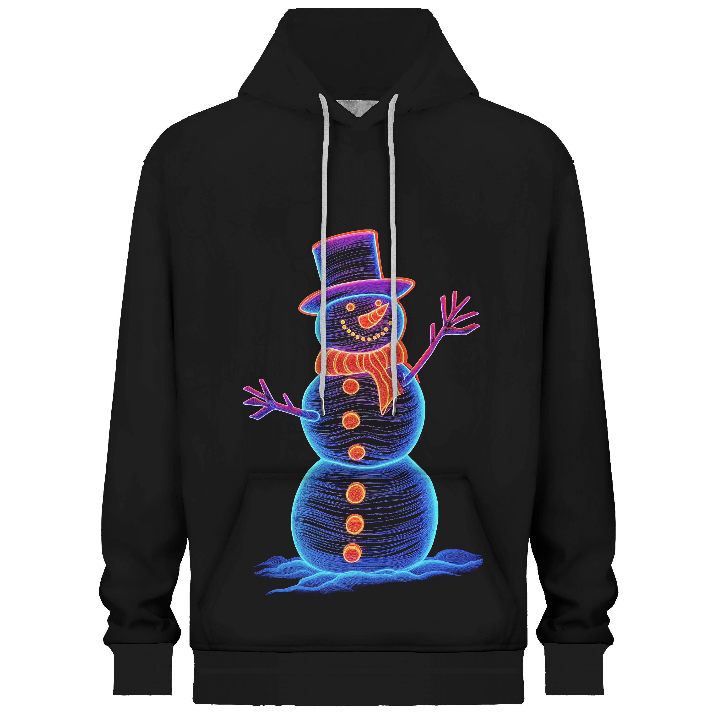 Glowing Snowman Print Hooded Sweatshirt Men's black sweatshirt