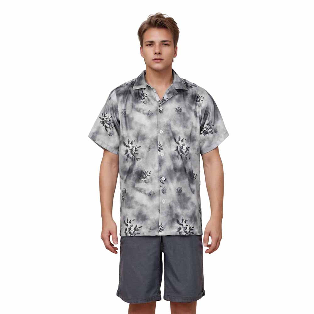 Gray Leaf Print Elastic Waistband Summer Casual Shorts