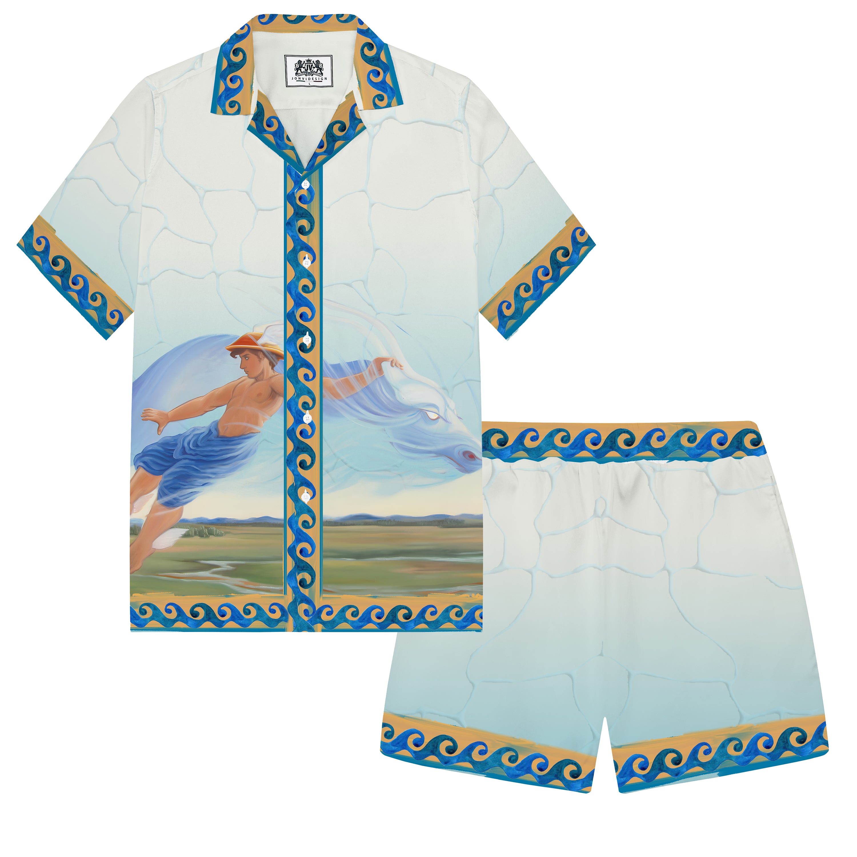 Greek Mythology Pattern Elastic Waistband Summer Casual Shorts