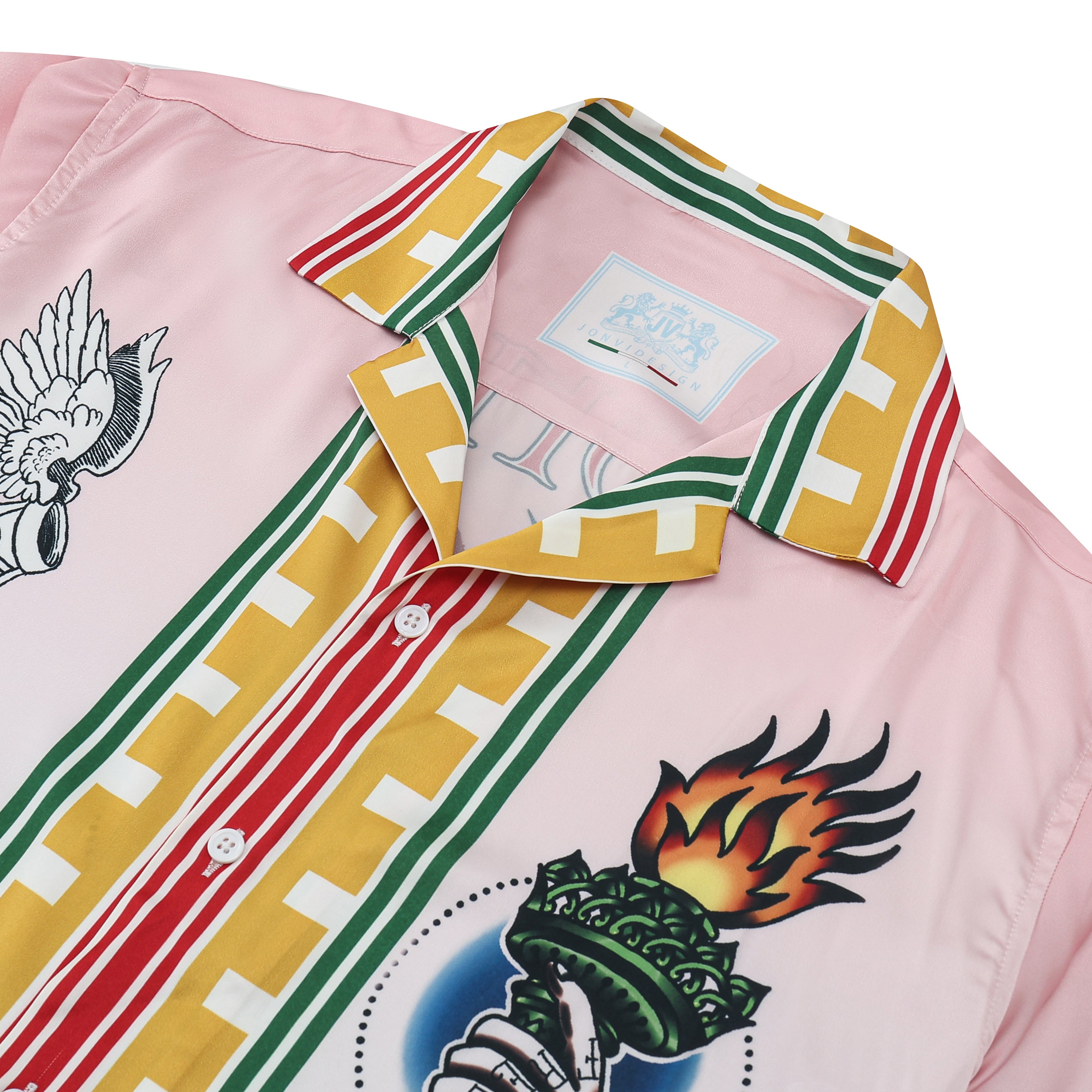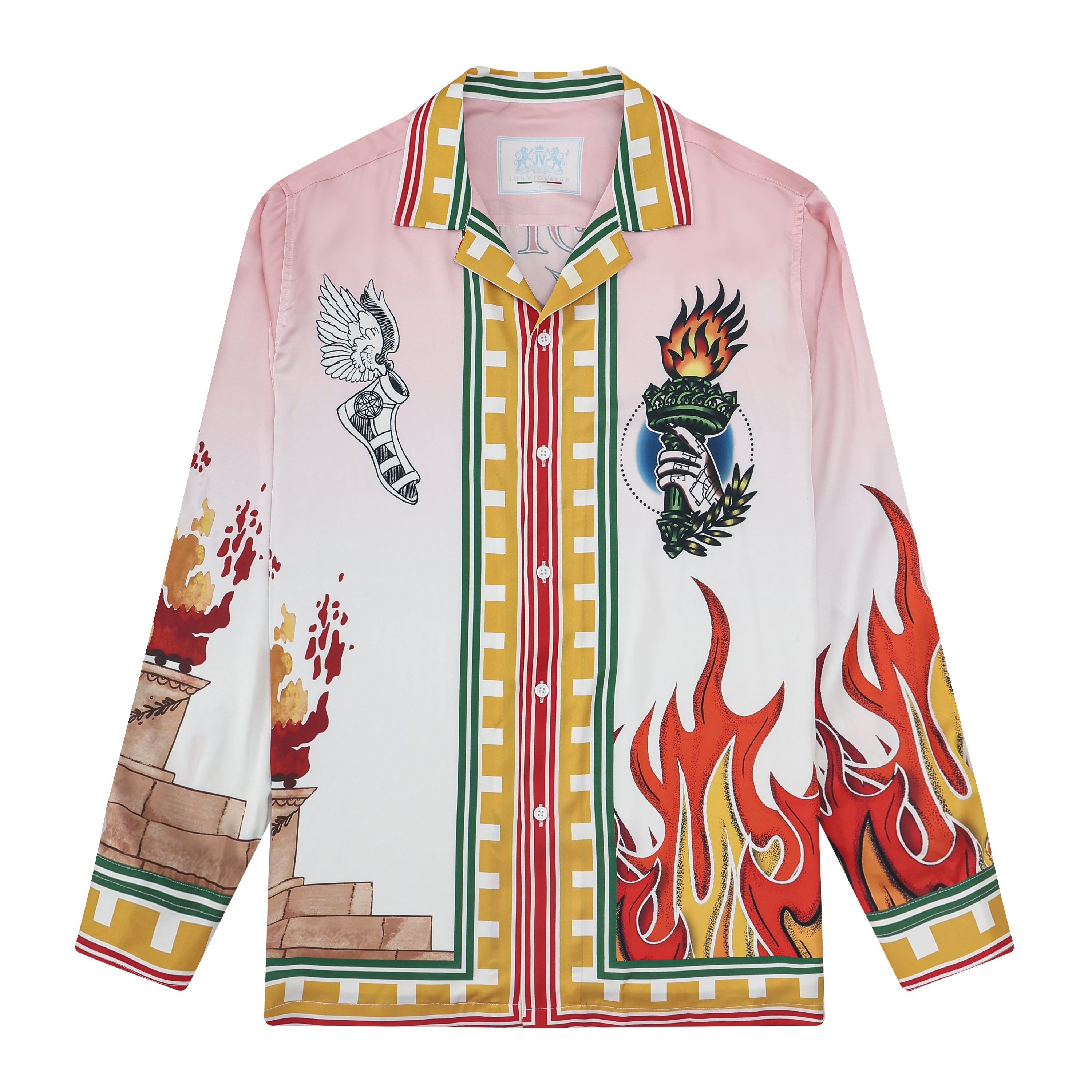 Greek Sacred Fire Long Sleeve Camp Collar Shirt