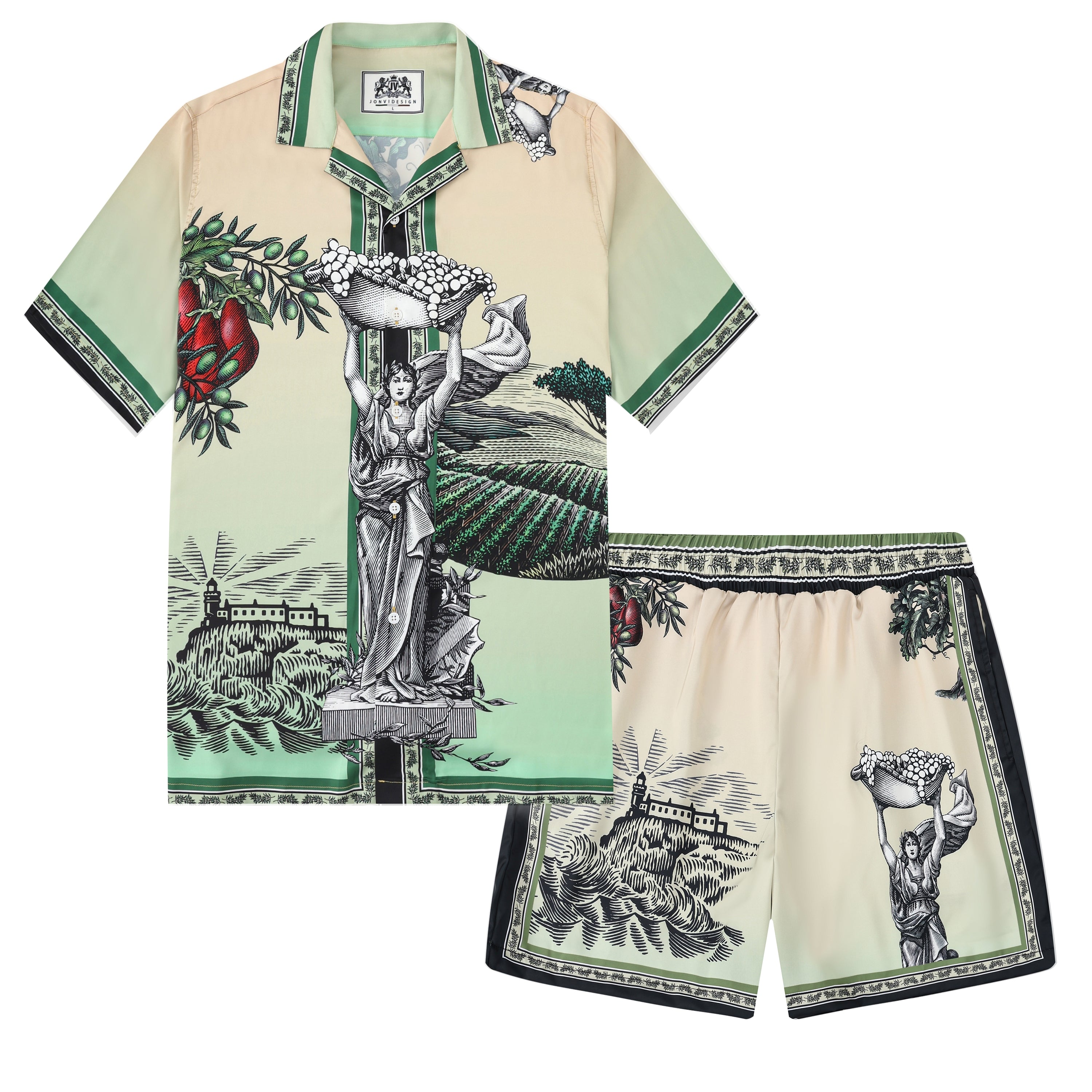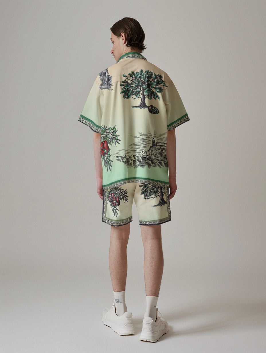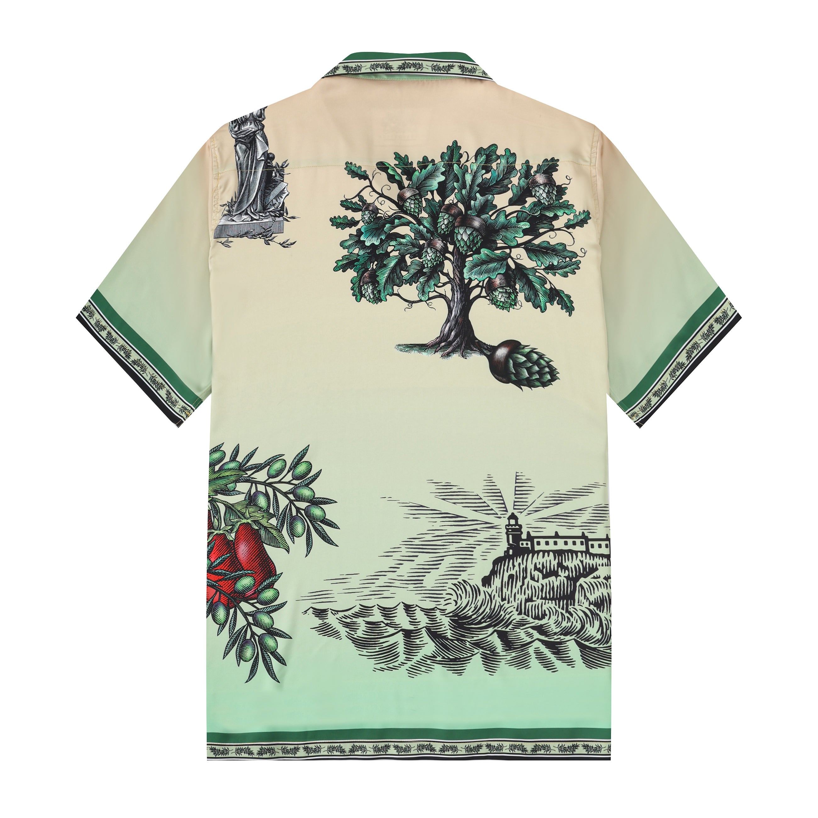 Greek Statue Olive Branch Short Sleeve Camp Collar Shirt