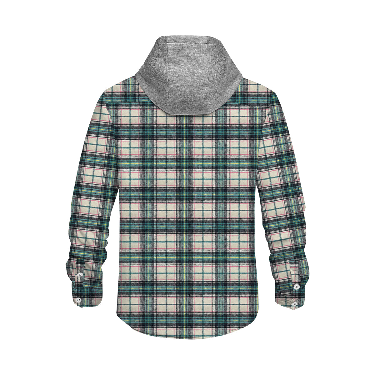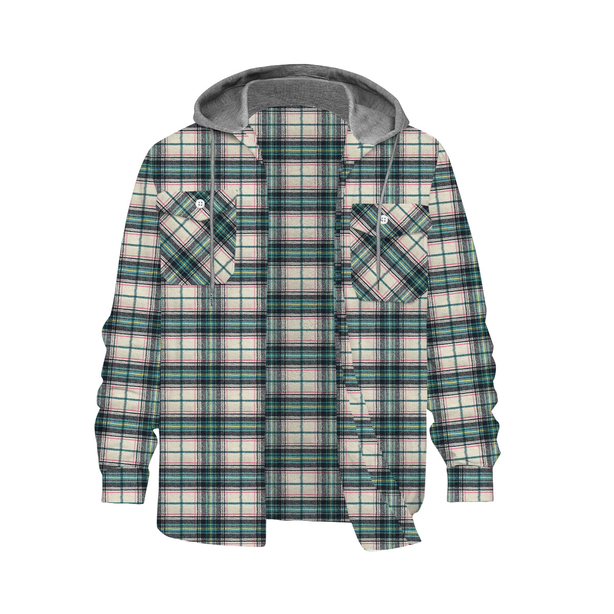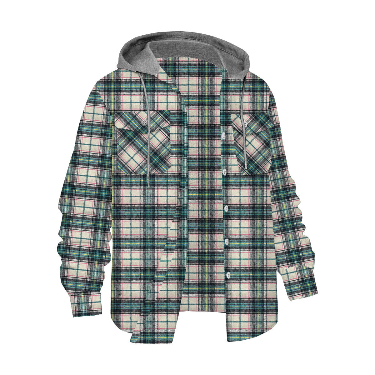 Green Retro Plaid Long Sleeve Hooded Shirt