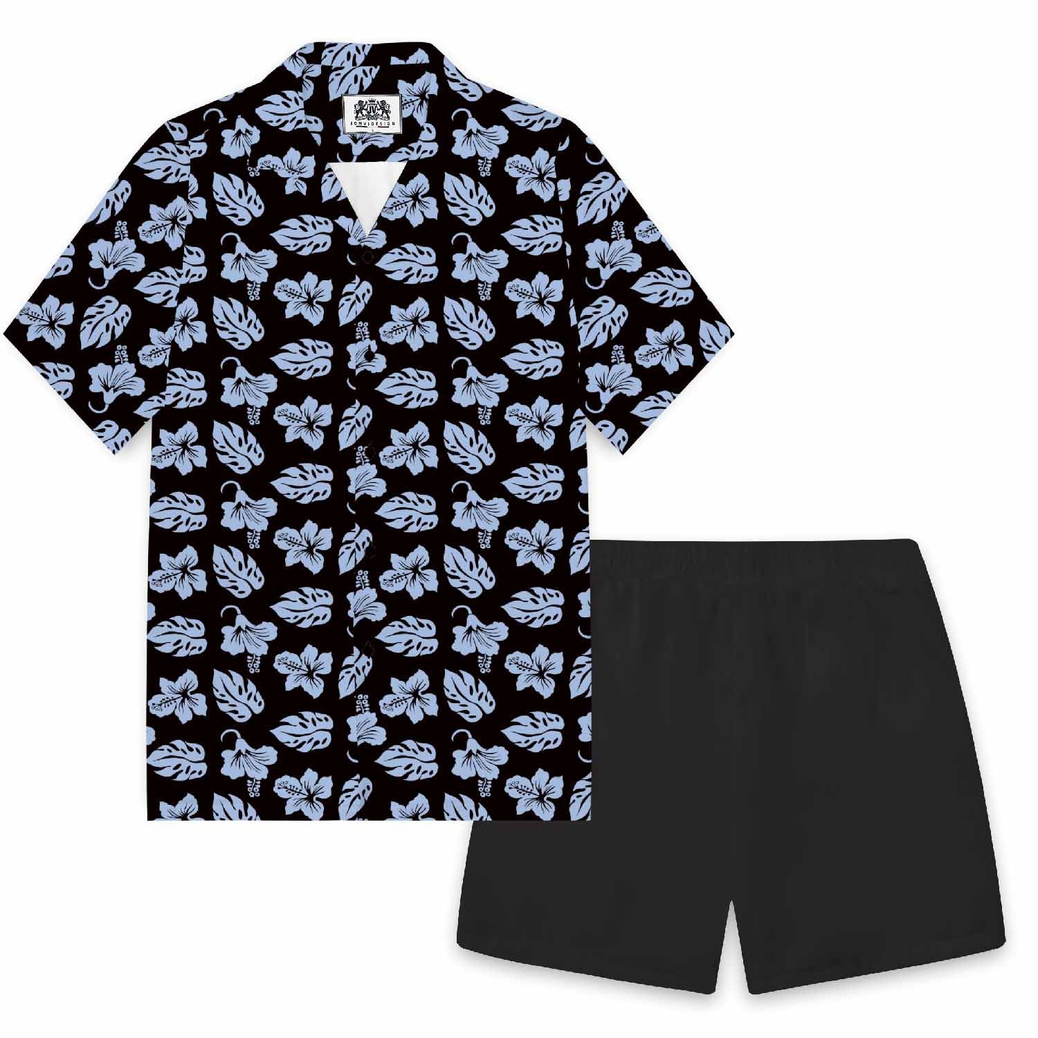 Hawaiian Blue Floral Camp Collar Short Sleeve Shirt