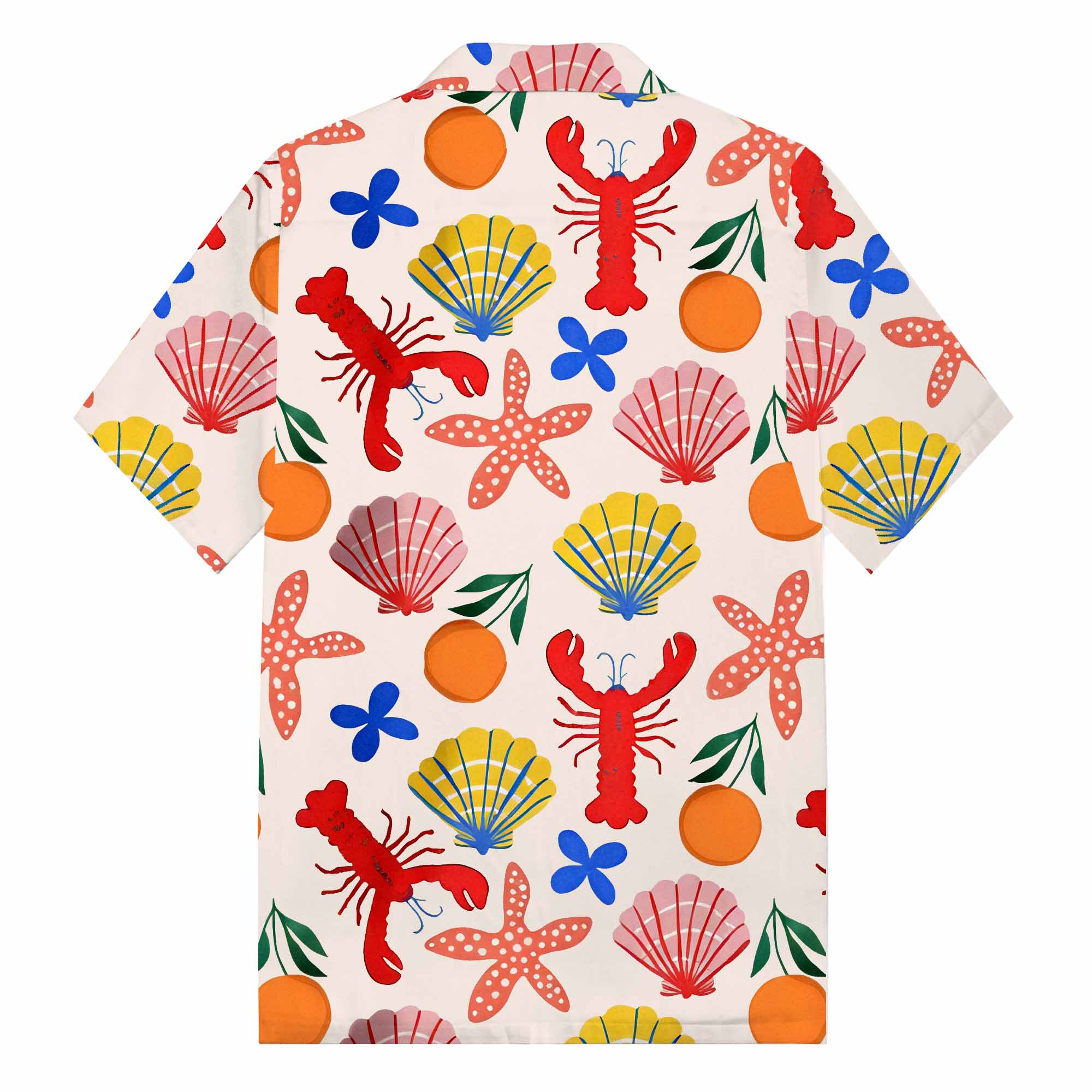 Hawaiian Ocean Seafood Patterns Camp Collar Short-Sleeved Shirt