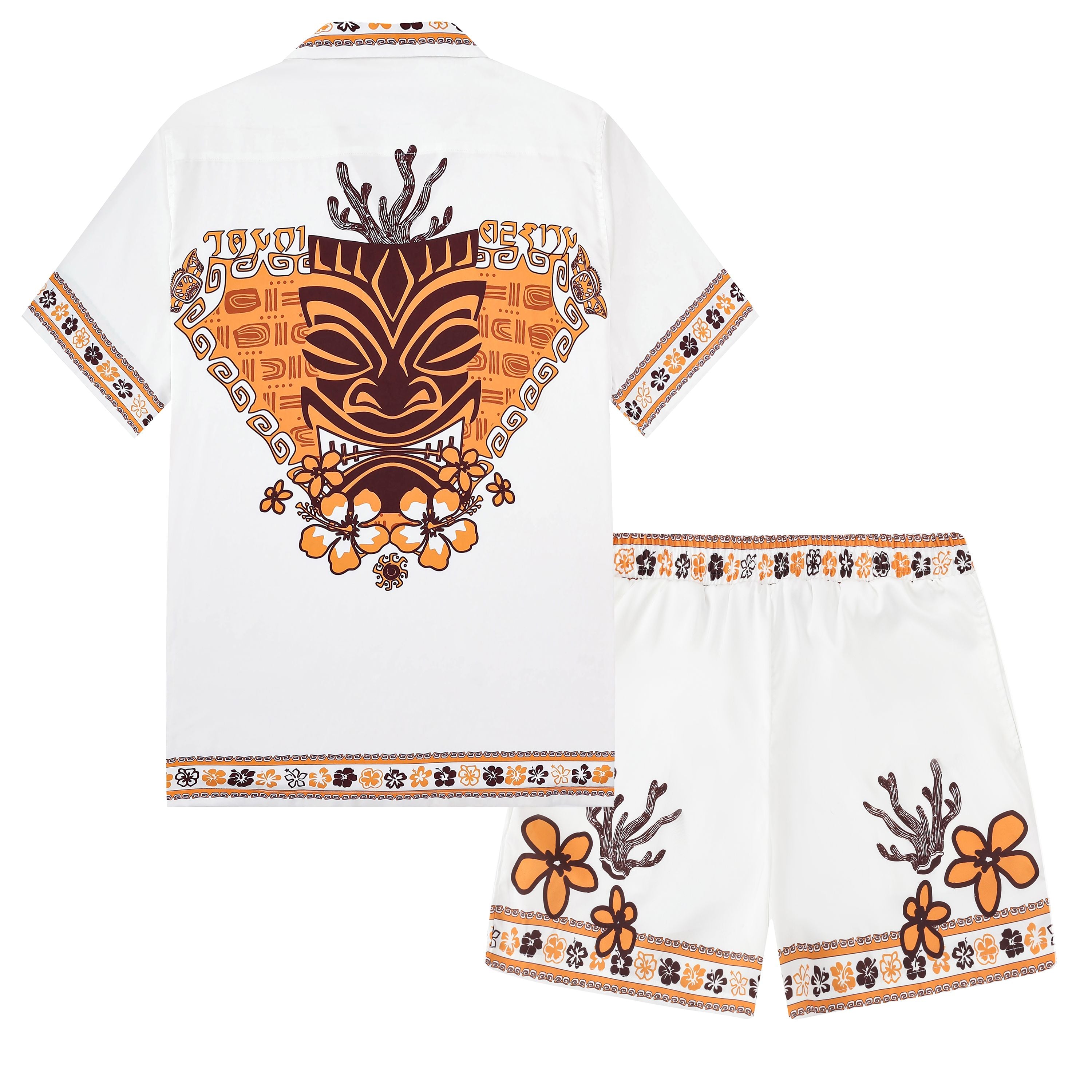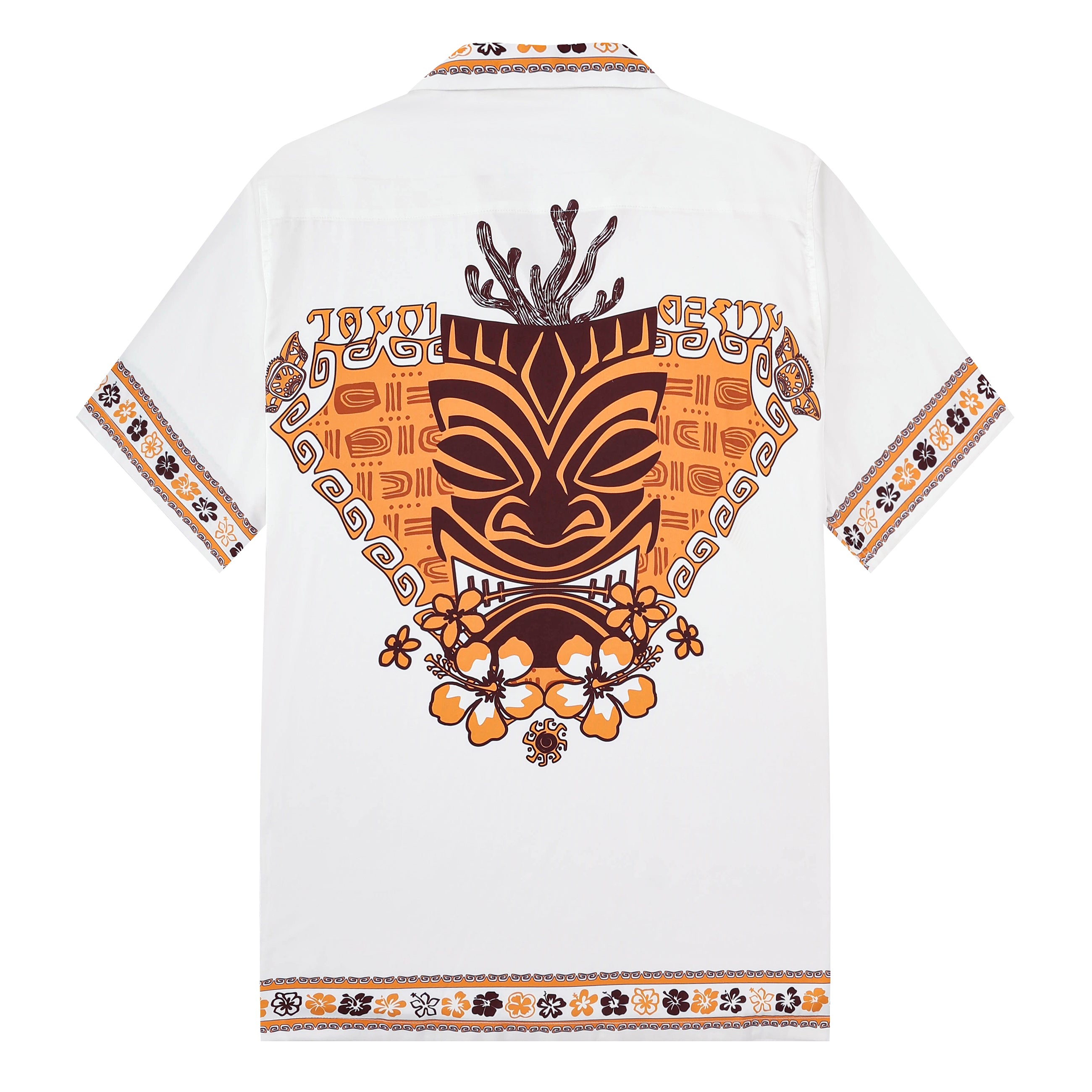 Hawaiian Tiki Themed Pattern Short Sleeve Camp Collar Shirt