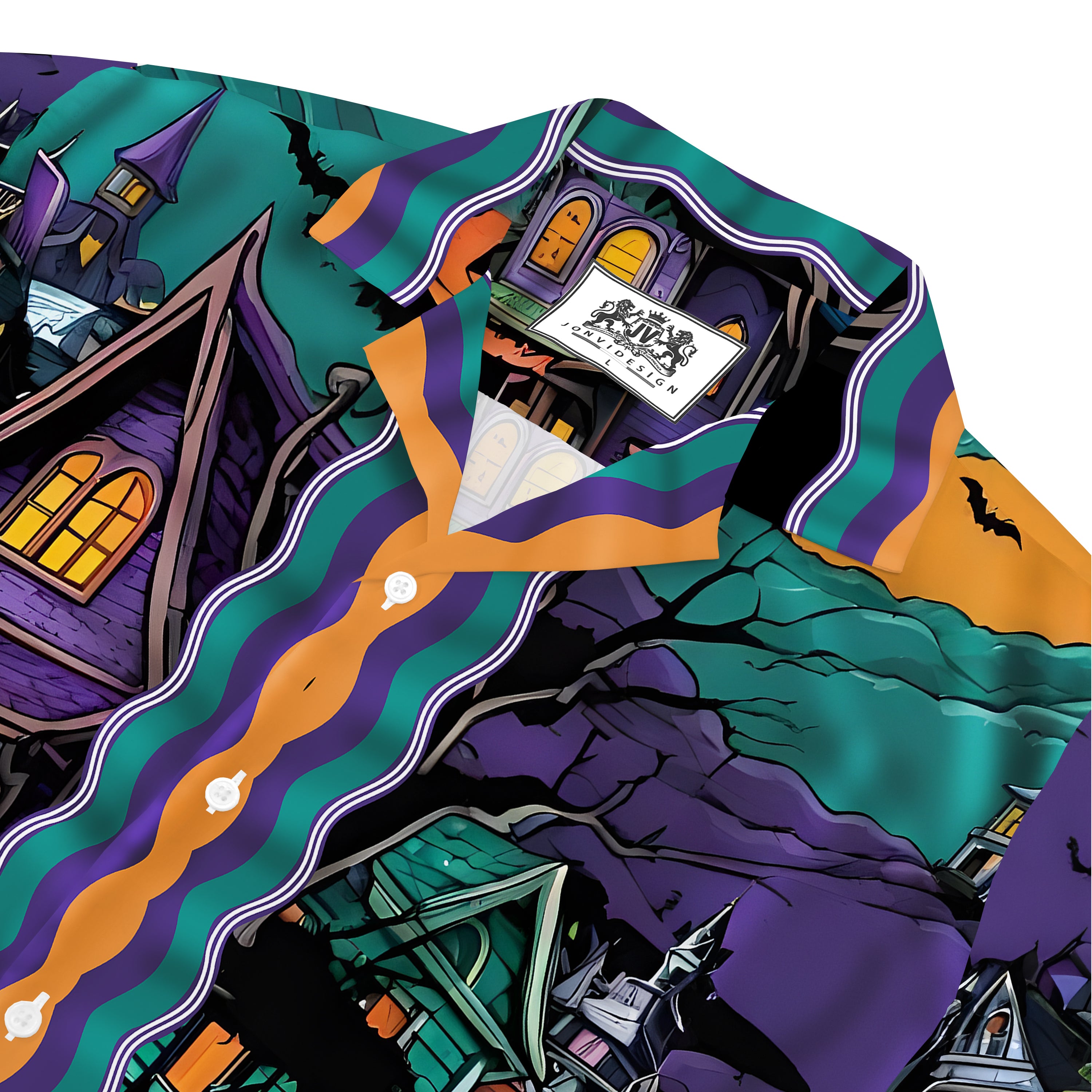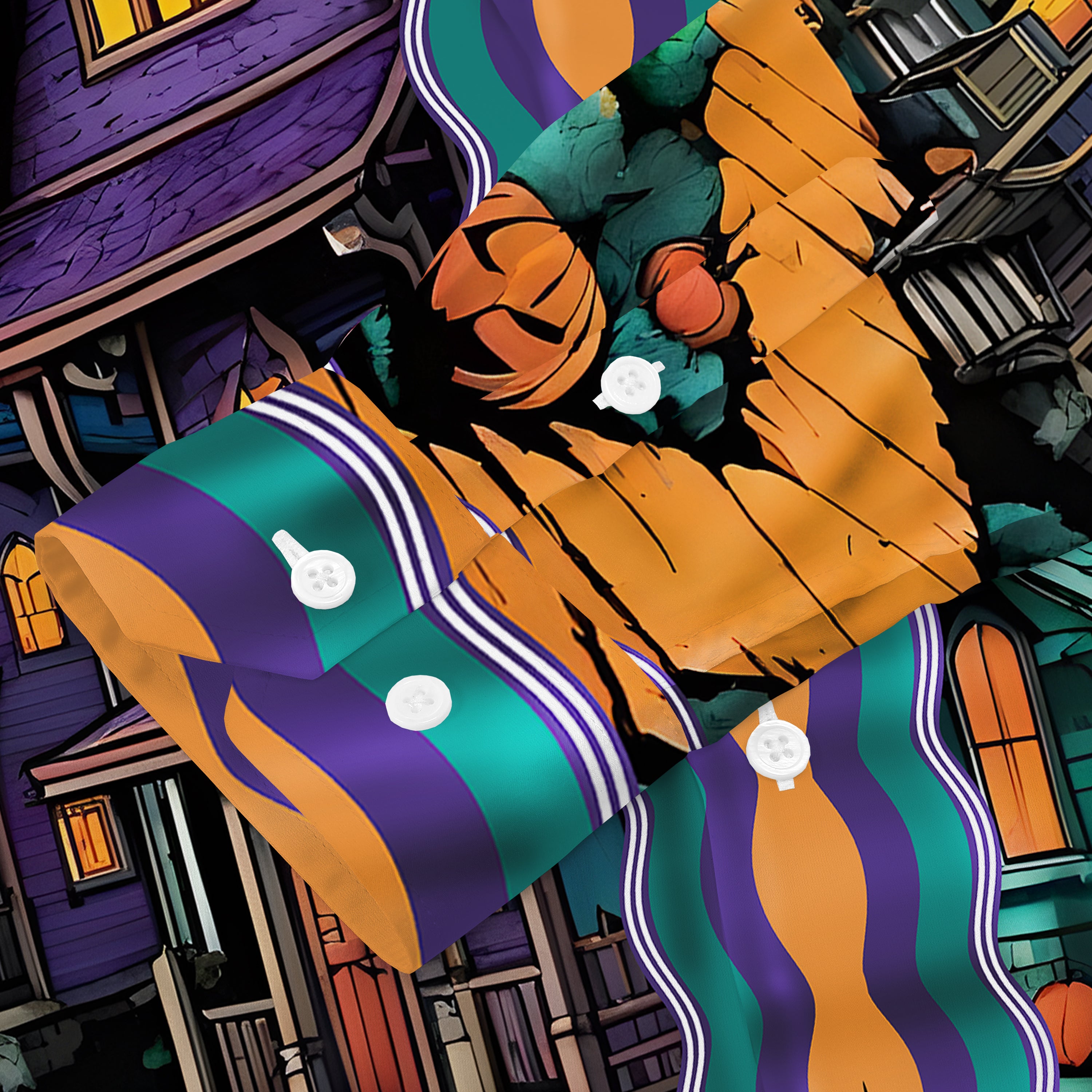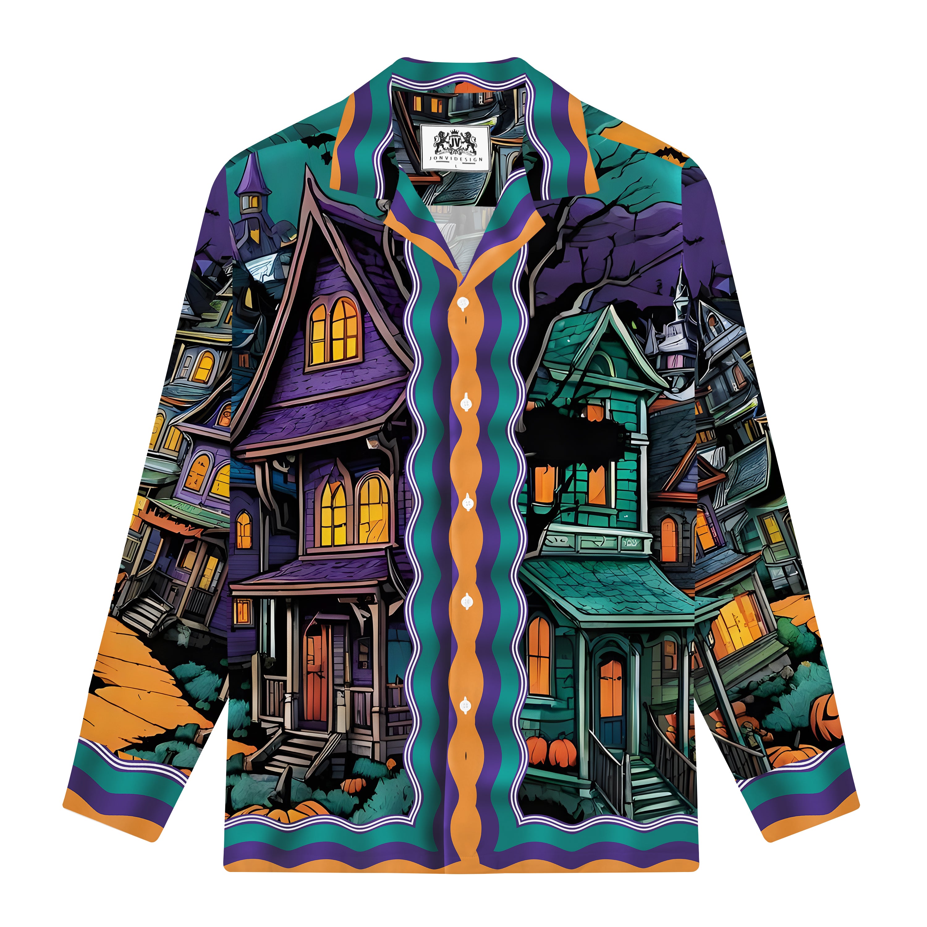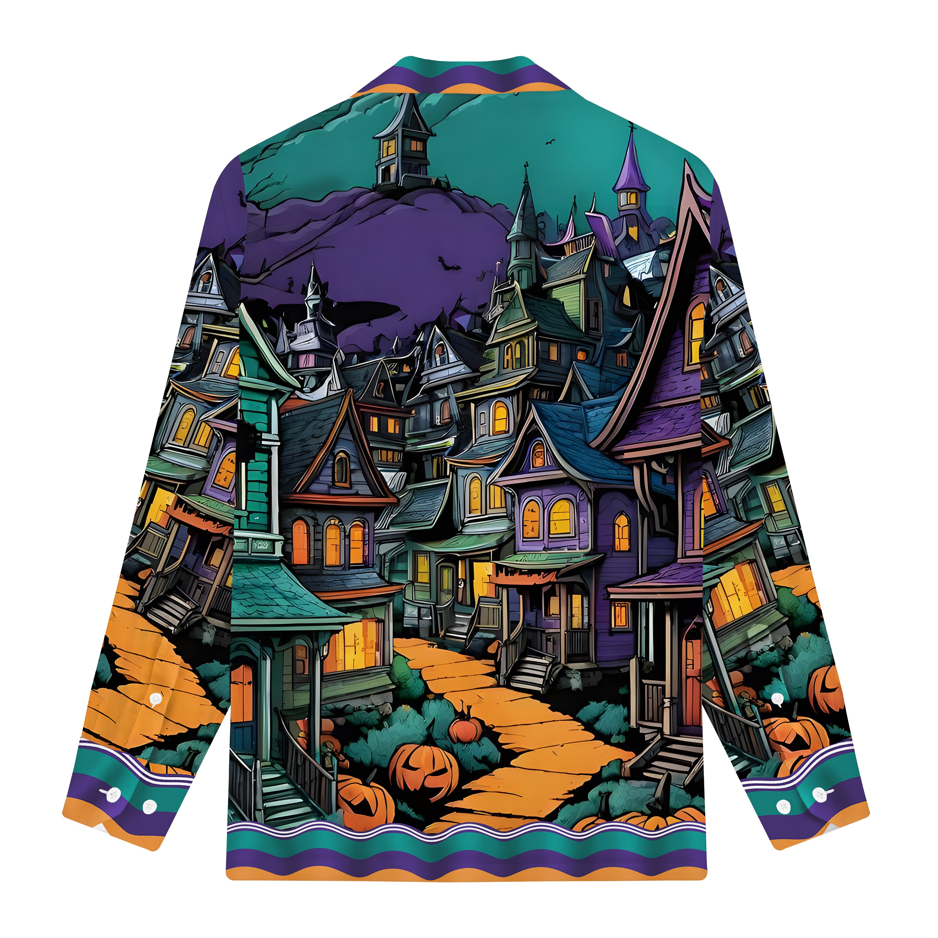 Quiet And Mysterious Halloween Town Long Sleeve Camp Collar Shirt